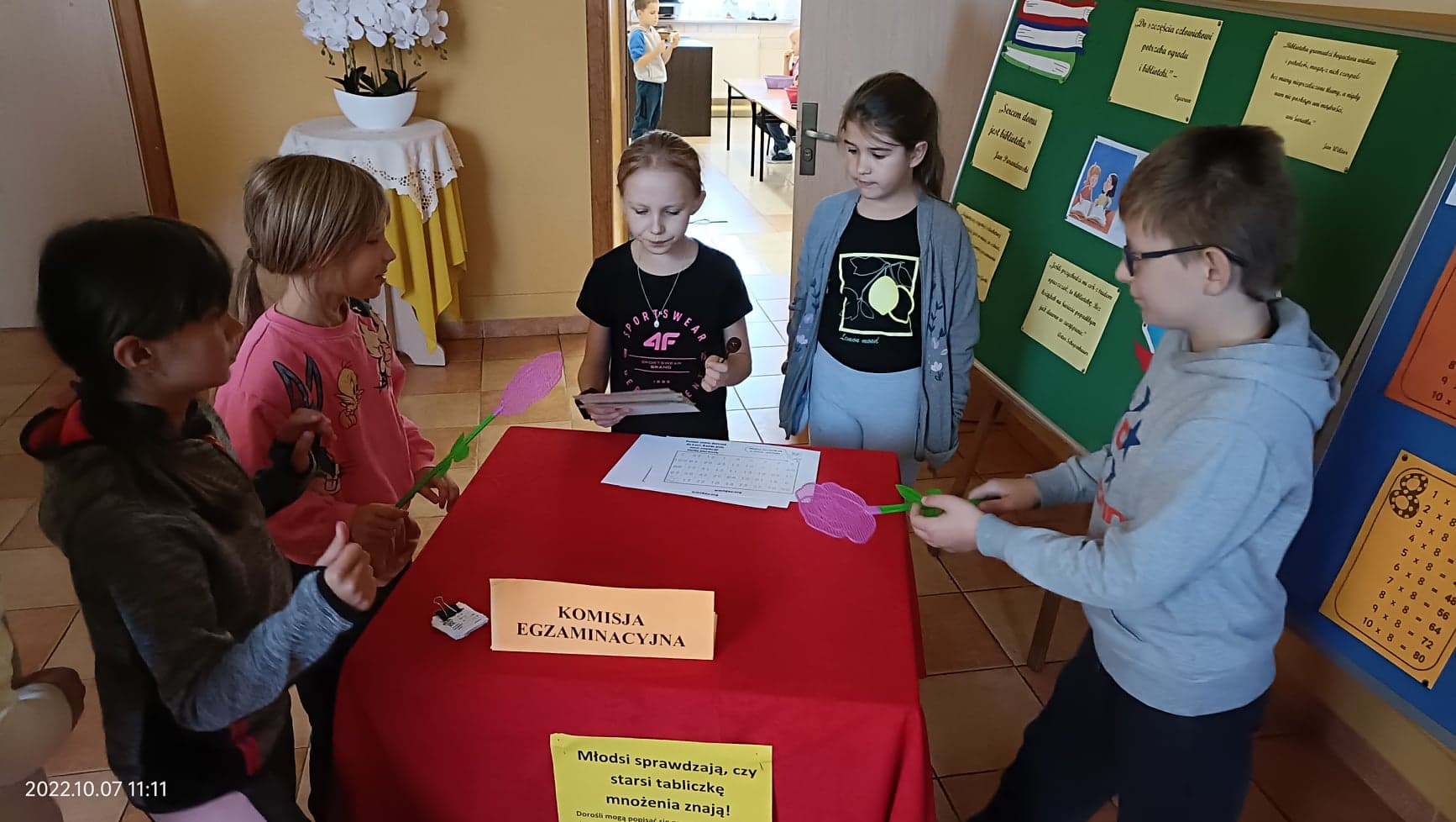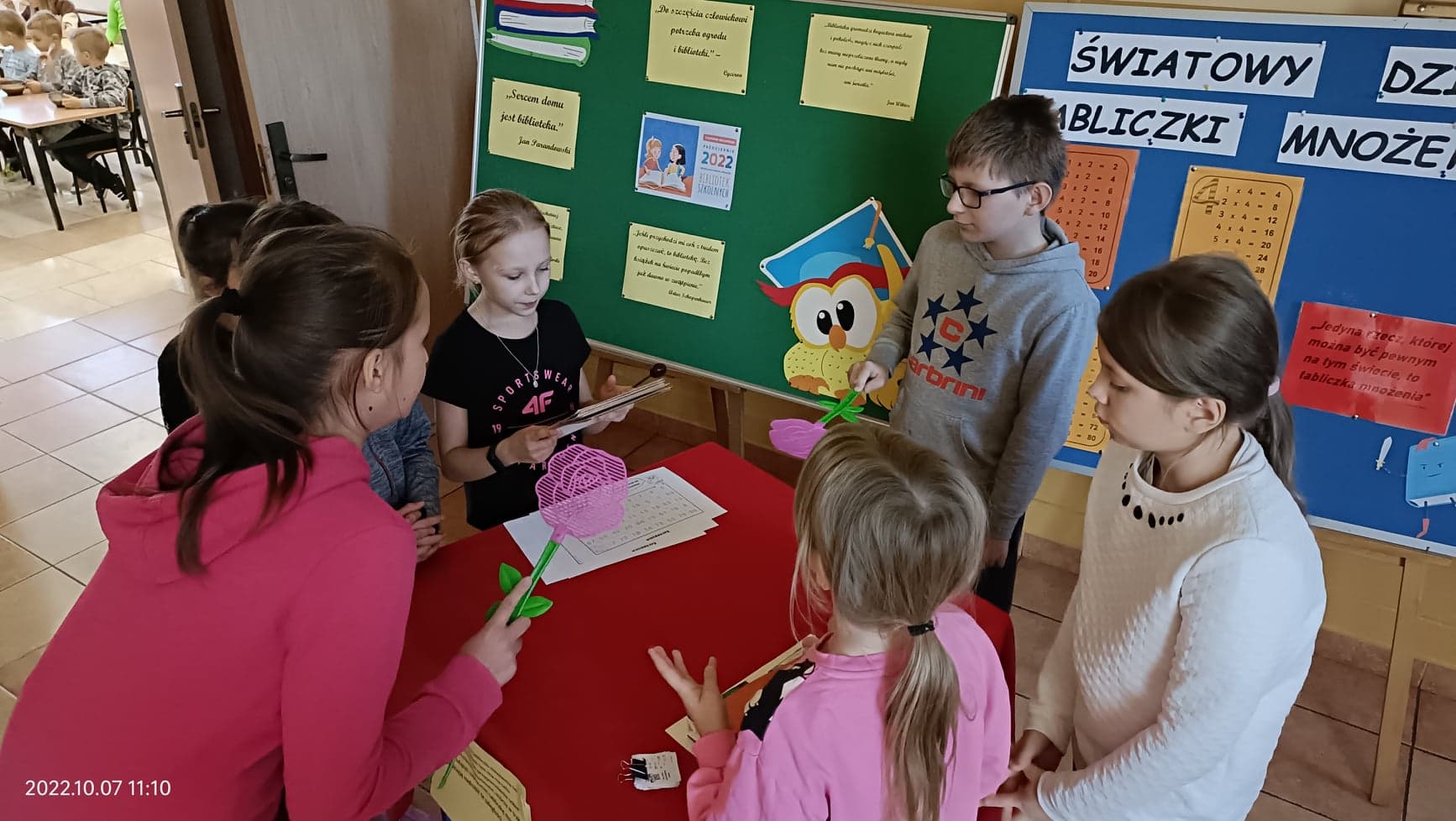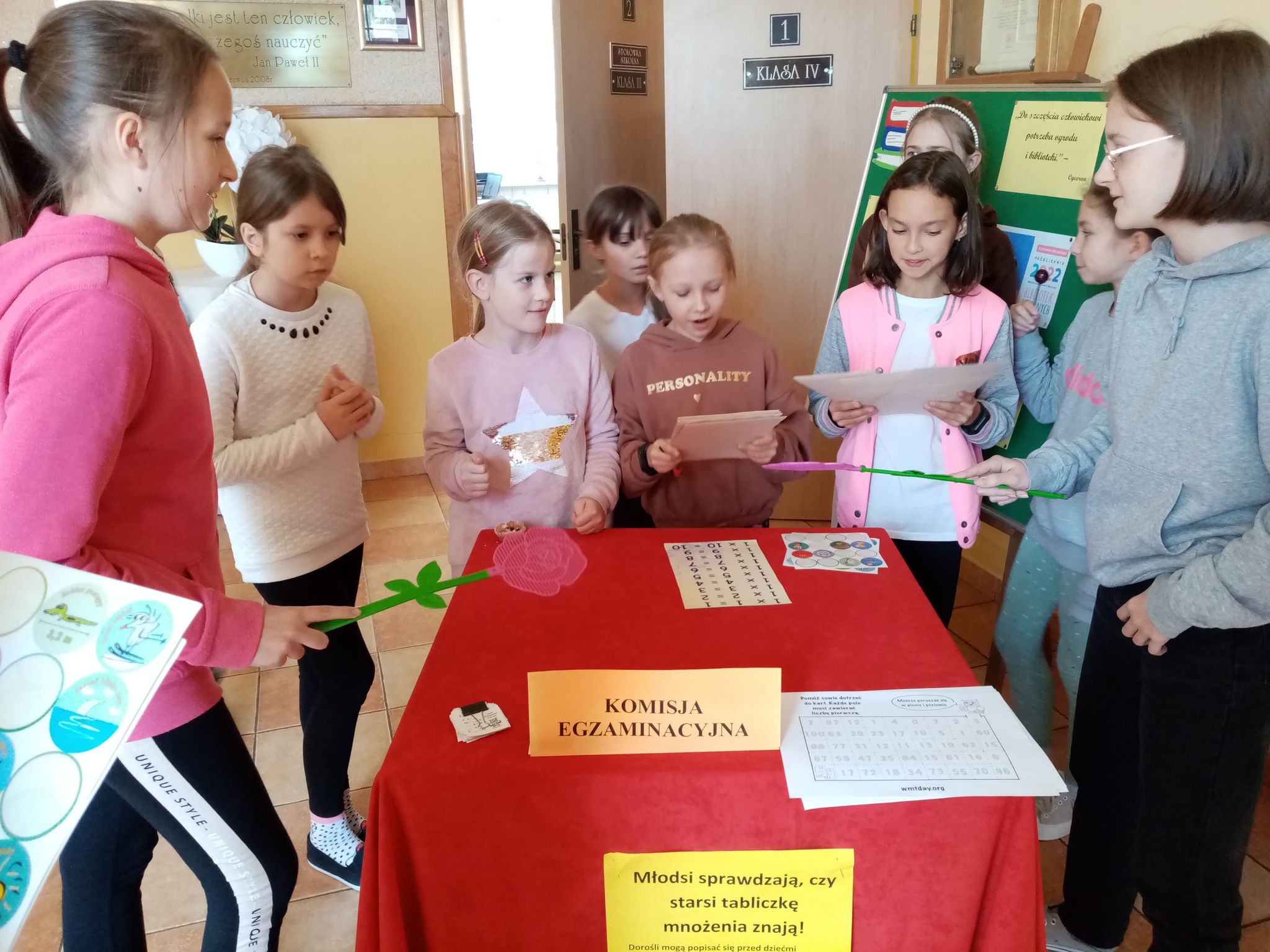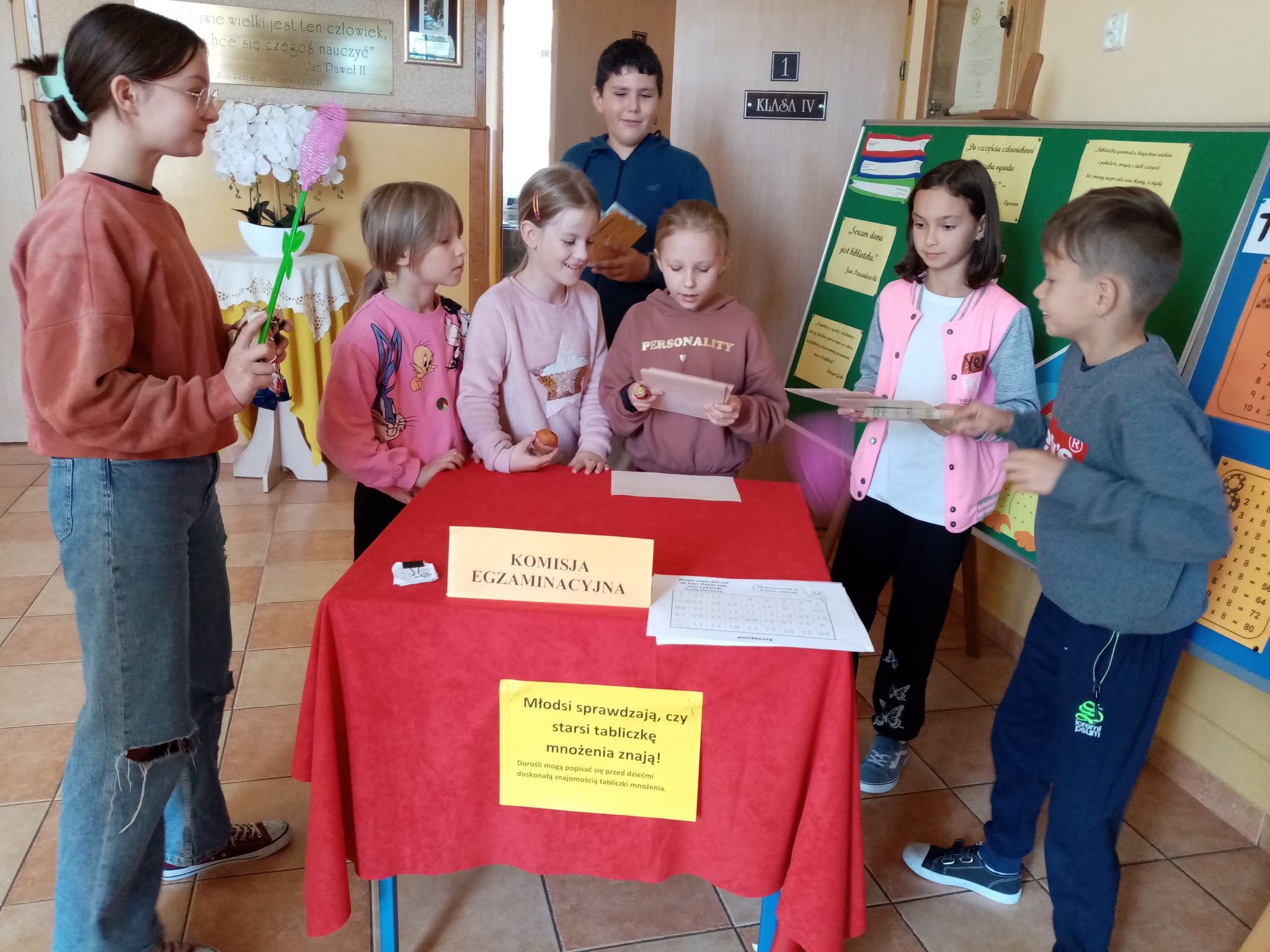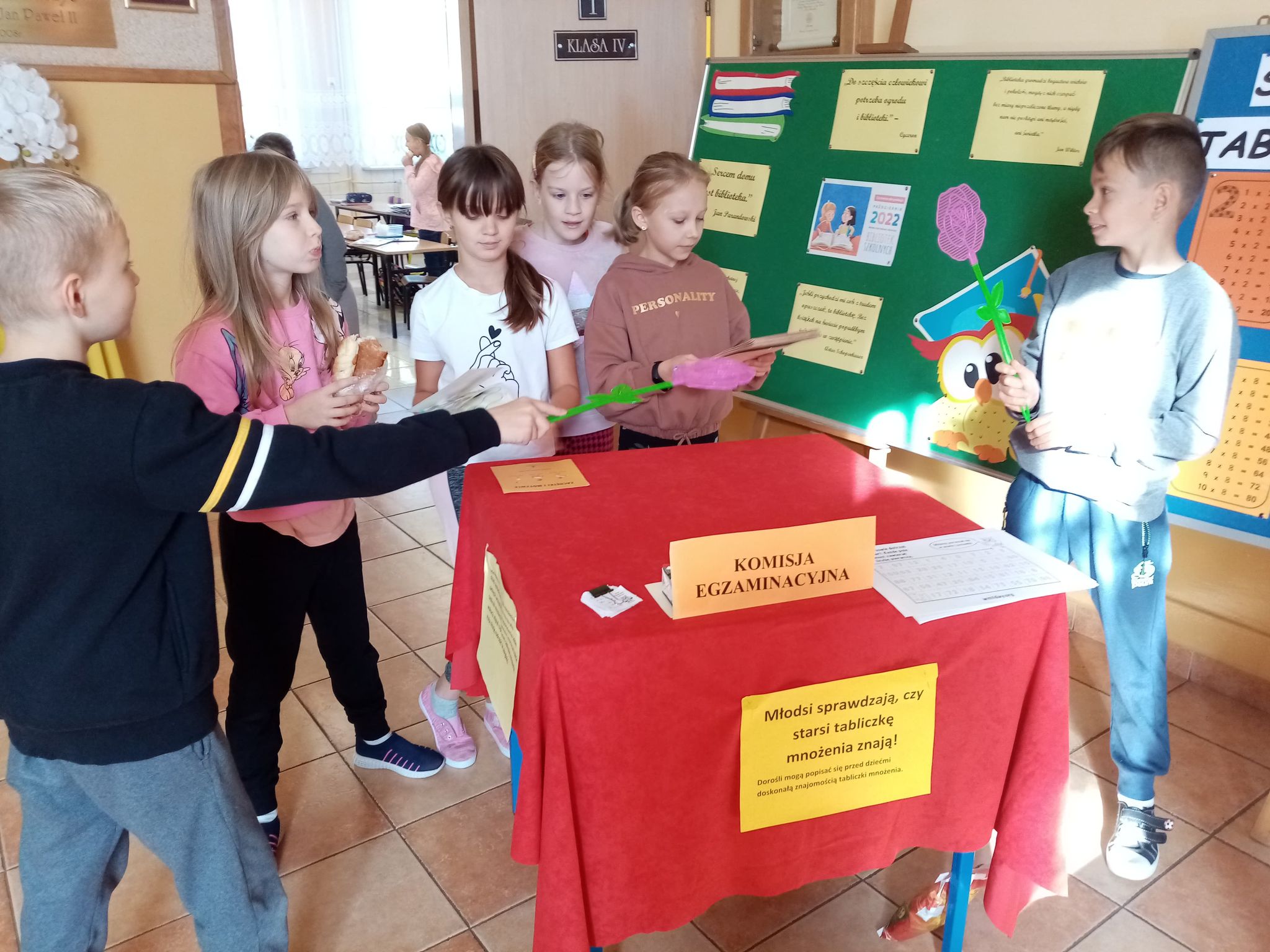 Ten dzień co roku zagrzewa naszych uczniów do sprawdzania wiedzy matematycznej, nie tylko wśród kolegów, ale także wśród rodziców. W tym roku przypada już XII edycja, podczas której uczniowie rywalizowali ze sobą, a także wykazywali się znajomością tabliczki mnożenia. Na szkolnym korytarzu zbierali się, by rozwiązać krótki test. Za poprawne wyniki otrzymywali naklejki.