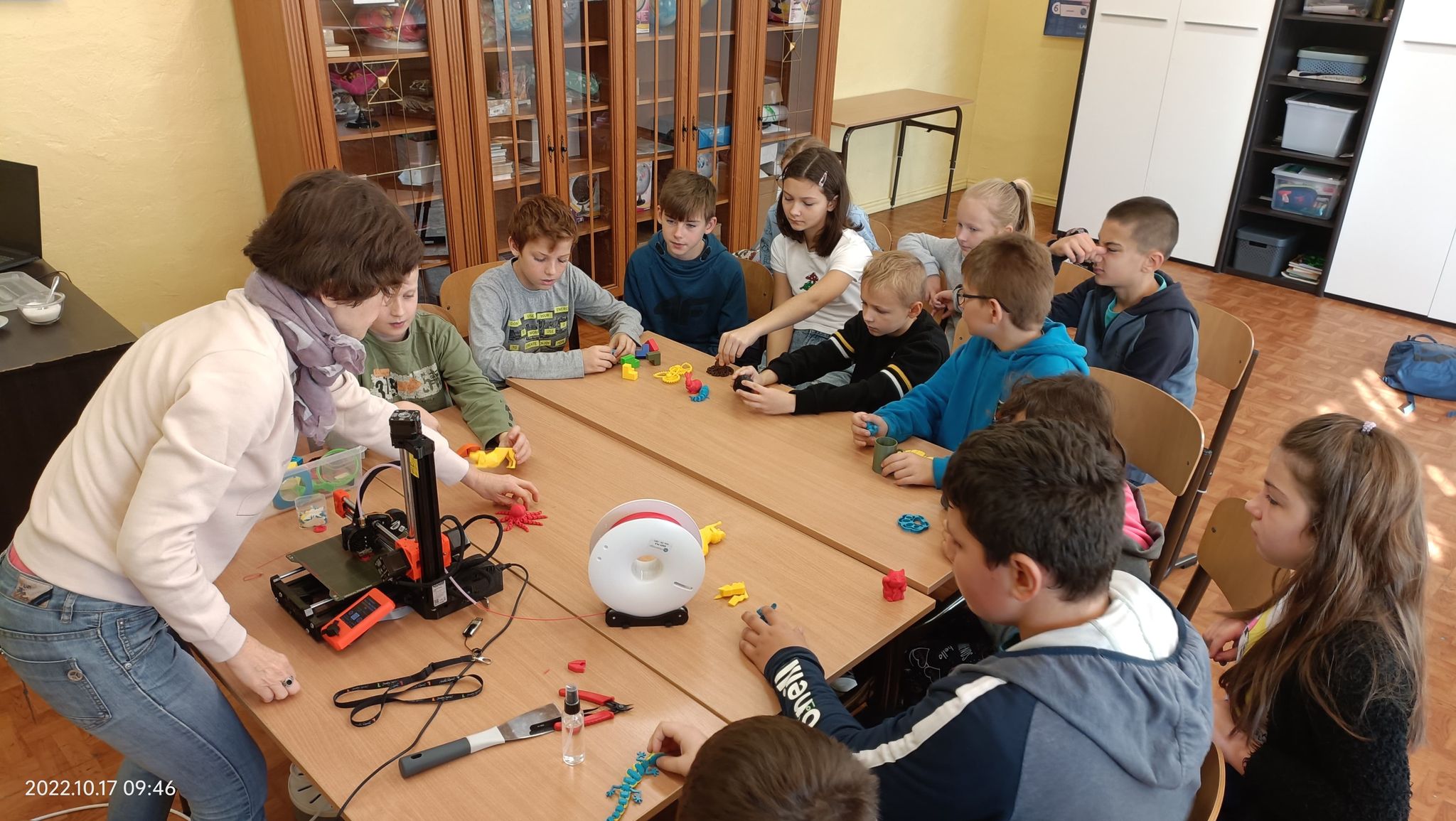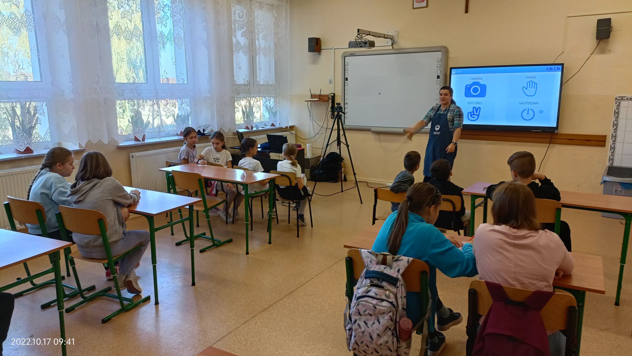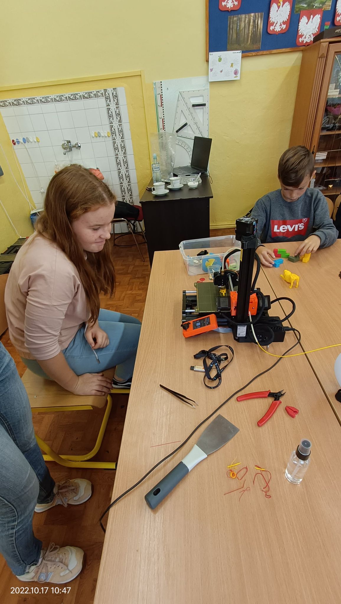 17 października w naszej szkole odbyły się pokazy możliwości sprzętów, jakie otrzymaliśmy z projektu Laboratoria Przyszłości. Uczestniczyli w nich uczniowie klas IV-VI. Pokaz podzielony był na dwa tematy: drukowanie na drukarce 3D oraz sztuczna inteligencja. Prowadzące pokazały możliwości sprzętowe i ich zastosowanie. Spotkanie odbyło się w ramach rządowego programu rozwijania szkolnej infrastruktury oraz umiejętności podstawowych i przekrojowych dzieci i młodzieży – „Laboratoria Przyszłości.”