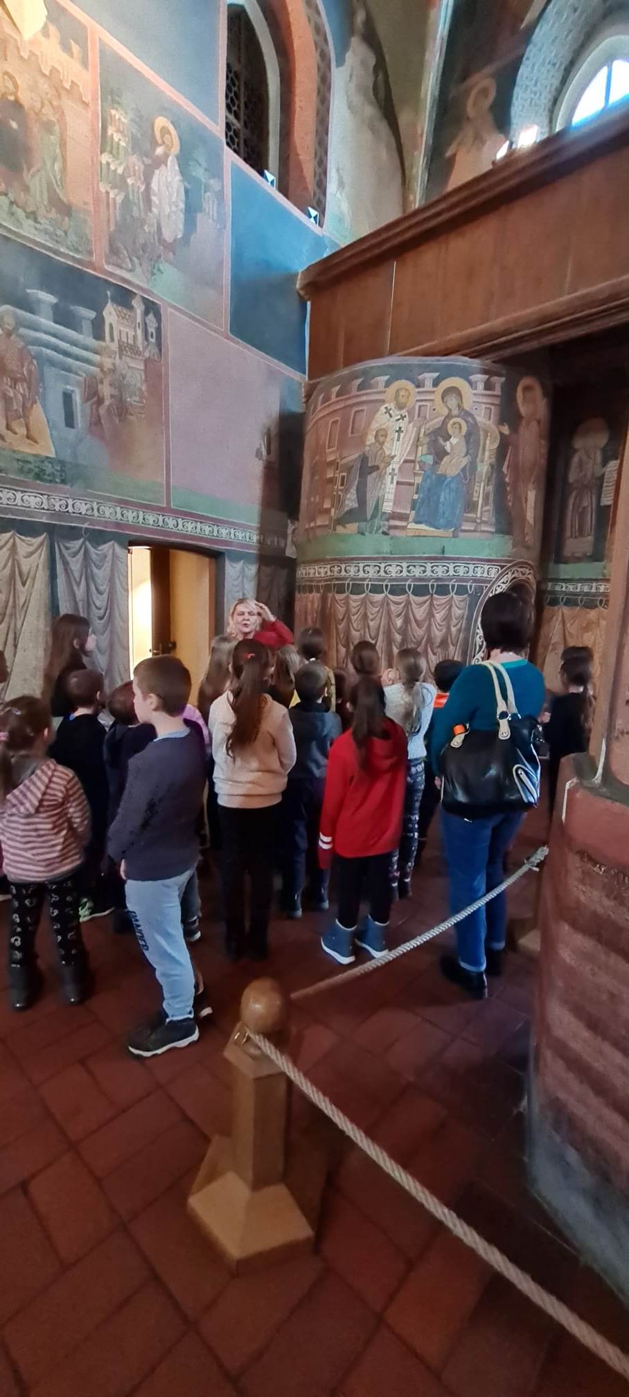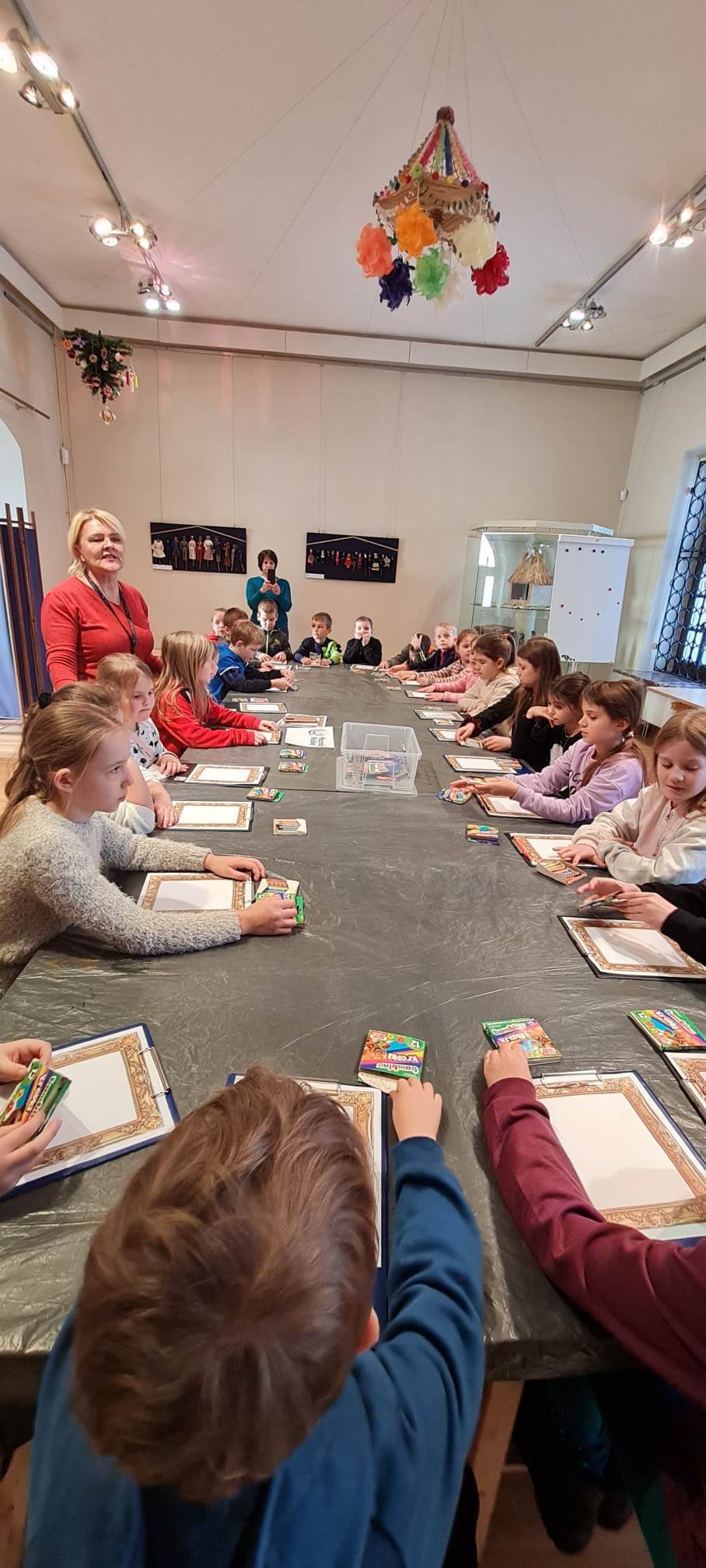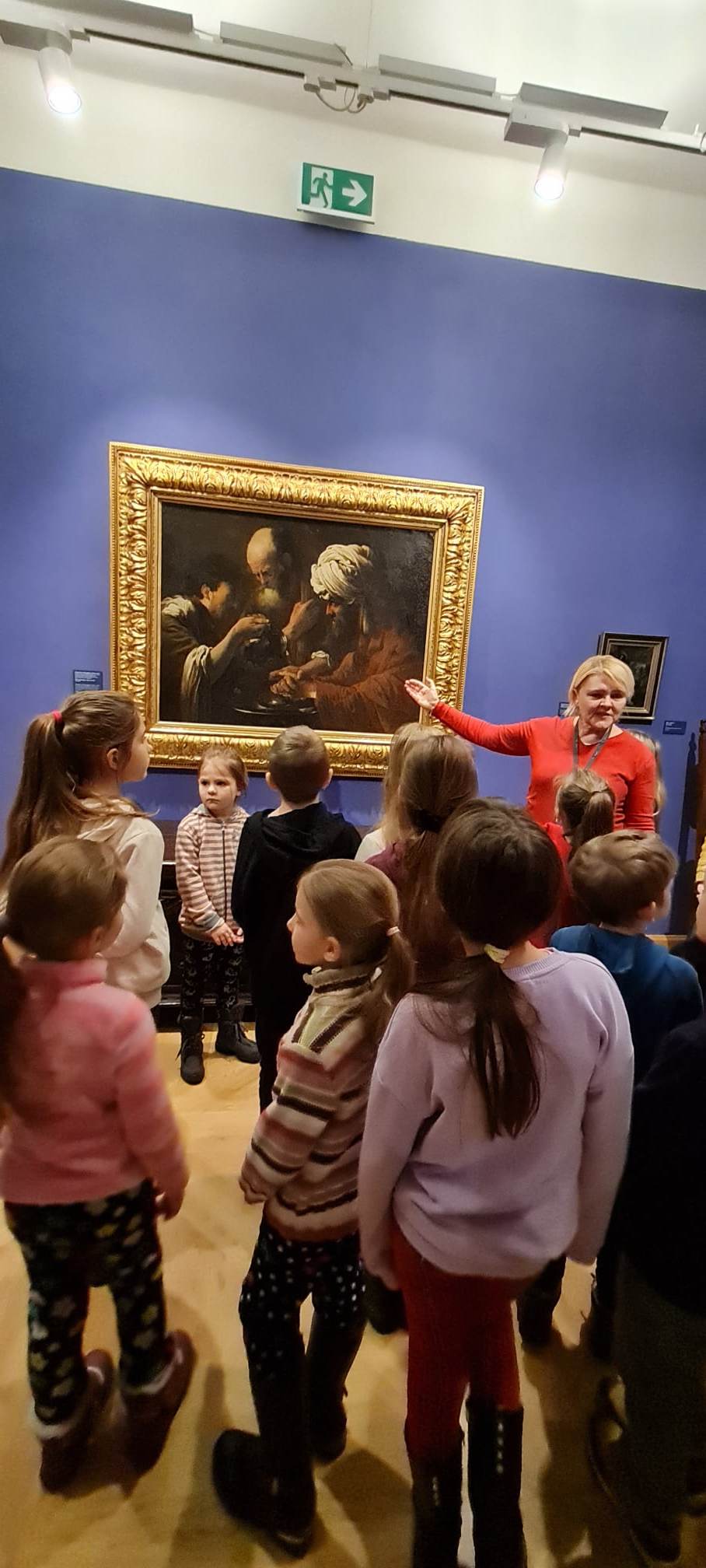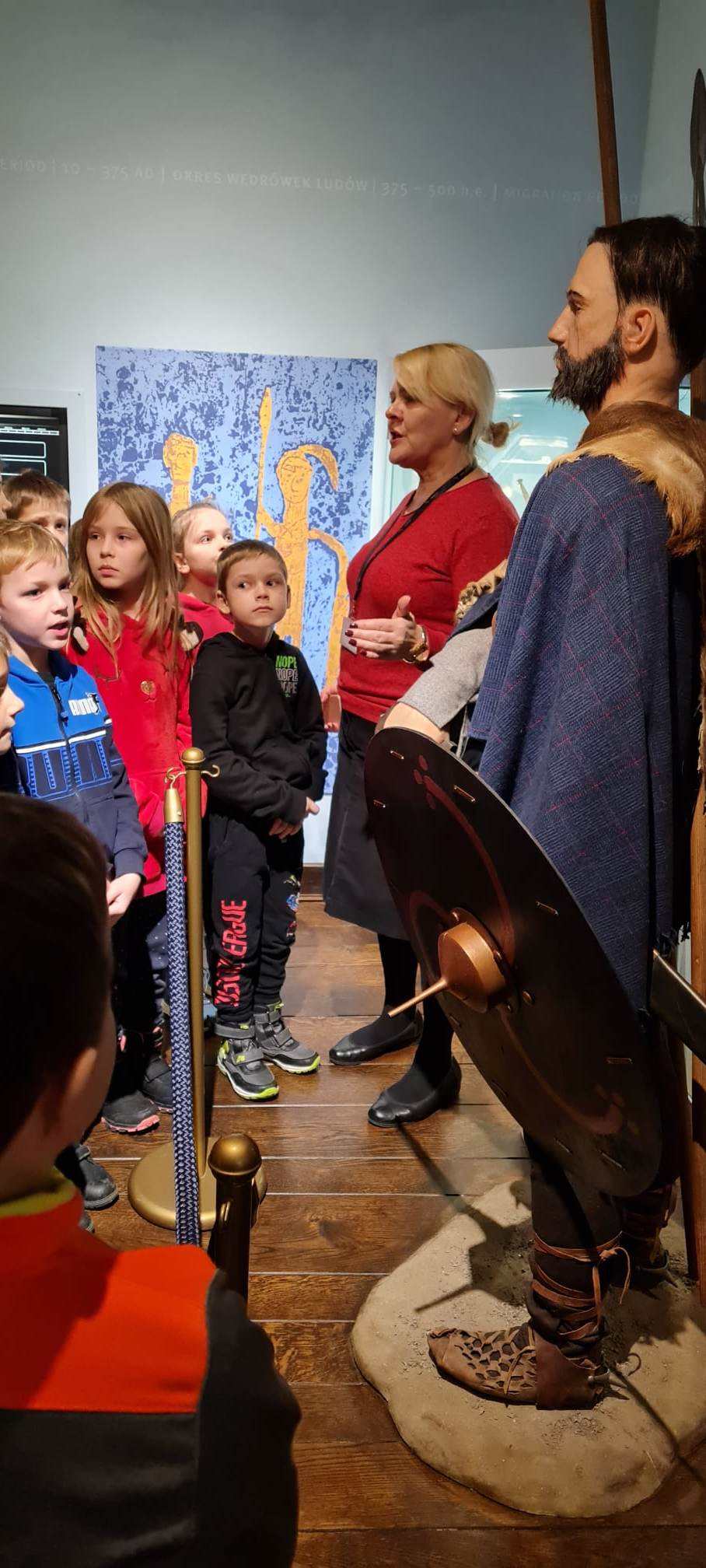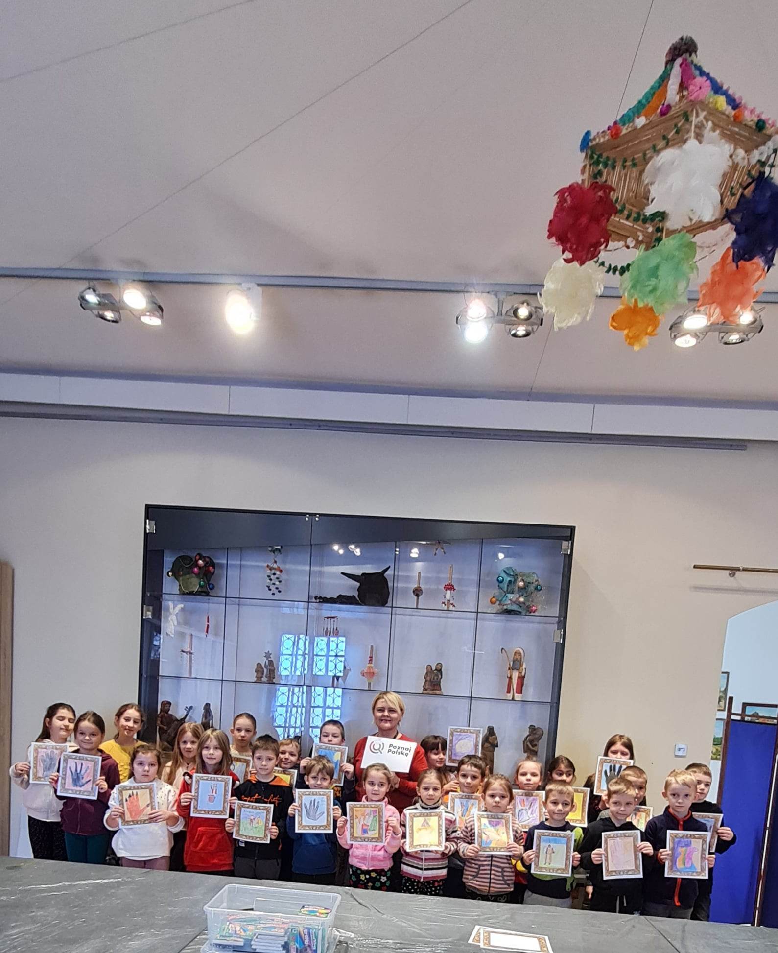 Poranek 14 grudnia przywitał nas siarczystym mrozem. Nie zrażeni tym faktem, uczniowie klas I–III stawili się na długo wyczekiwaną wycieczkę do Lublina. Pierwszym punktem naszego wyjazdu było Muzeum Narodowe w Lublinie. Dla większości dzieci była to pierwsza w życiu wizyta w muzeum i okazja do poznania najważniejszych pojęć związanych z muzealnictwem, takich jak: eksponat, wystawa,czy kolekcja. Pod opieką pani przewodnik dzieci zastanawiały się, po co istnieją muzea i o czym mogą nam powiedzieć gromadzone w nich przedmioty. Następnie pod opieką przewodnika miejskiego ruszyliśmy na krótki spacer „Szlakiem lubelskich legend”, podczas którego uczniowie poznawali historię miasta poprzez najciekawsze opowieści i podania, w tym najsłynniejszą „Legendę o Czarciej Łapie’. Kolejnym punktem naszej wycieczki była wizyta w Muzeum wsi Lubelskiej, które o tej porze roku prezentuje bożonarodzeniowy świąteczny wystrój. Pani przewodnik opowiedziała nam o tradycjach związanych z ozdobą domostw i z wieczerzą wigilijną. W izbie nad stołem wisiał ręcznie wykonany kolorowy pająk. W salonie dworu obejrzeliśmy drzewko bożonarodzeniowe ubrane w tradycyjne ozdoby: gwiazdy z pazłotka po cukierkach, długi biały łańcuch składający się z drobnych ogniw słomkowo-bibułowych oraz barwne ozdoby z naturalnych surowców takich, jak wydmuszki jajek, szyszki czy orzechy włoskie malowane farbką na złoto. W zabytkowym kościele obejrzeliśmy piękną szopkę z zabytkowymi figurami. Wszyscy wrócili z wycieczki szczęśliwi, pełni entuzjazmu, ale też bogatsi o nowe doświadczenia i zasoby wiedzy. Z pewnością wspomnienia z tej wycieczki pozostaną z nami na długo.
