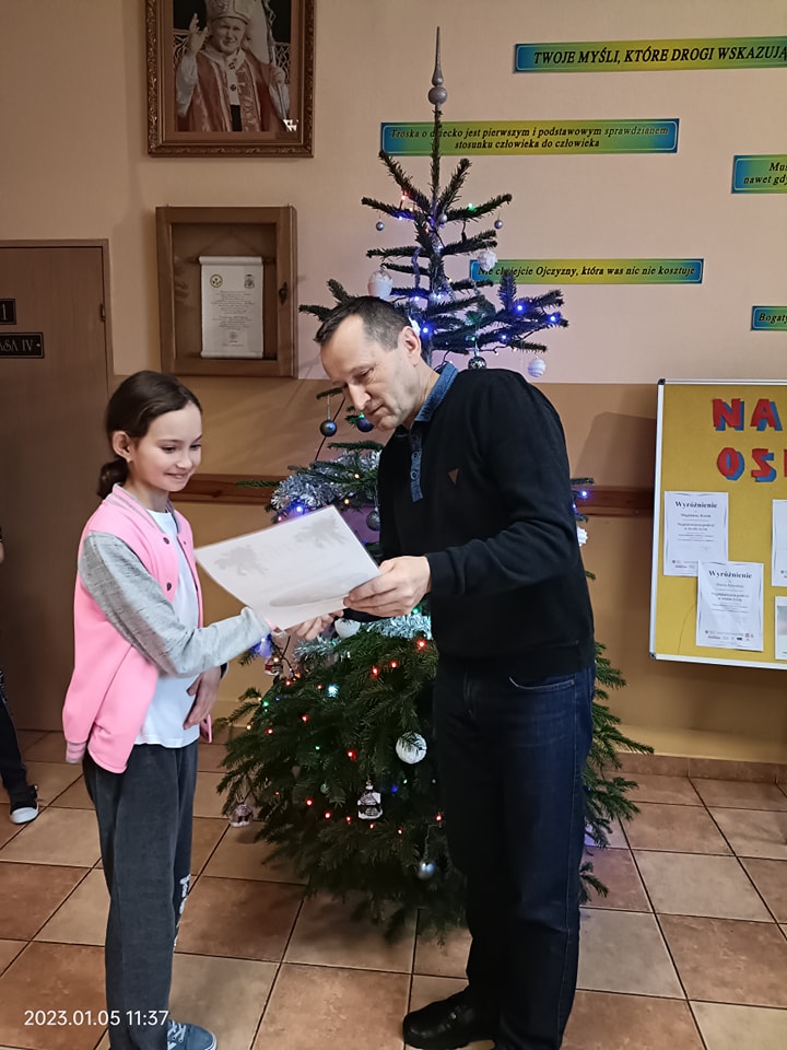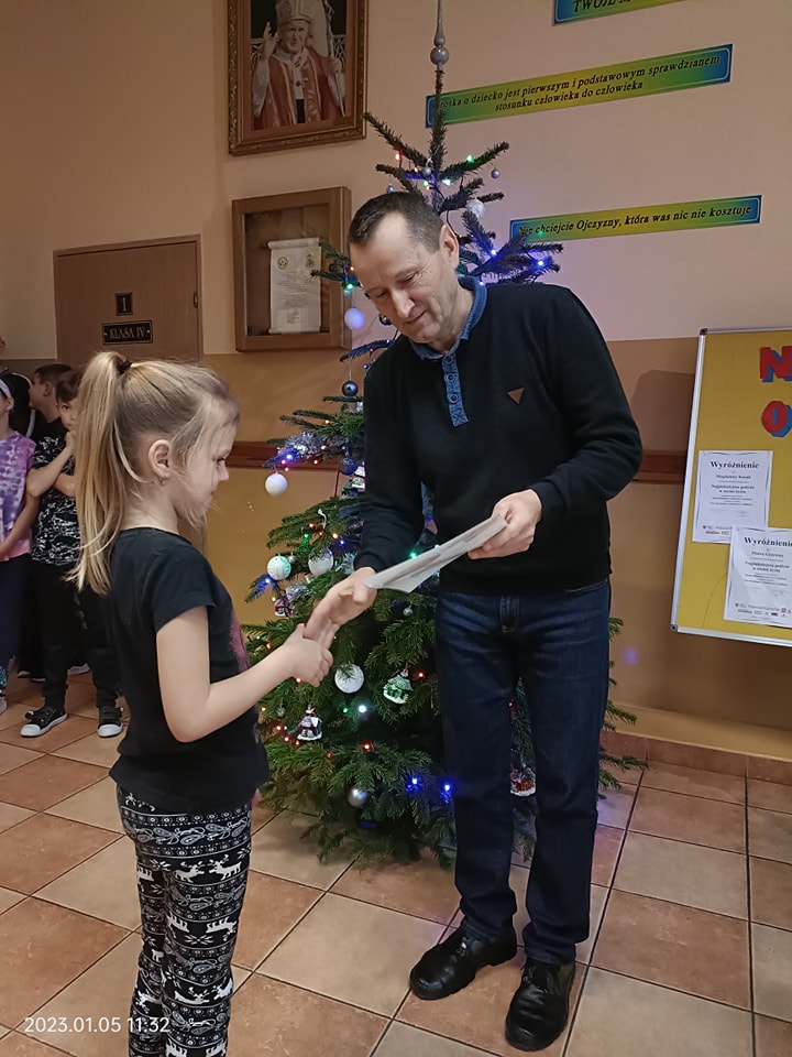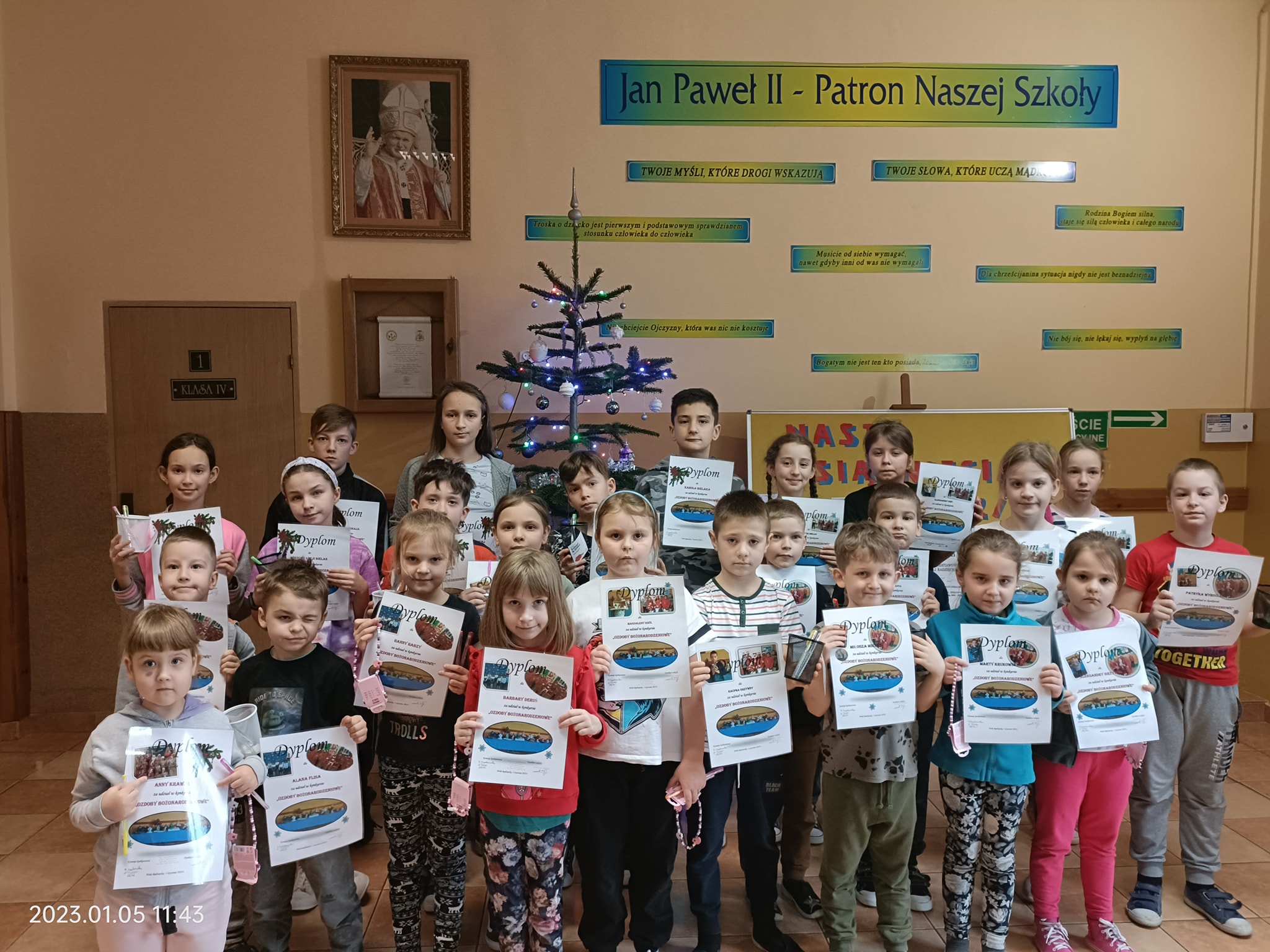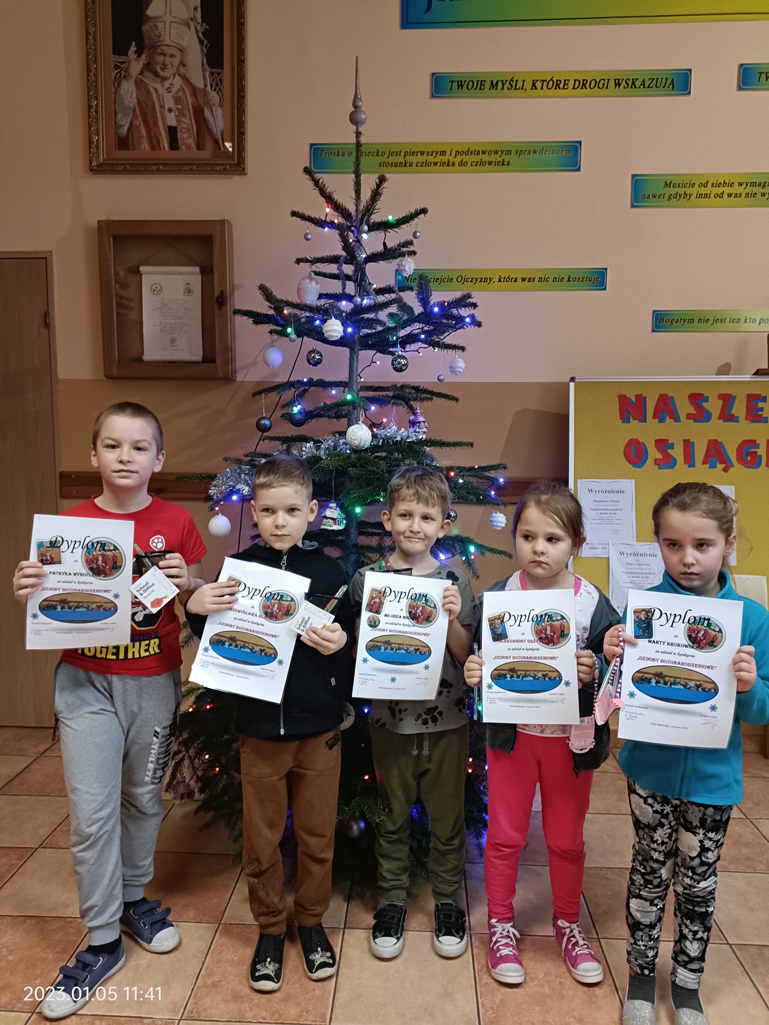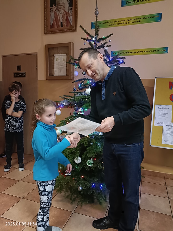 Z okazji Świąt Bożego Narodzenia w naszej szkole został zorganizowany konkurs plastyczny pod hasłem „Ozdoby bożonarodzeniowe”. Uczestnicy czyli przedszkolaki i uczniowie klas I – VI wykonali piękne prace wśród których były stroiki, choinki, bałwanki, bombki, gwiazdy oraz szopki. Do ich wykonania dzieci wykorzystały różnorodne materiały i techniki. Wszystkie prace były piękne, ciekawe i pracochłonne. W związku z tym komisja postanowiła nagrodzić każdego uczestnika.