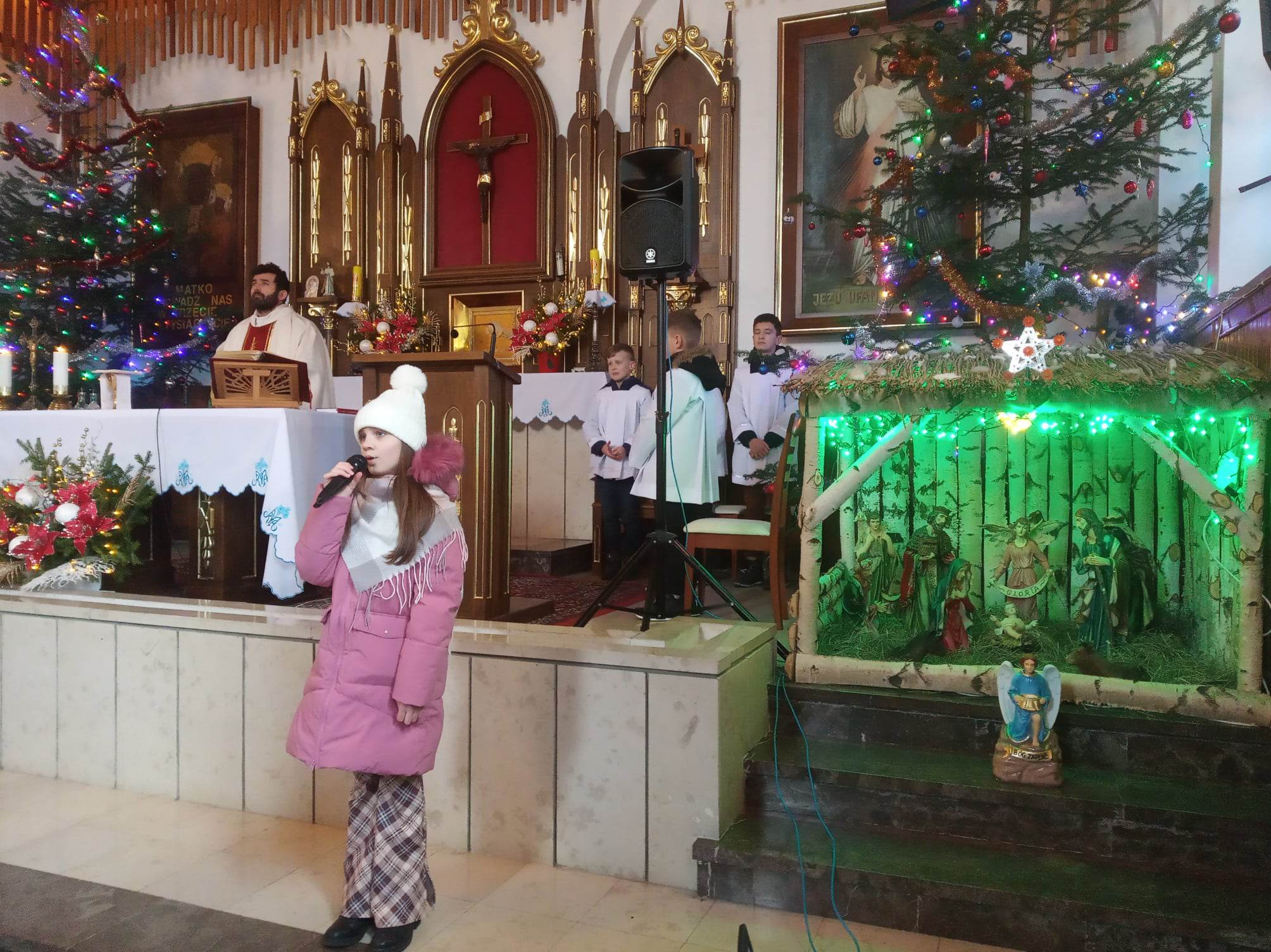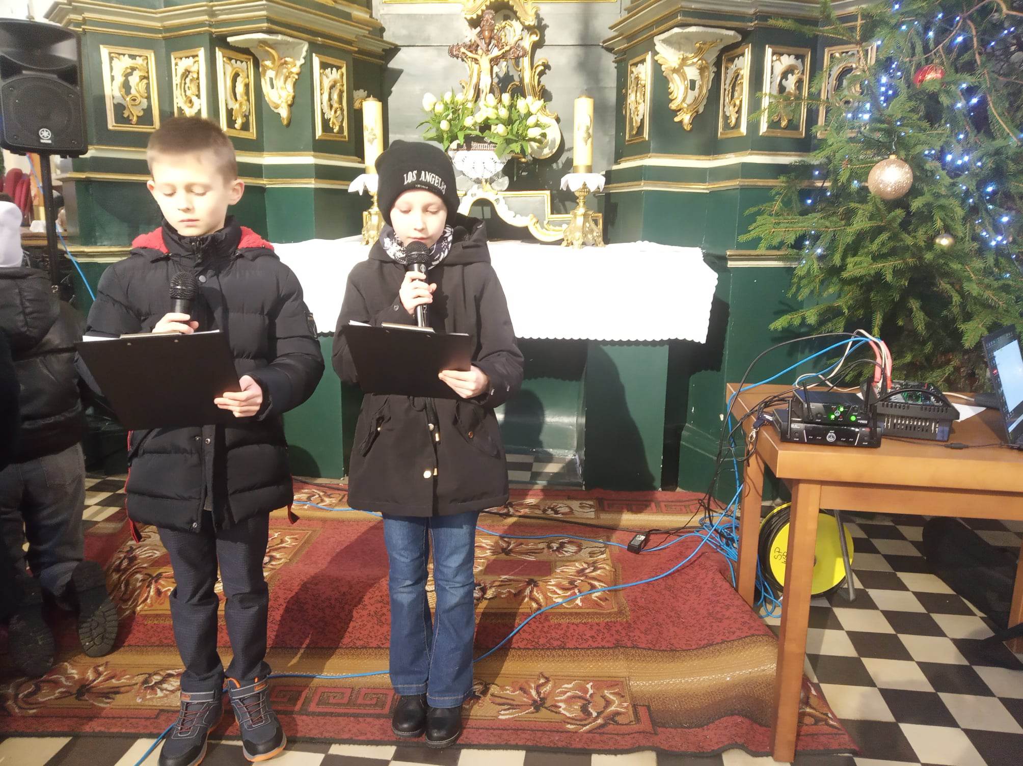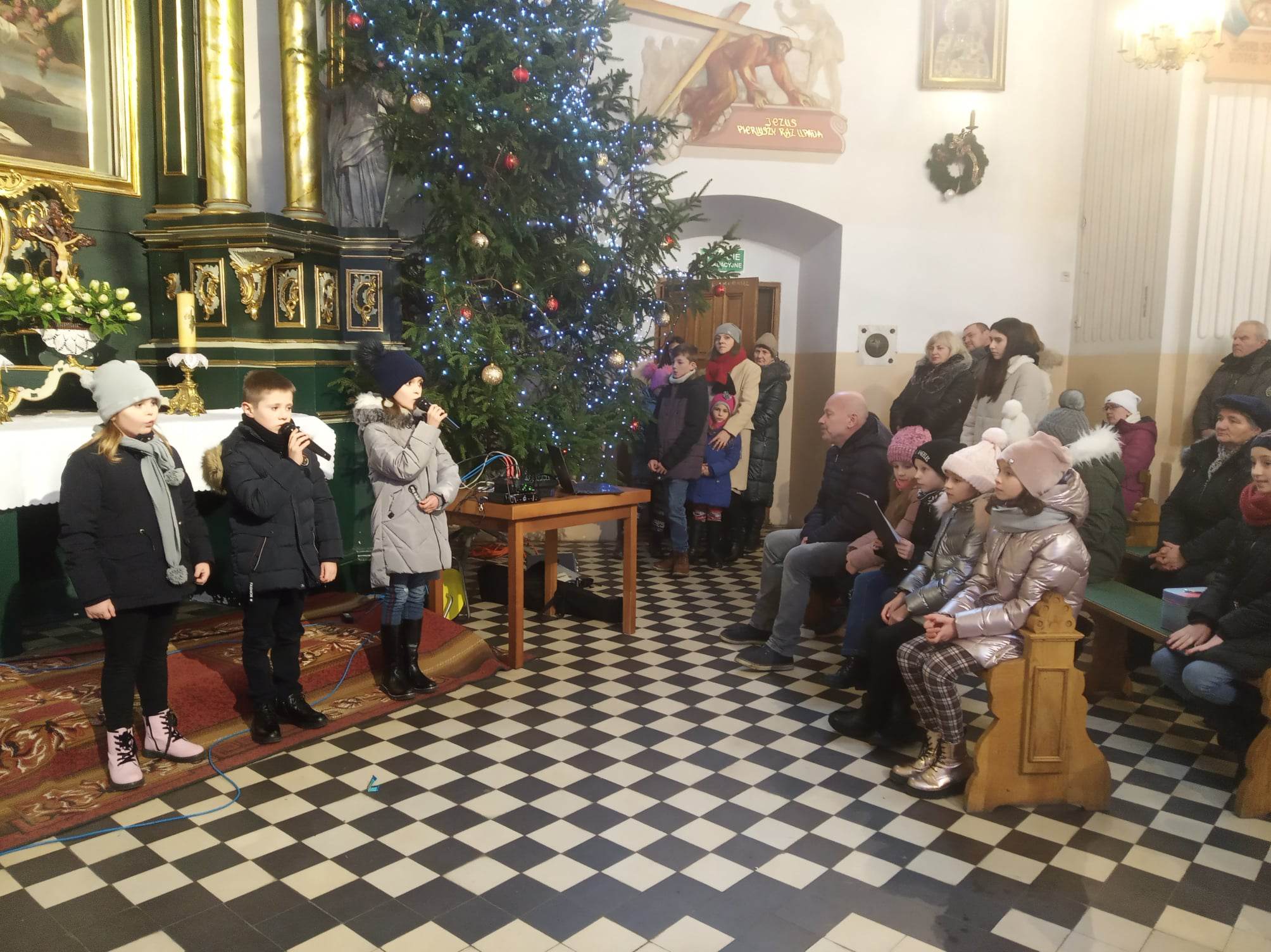 W ostatnich dniach odbyły się dwa pozaszkolne występy młodych artystów z naszej szkoły. Miały one miejsce 6 stycznia kościele w Radzięcinie oraz 8 stycznia w kaplicy w Woli Kąteckiej. Uczniowie zaśpiewali kolędy podczas liturgii, a po zakończeniu nabożeństw zaprezentowali zebranym krótki montaż słowno-muzyczny o tematyce bożonarodzeniowej. Dziękujemy wszystkim uczestnikom za zaangażowanie.