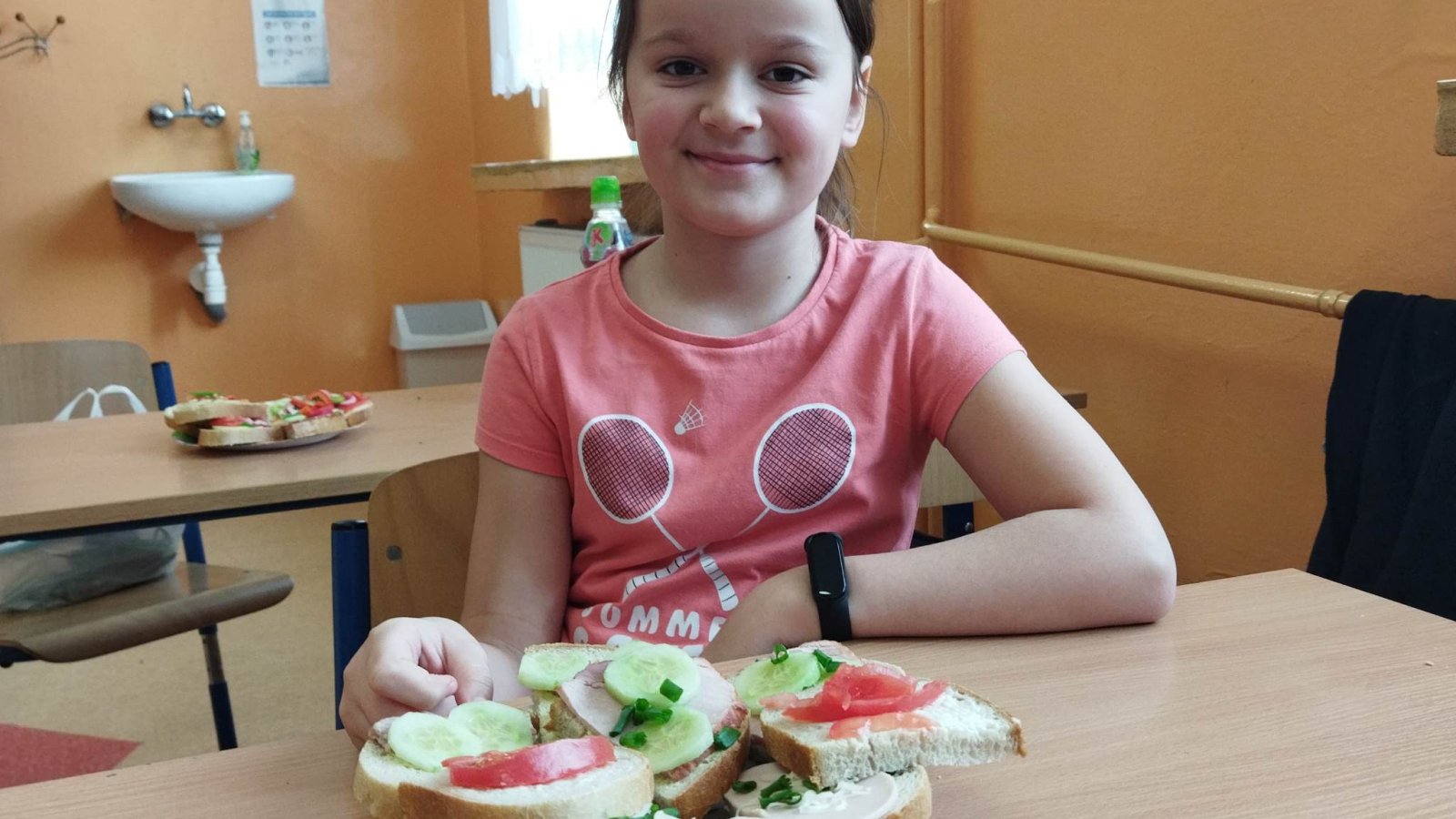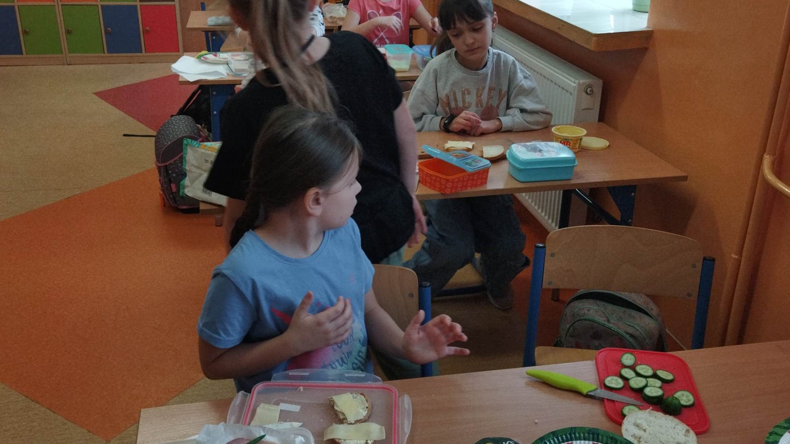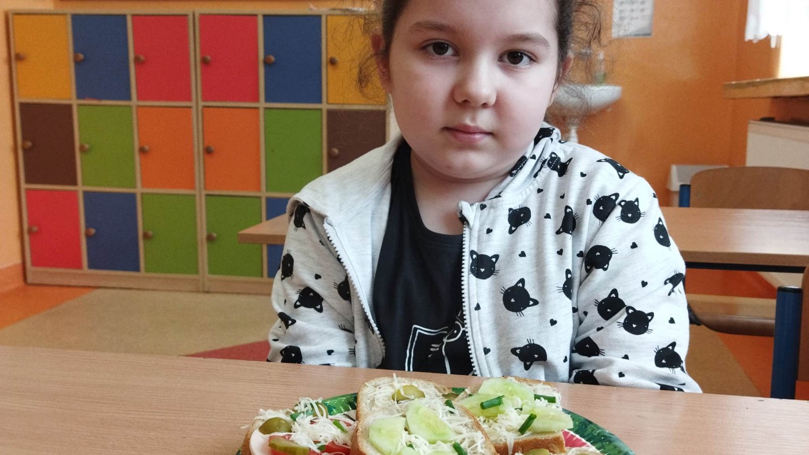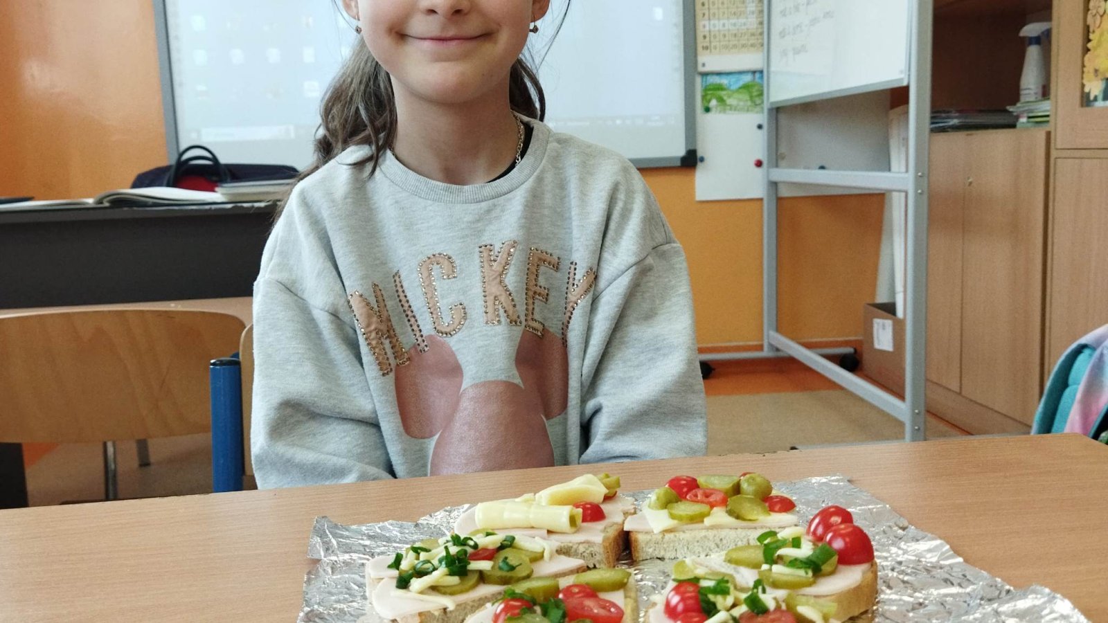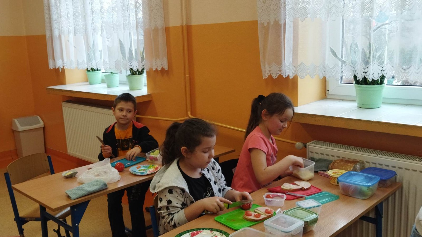 W myśl wiersza Stanisława Karaszewskiego klasy młodsze przygotowały kanapki bogate w witaminy i barwne kolory. Duży nacisk położyliśmy na właściwy dobór produktów korzystnych dla zdrowia oraz estetykę wykonania. Znalazły się na nich ogórki, pomidory, szczypiorek oraz nabiał. Kanapki wyglądały smakowicie, wszyscy zjedli je z wielkim apetytem. Były to wspaniałe zajęcia uczące nas samodzielności i zdrowego odżywiania.