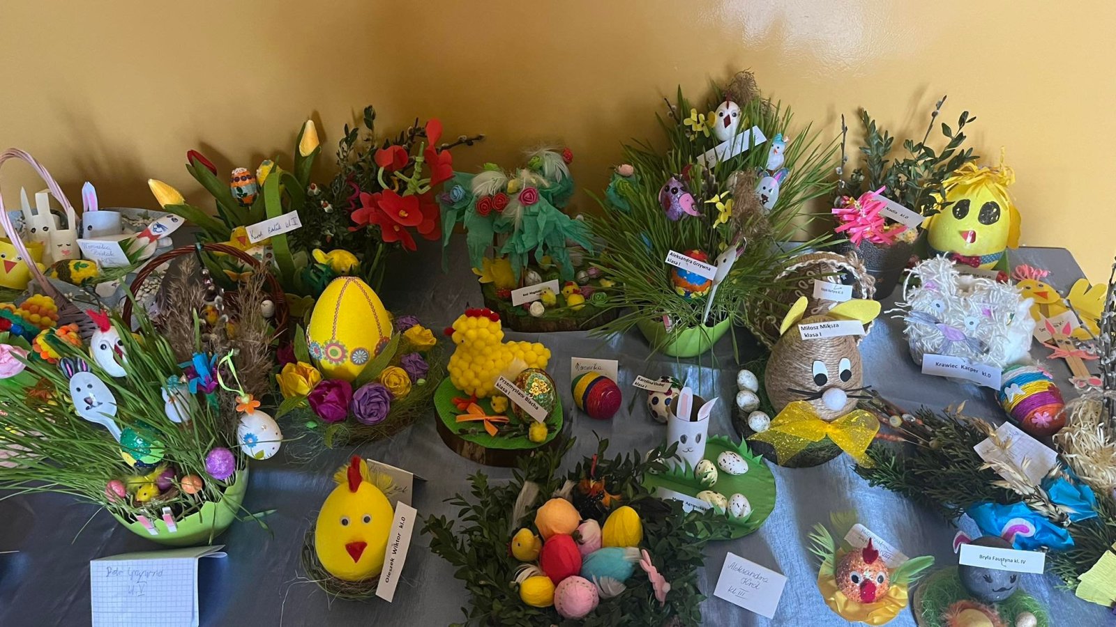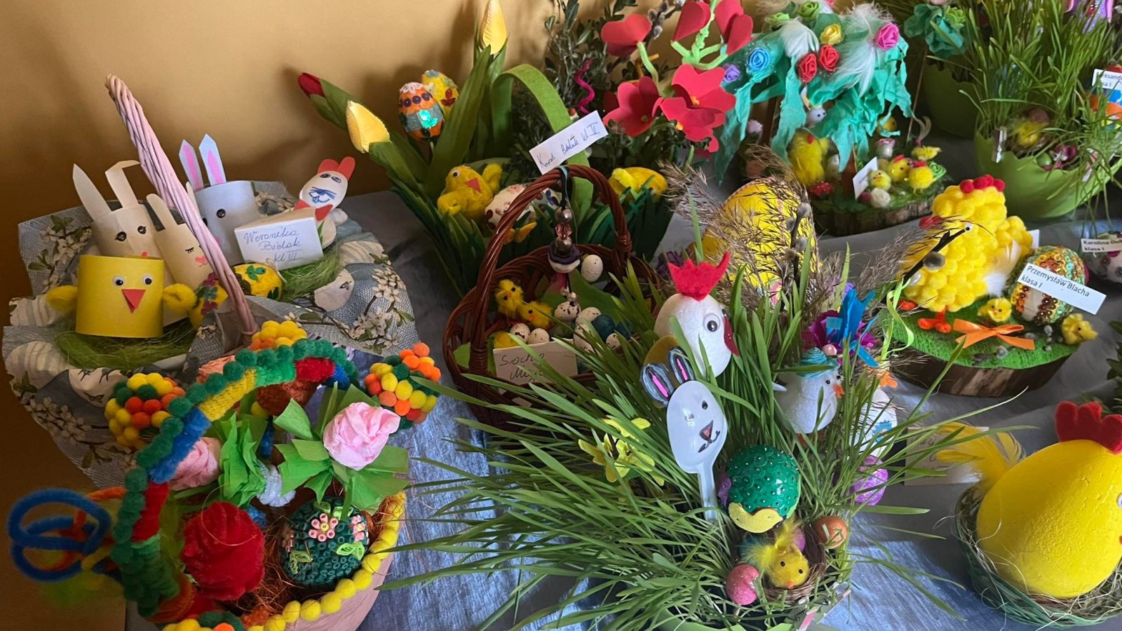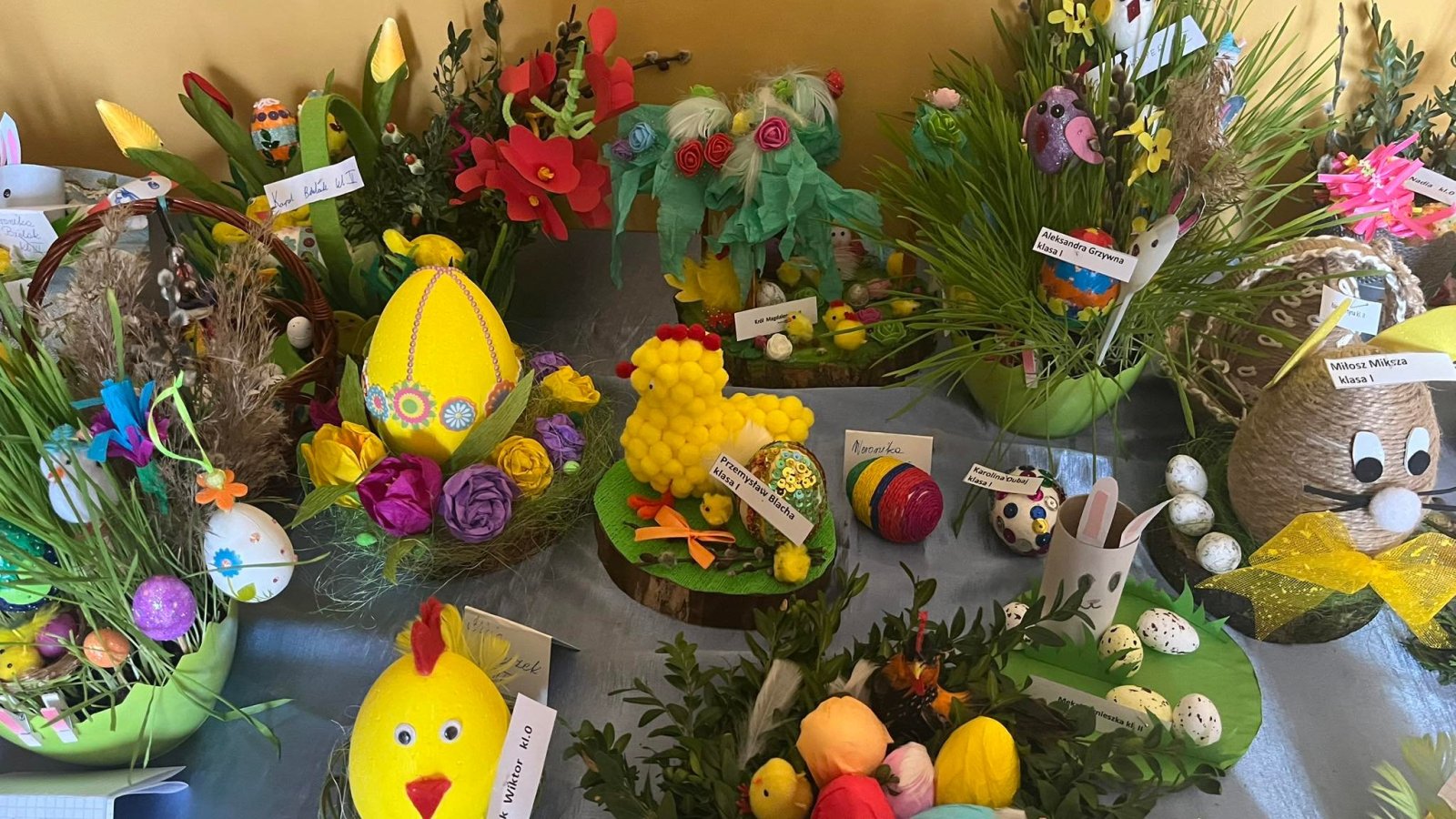 Pisanki, stroiki, baranki wielkanocne, ozdobne koszyczki, palmy i zajączki to efekty pracy uczniów naszej szkoły, przyniesione na zorganizowany również w tym roku konkurs pt: „Najpiękniejsza ozdoba wielkanocna”. Celem konkursu jest rozwijanie wrażliwości artystycznej, zainteresowań i uzdolnień manualnych i plastycznych uczniów oraz kształtowanie aktywnej i twórczej postawy wobec sztuki i tradycji kulturowej związanej z obrzędami okresu Wielkiej Nocy.