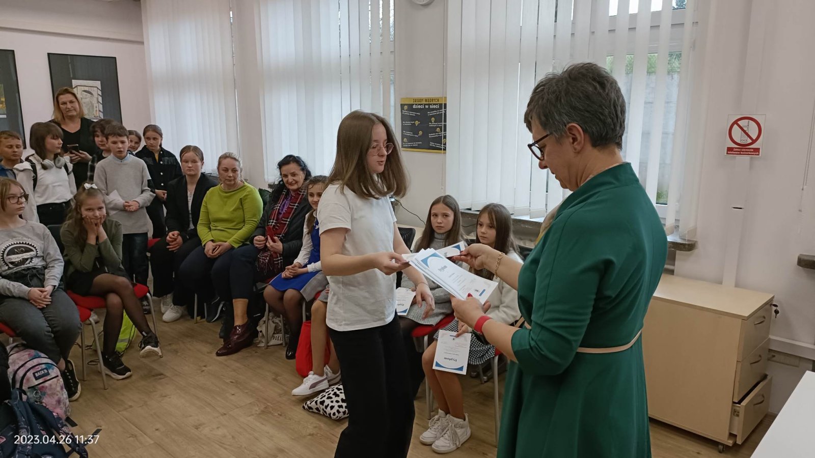W środę 26 kwietnia w Bibliotece Pedagogicznej w Zamościu odbył się finał regionalnego konkursu czytelniczego „Czy znasz…?”. Wzięli w nim udział uczniowie z powiatów: biłgorajskiego, hrubieszowskiego, tomaszowskiego oraz zamojskiego, którzy zwyciężyli w eliminacjach powiatowych. Wśród finalistów znalazły się również trzy uczennice naszej szkoły – Magdalena Kozak, Julia Łata i Kamila Kamińska z klasy VI. Zadaniem uczestników było samodzielne rozwiązanie testu wiedzy dotyczącego przeczytanych wcześniej książek.