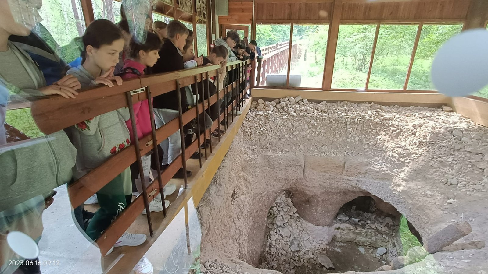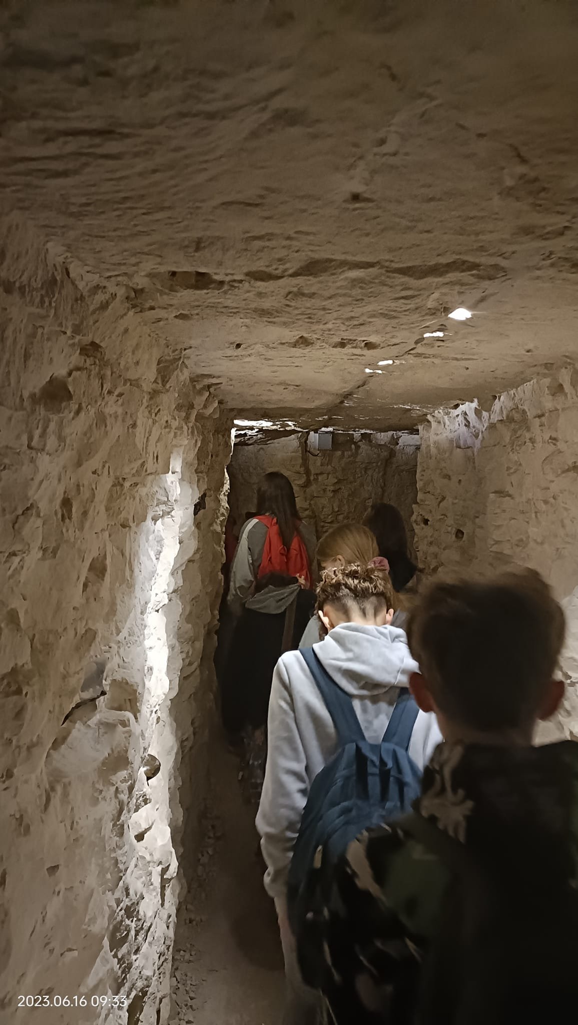 Do autokaru wsiadaliśmy lekko zaspani, wyjazd był poranny, aby jak najwięcej skorzystać z tej jednodniowej wycieczki. Pierwszym punktem były Krzemionki Opatowskie, rezerwat archeologiczny, prehistoryczne kopalnie krzemienia pasiastego wpisane na Listę Światowego Dziedzictwa UNESCO. Z pozyskiwanego tu krzemienia wyrabiano narzędzia, głównie siekiery, ale też i noże. Wyrobiska eksploatacyjne miały wysokość do 120 cm, prehistoryczni górnicy drążli skały na leżąco lub na kolanach. Wyjątkowość rezerwatu wynika z doskonale zachowanych hałd górniczych zagłębień poszybowych, a zwłaszcza podziemnych kopalń, które, pomimo upływu tysięcy lat, dotrwały do naszych czasów w prawie niezmienionym stanie. Co ciekawe – na jednej ze skał znaleziono oryginalny symbol Bogini Matki Ziemi liczący ponad 2000 lat. Znajduje się on m.in. w logo Krzemionek Opatowskich. Według naukowców – miał za zadanie chronić górników.