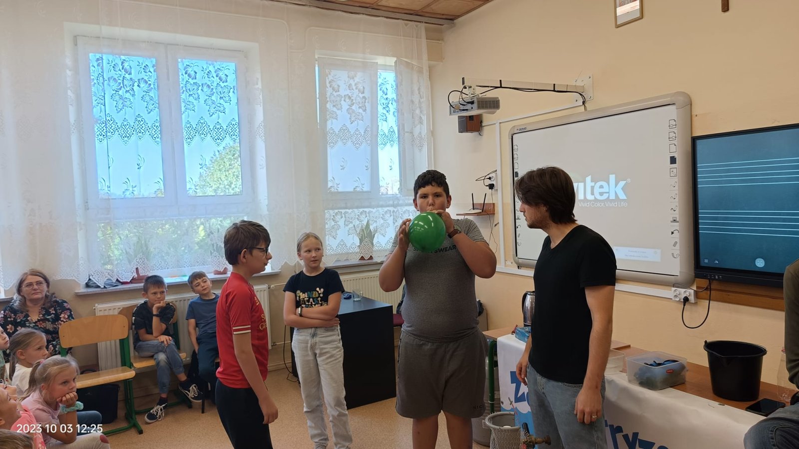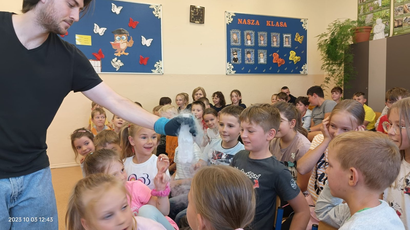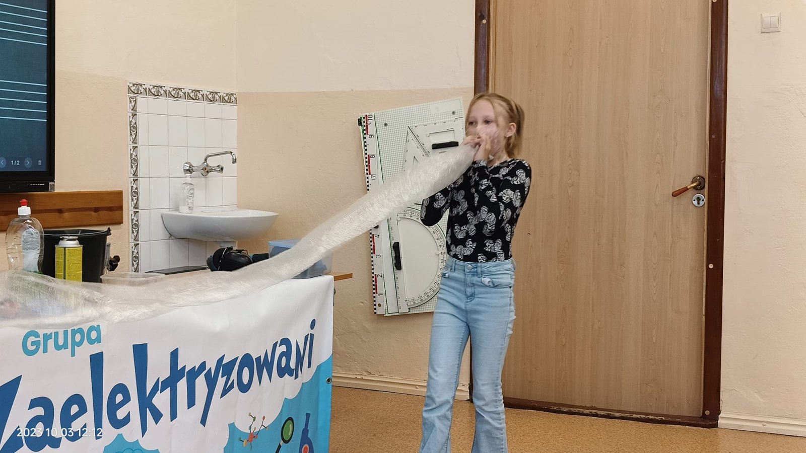 Taki tytuł miał program pokazowy zorganizowany przez grupę ZAELEKTRYZOWANI. Podczas tej niecodziennej lekcji uczniom zostały przekazane różne przydatne informacje z zakresu fizyki i chemii. Było śmiesznie, poważnie, mroźnie, gorąco i hucznie…