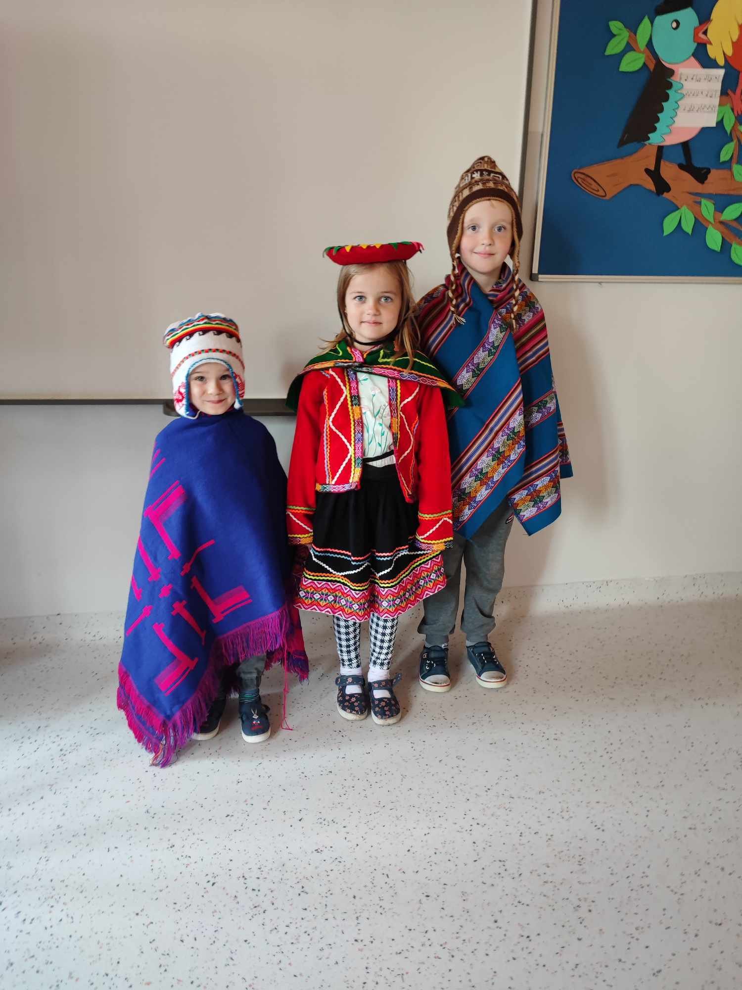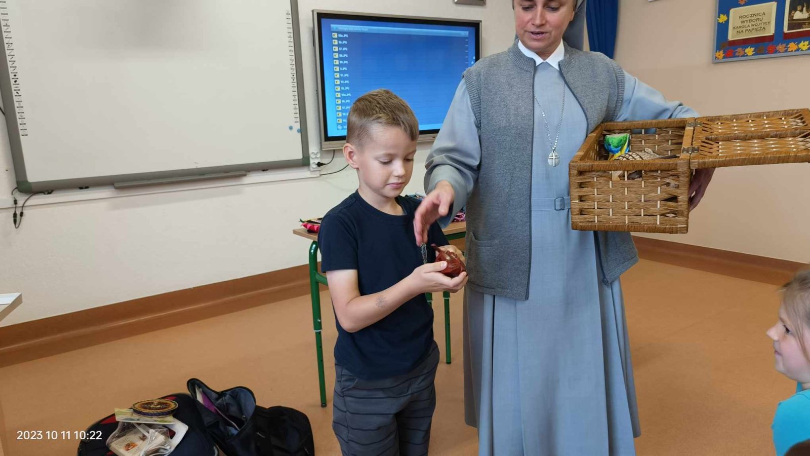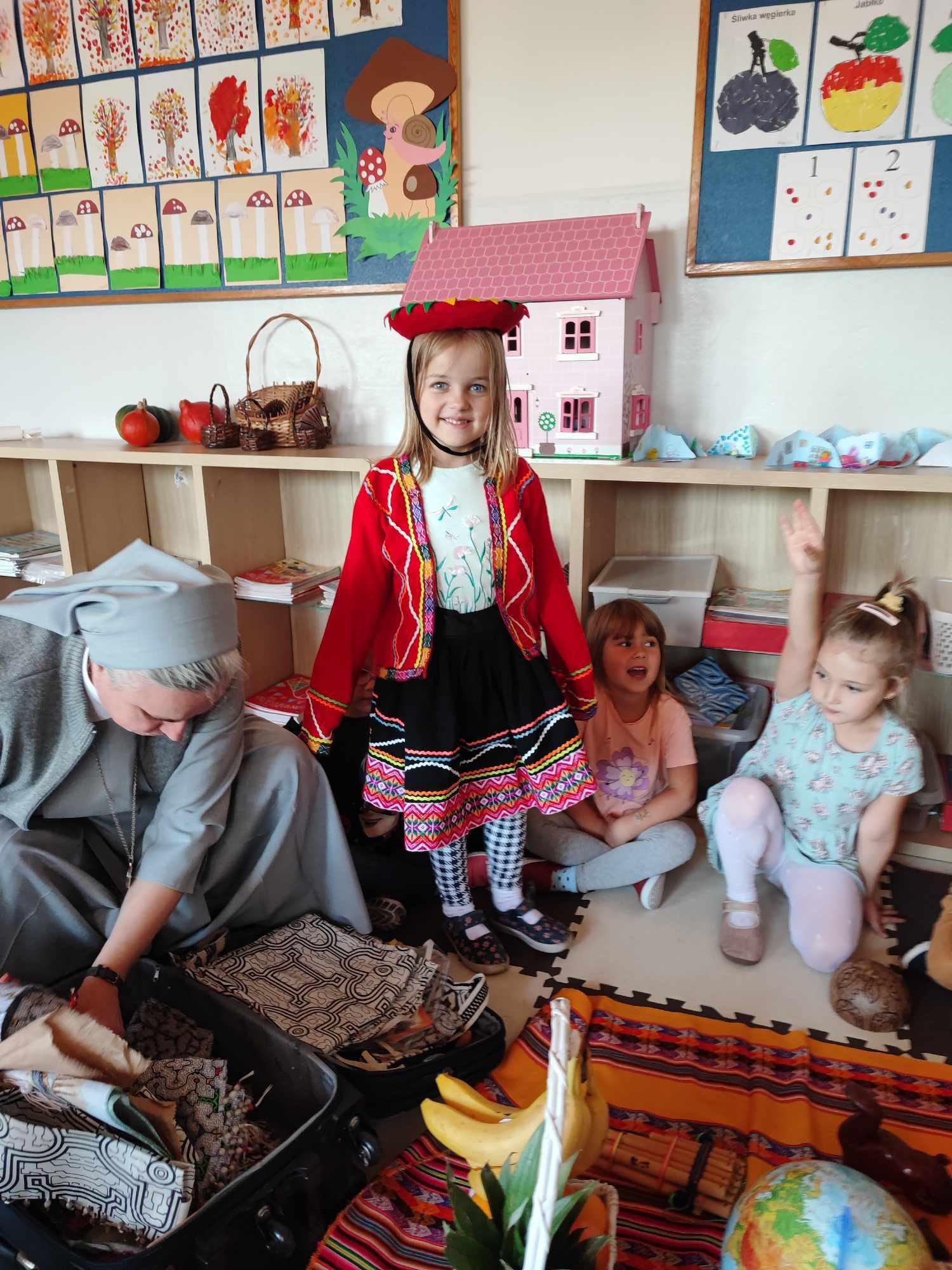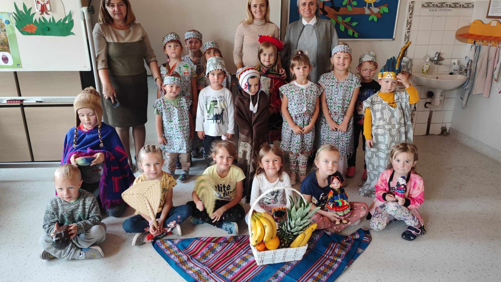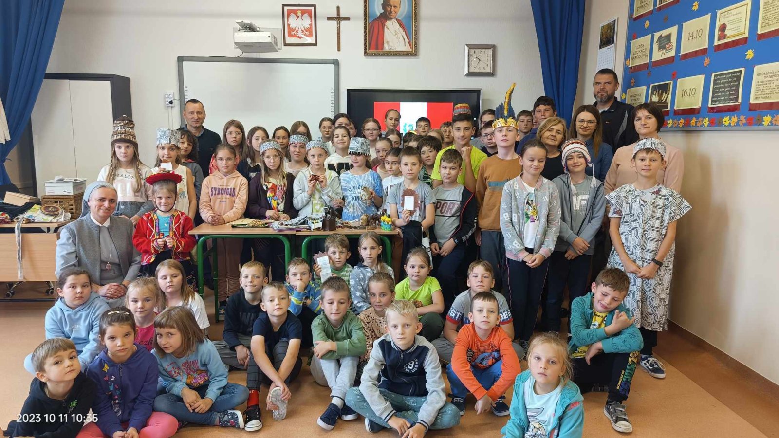 Uczniowie naszej szkoły 11 października uczestniczyli w spotkaniu z siostrą Urszulą Myszak – misjonarką, która 13 lat spędziła w Peru. Siostra podczas swojego pobytu w Peru zajmowała się pracą z dziećmi, prowadziła działalność katechetyczną i posługę pielęgniarską. Siostra Urszula jest związana z Lubelszczyzną, ponieważ pochodzi z niewielkiej miejscowości położonej w okolicach Biłgoraja. Dzięki niej przedszkolaki oraz uczniowie klas I-VII mogli wybrać się w wirtualną podróż do daleko położonego Peru. Siostra Urszula opowiadała o codziennym życiu Peruwiańczyków oraz ich radościach i troskach, pokazując bardzo ciekawe zdjęcia, a także eksponaty przywiezione z Peru. Dzieci mogły posłuchać tradycyjnej muzyki peruwiańskiej, nauczyć się kilku hiszpańskich słów, przymierzyć piękne regionalne stroje mieszkańców tego kraju, a nawet zaśpiewać piosenkę w języku hiszpańskim. Spotkanie zakończyło się wspólnym odczytaniem wiersza „Każdy może zostać misjonarzem”. Dziękujemy siostrze Urszuli za wizytę w naszej szkole oraz za wirtualną podróż do tak pięknego i ciekawego kraju, jakim jest Peru.