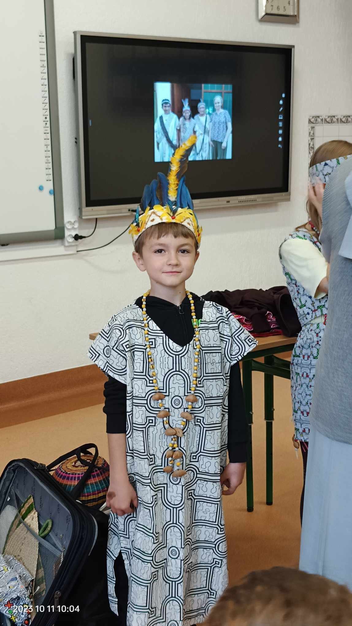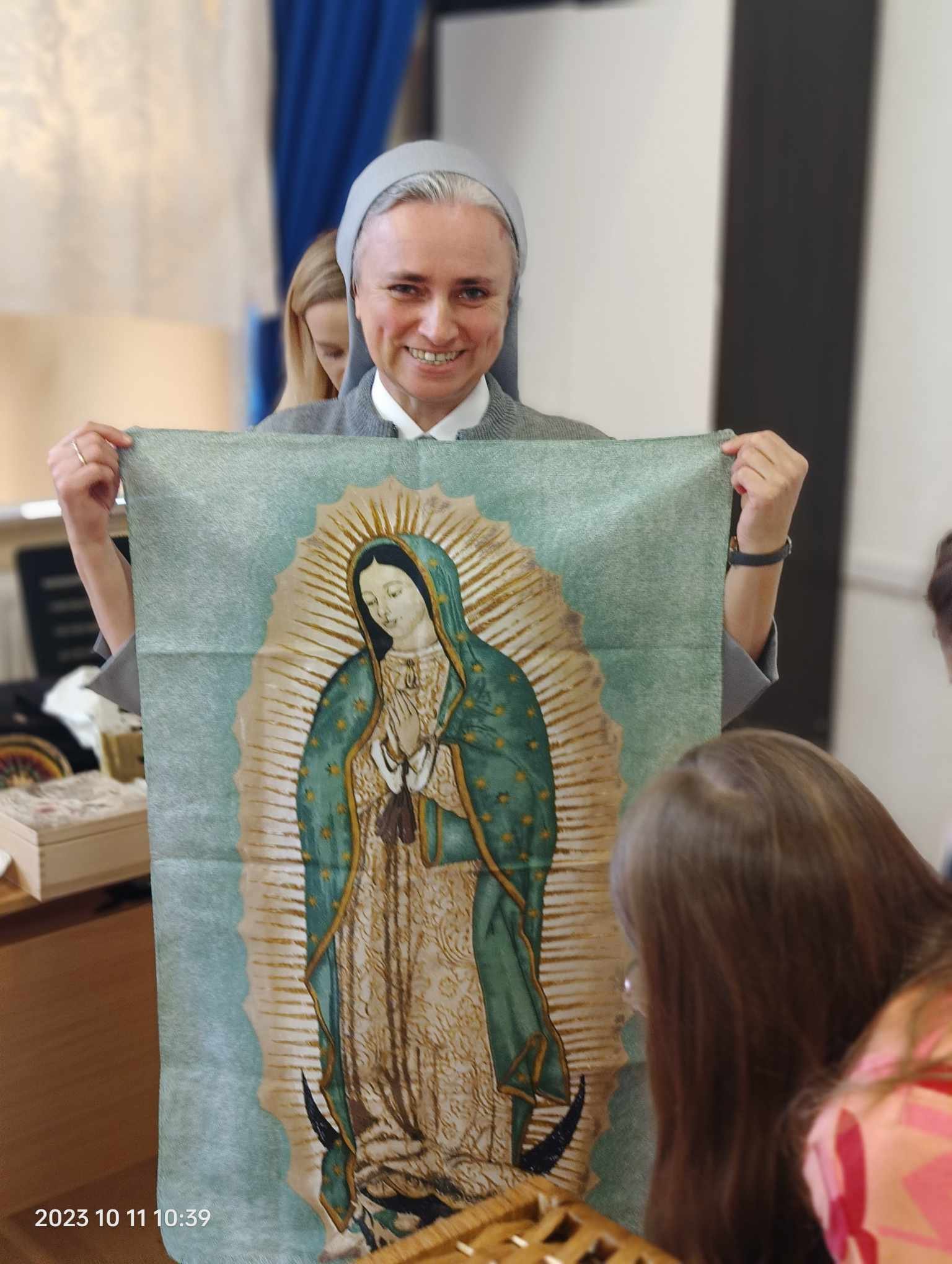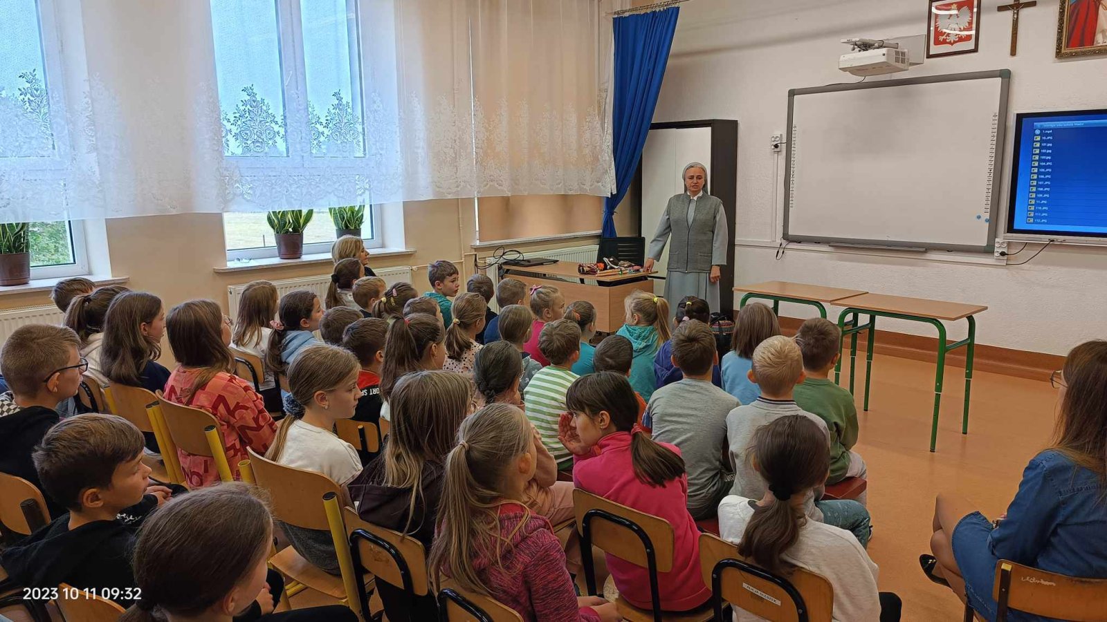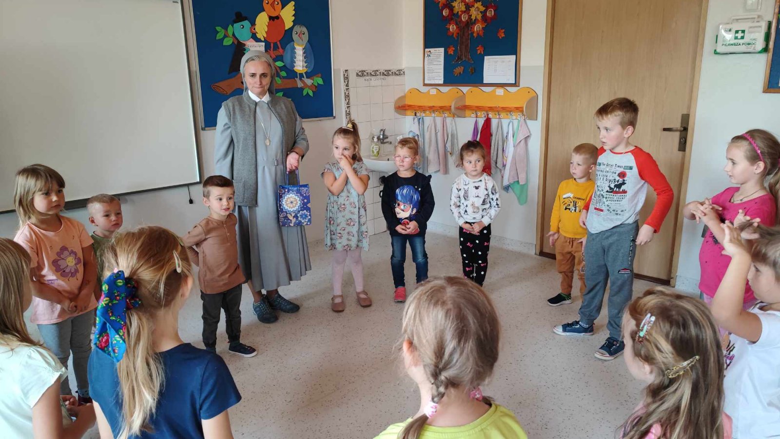 Uczniowie naszej szkoły 11 października uczestniczyli w spotkaniu z siostrą Urszulą Myszak – misjonarką, która 13 lat spędziła w Peru. Siostra podczas swojego pobytu w Peru zajmowała się pracą z dziećmi, prowadziła działalność katechetyczną i posługę pielęgniarską. Siostra Urszula jest związana z Lubelszczyzną, ponieważ pochodzi z niewielkiej miejscowości położonej w okolicach Biłgoraja. Dzięki niej przedszkolaki oraz uczniowie klas I-VII mogli wybrać się w wirtualną podróż do daleko położonego Peru. Siostra Urszula opowiadała o codziennym życiu Peruwiańczyków oraz ich radościach i troskach, pokazując bardzo ciekawe zdjęcia, a także eksponaty przywiezione z Peru. Dzieci mogły posłuchać tradycyjnej muzyki peruwiańskiej, nauczyć się kilku hiszpańskich słów, przymierzyć piękne regionalne stroje mieszkańców tego kraju, a nawet zaśpiewać piosenkę w języku hiszpańskim. Spotkanie zakończyło się wspólnym odczytaniem wiersza „Każdy może zostać misjonarzem”. Dziękujemy siostrze Urszuli za wizytę w naszej szkole oraz za wirtualną podróż do tak pięknego i ciekawego kraju, jakim jest Peru.