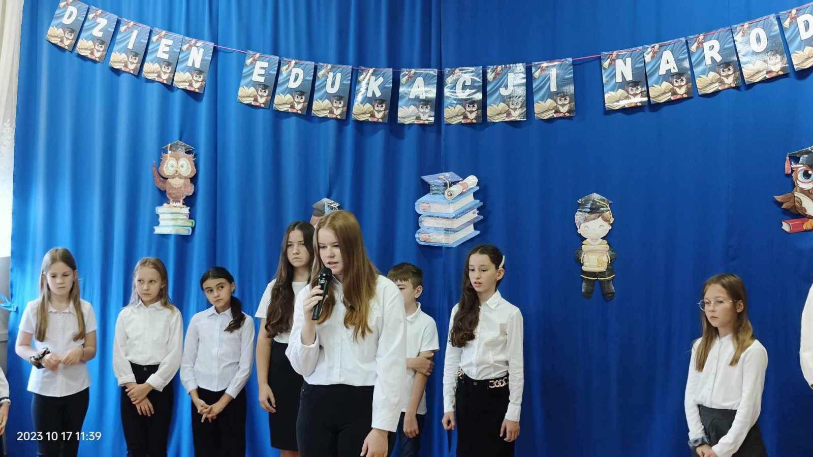 Z okazji Dnia Edukacji Narodowej odbył się występ klas IV-VII. 17 września uczniowie recytowali wiersze, śpiewali piosenki oraz przybliżyli wszystkim zebranym historię tego święta. Dzień Edukacji Narodowej to polskie święto oświaty i szkolnictwa wyższego ustanowione 27 kwietnia 1972 roku jako Dzień Nauczyciela. Od 1982 roku obchodzone jako Dzień Edukacji Narodowej. Święto upamiętnia powołanie Komisji Edukacji Narodowej w 1773 roku przez króla Stanisława Augusta Poniatowskiego. W tym roku obchodzimy równą 250. rocznicę tego wydarzenia. Po ogłoszeniu Dnia Edukacji Narodowej, w Polsce utworzono pierwsze ministerstwo oświaty publicznej w całej Europie. Zorganizowano trzystopniowe szkolnictwo – szkoły parafialne, szkoły powiatowe i dla najzdolniejszych uczniów – uniwersytety. Wówczas istniały dwa – w Krakowie oraz w Wilnie. W Polsce Dzień Edukacji Narodowej przypada na 14 października, natomiast od 1994 roku Światowy Dzień Edukacji obchodzony jest 5 października pod patronatem UNESCO w ponad 100 krajach.