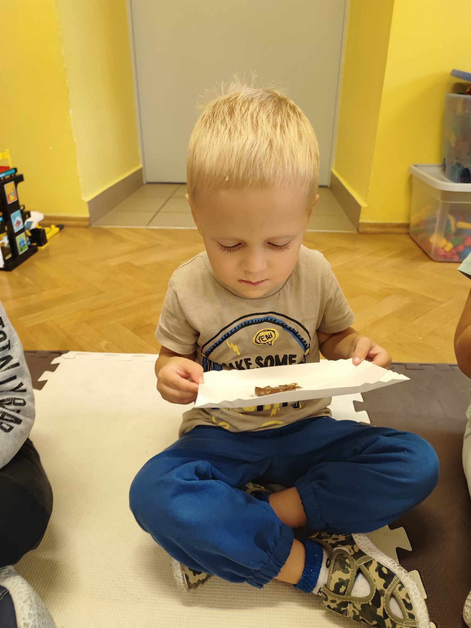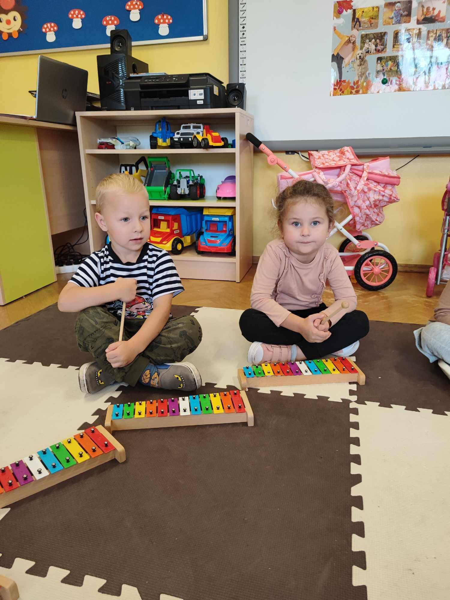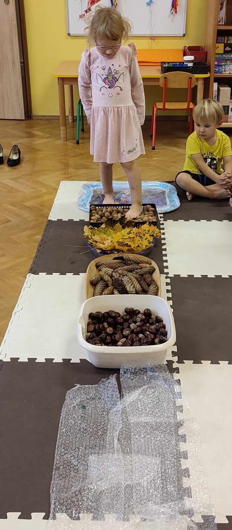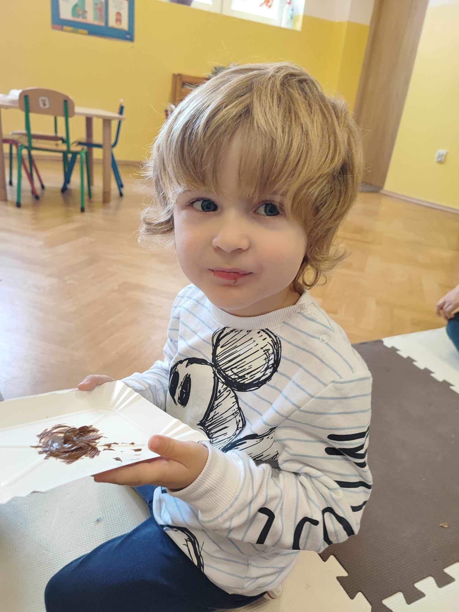 Mowa jest bardzo ważnym czynnikiem w regulacji stosunków człowieka z otoczeniem. Umiejętność sprawnego mówienia we współczesnym świecie jest niezwykle ważna. Na prawidłowy rozwój dziecka składa się nie tylko harmonijny rozwój fizyczny i psychiczny, lecz także odpowiedni rozwój mowy. W związku z nasilającym się zjawiskiem występowania wad wymowy wśród dzieci przedszkolnych powstał projekt „Słowo, dotyk i muzyka dla każdego smyka”. Jest to ogólnopolski projekt edukacyjny łączący zabawy logorytmiczne z zabawami sensorycznymi realizowany w oddziale przedszkolnym w grupie 3-4-latków. W ramach projektu przedszkolaki dostają co miesiąc zestaw zadań do zrealizowania. W październiku zadania wyglądały następująco: wykonanie jesiennej ścieżki sensorycznej, taniec z listkami do utworu „Coppelia walz”, zabawa z instrumentami do piosenki „Co przyniesie jesień”, a także ćwiczenia logopedyczne usprawniające pracę języka m.in. wylizywanie talerzyka z nutelli oraz zlizywanie nutelli z podniebienia. Zajęcia projektowe wspomagają edukację językową dzieci, usprawniają narząd mowy, ale też uwrażliwiają na estetykę muzyczną, na pojęcie rytmu i gestów muzycznych. Dzieci bardzo chętnie i aktywnie uczestniczą w zajęciach projektowych, z niecierpliwością czekamy na listopadowe zadania.