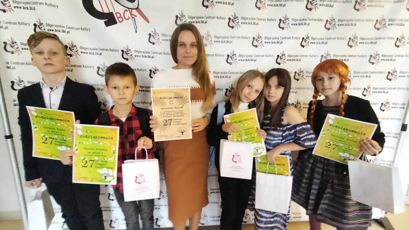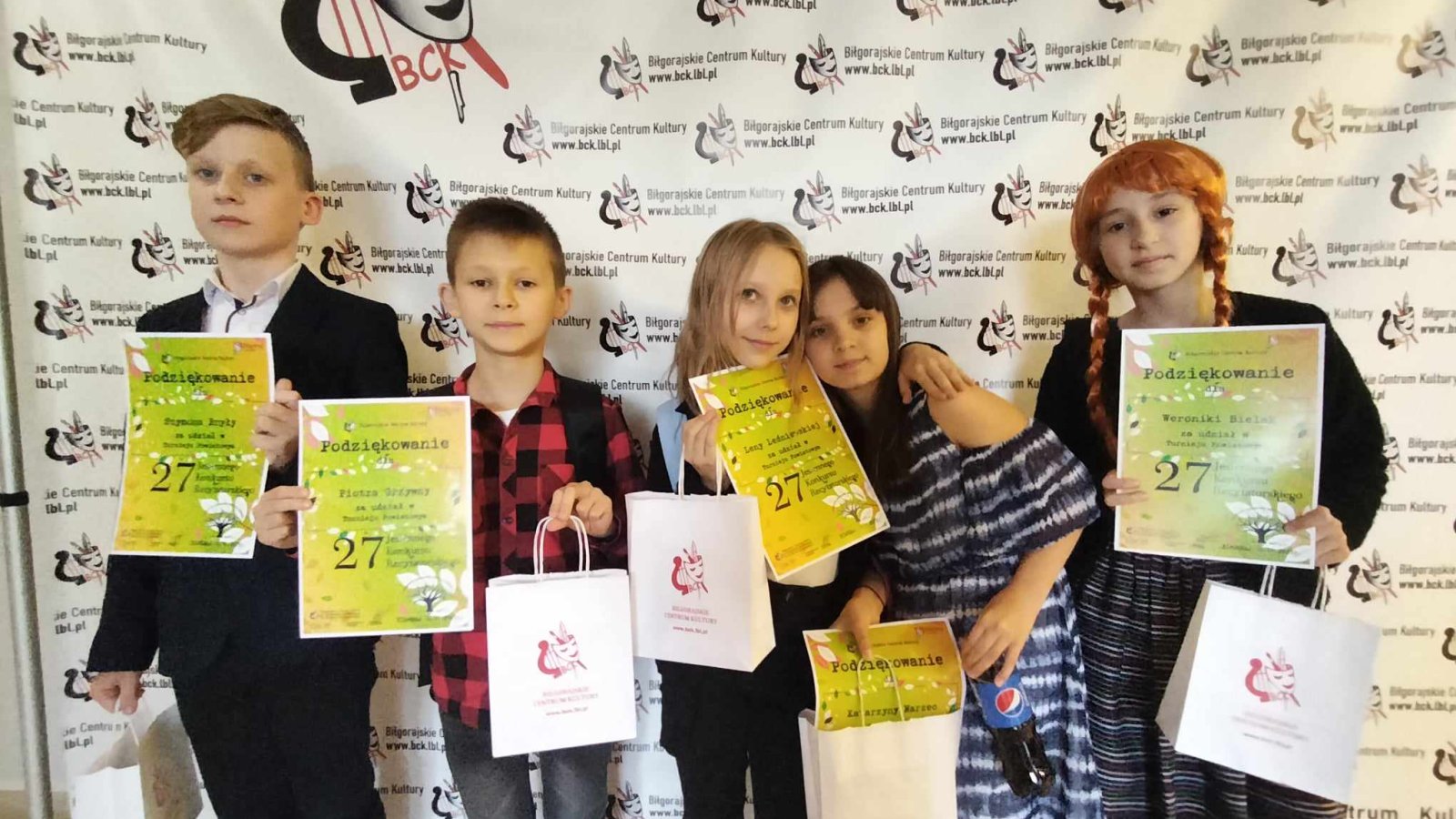 10 listopada w sali kameralnej Biłgorajskiego Centrum Kultury odbył się turniej powiatowy 27. Jesiennego Konkursu Recytatorskiego. Motywem przewodnim tej edycji stało się hasło: "Sny i marzenia", które stwarzało szerokie pole do interpretacji. W konkursie wystąpili uczniowie naszej szkoły: Katarzyna Marzec (kl. IV), Weronika Bielak (kl. IV), Lena Leśniewska (kl. V), Szymon Bryła (kl. VI) oraz Piotr Grzywna (VI). Wszyscy pięknie zaprezentowali przygotowane teksty literackie. Jury, po wysłuchaniu wszystkich uczestników, przyznało dwójce naszych uczniów wyróżniania. Otrzymali je: Weronika Bielak oraz Piotr Grzywna (warto zaznaczyć, że brał on udział w tym konkursie po raz trzeci i po raz trzeci został doceniony przez komisję oceniającą). Gratulujemy naszym recytatorom!