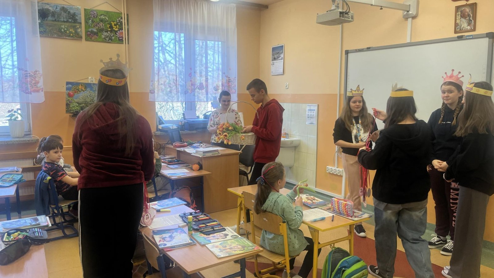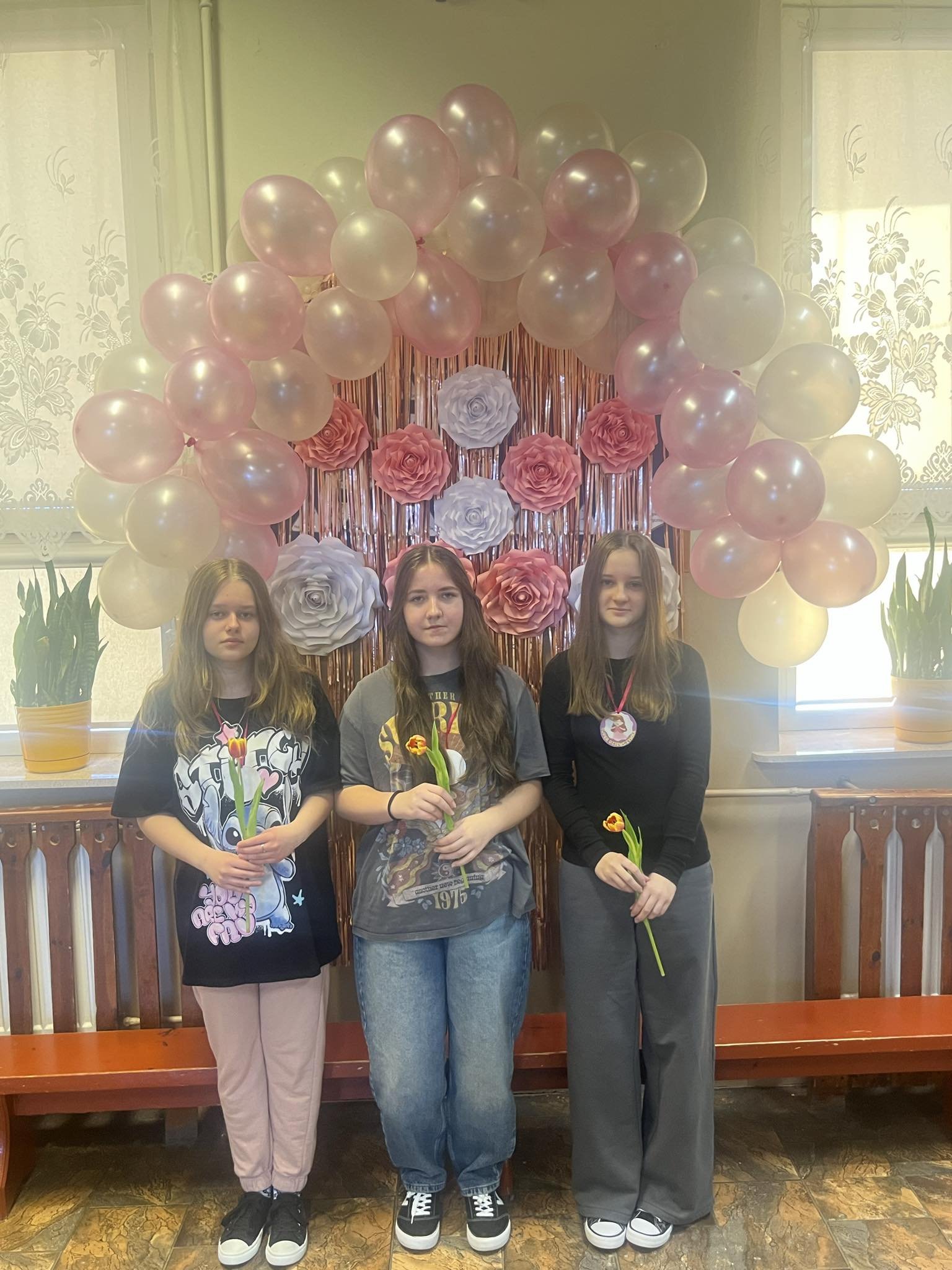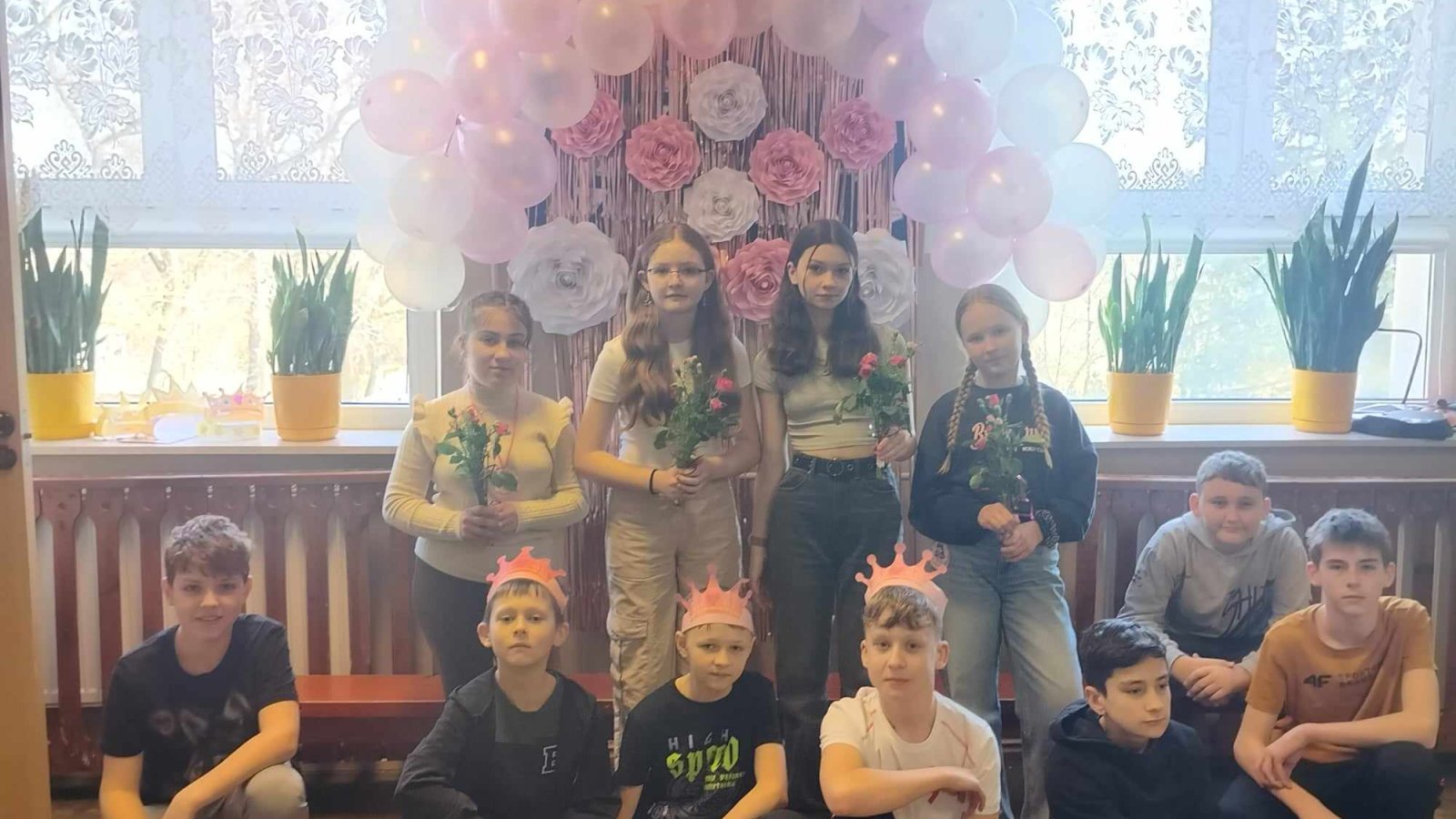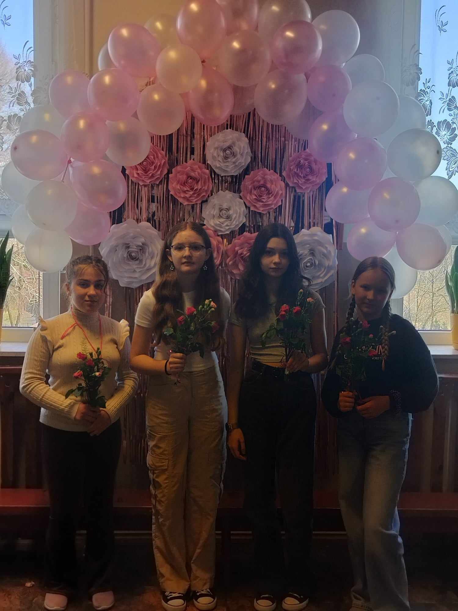 8 marca świętowaliśmy w naszej szkole Dzień Kobiet. Każda przedstawicielka płci pięknej mogła poczuć się tego dnia wyjątkowo. Chłopcy, jak co roku, pamiętali o życzeniach oraz prezentach dla swoich klasowych koleżanek. Z inicjatywy Samorządu Uczniowskiego również zostały przygotowane symboliczne upominki dla wszystkich kobiet. Nie zabrakło też innych atrakcji. Na szkolnym korytarzu pojawiła się piękna ścianka, na tle której można było robić sobie pamiątkowe fotografie.