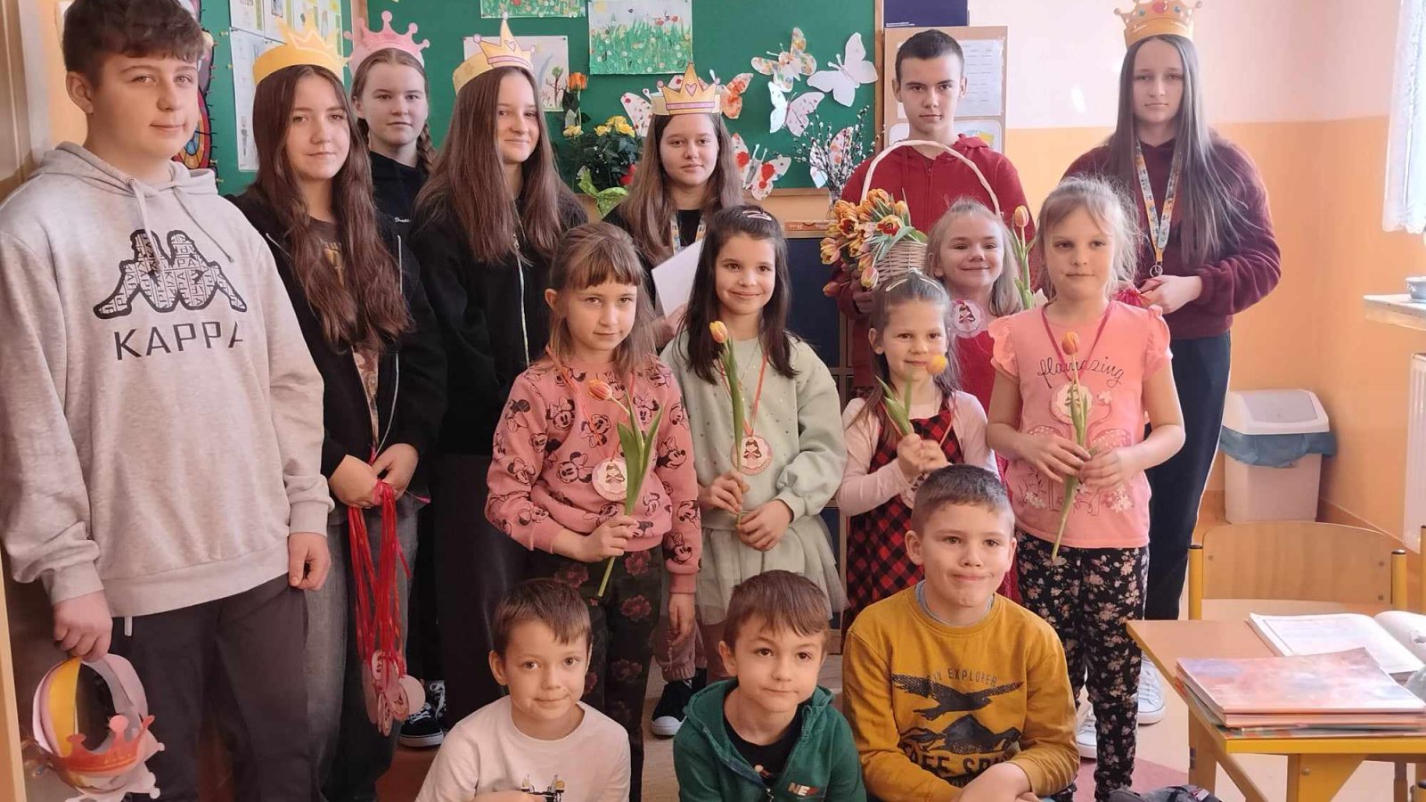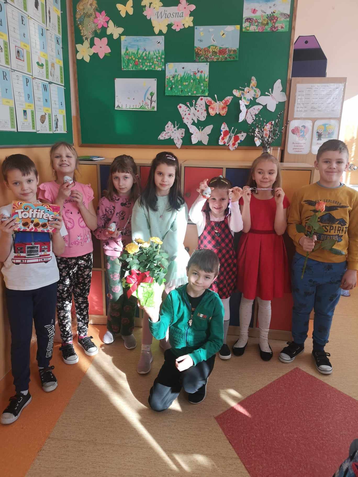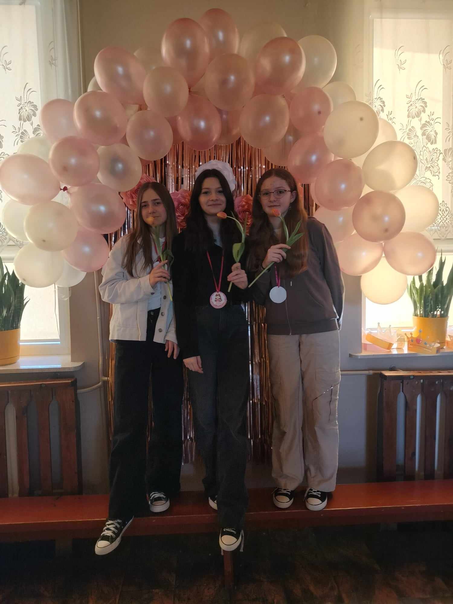 8 marca świętowaliśmy w naszej szkole Dzień Kobiet. Każda przedstawicielka płci pięknej mogła poczuć się tego dnia wyjątkowo. Chłopcy, jak co roku, pamiętali o życzeniach oraz prezentach dla swoich klasowych koleżanek. Z inicjatywy Samorządu Uczniowskiego również zostały przygotowane symboliczne upominki dla wszystkich kobiet. Nie zabrakło też innych atrakcji. Na szkolnym korytarzu pojawiła się piękna ścianka, na tle której można było robić sobie pamiątkowe fotografie.