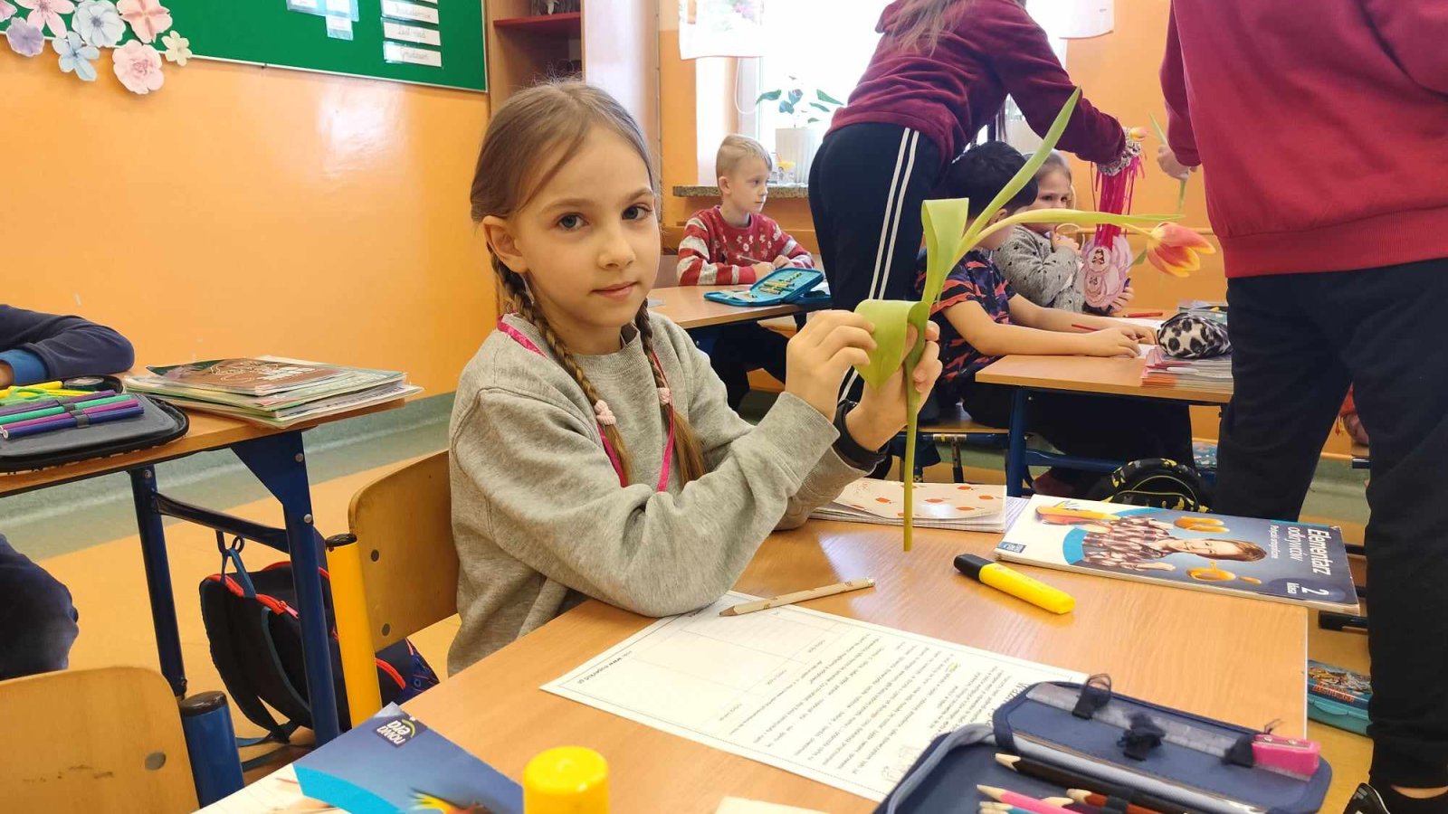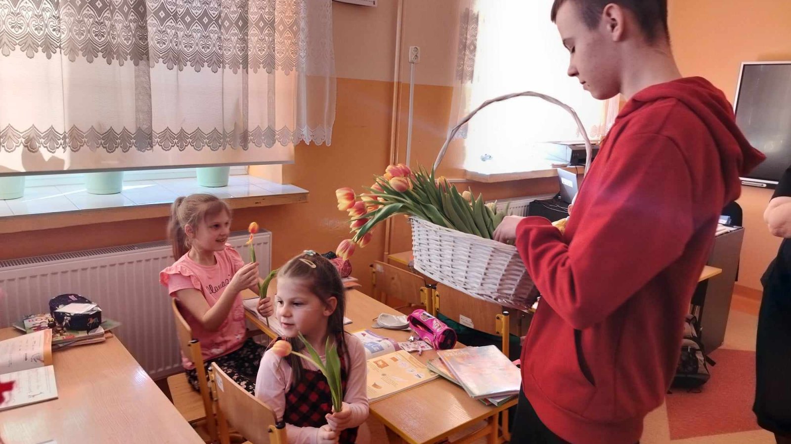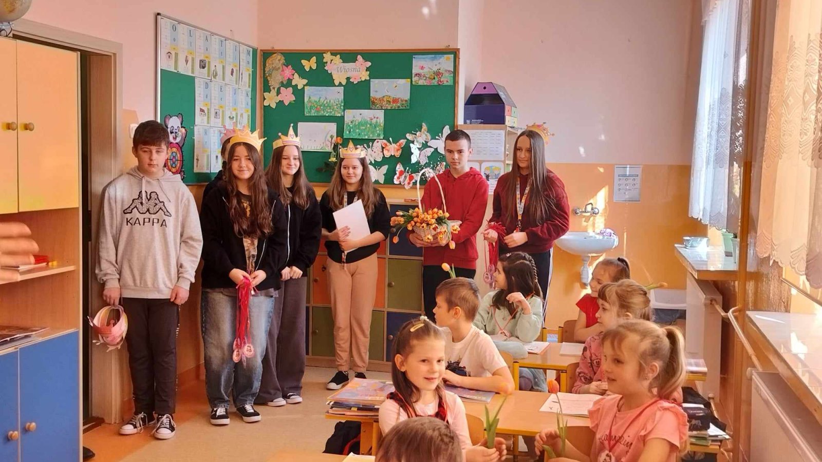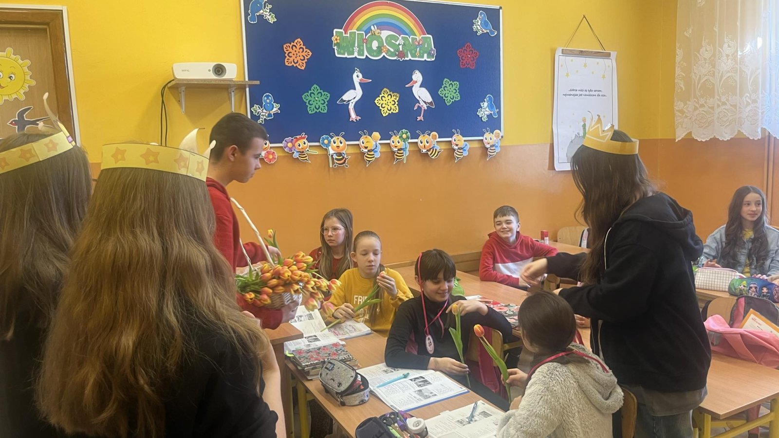 8 marca świętowaliśmy w naszej szkole Dzień Kobiet. Każda przedstawicielka płci pięknej mogła poczuć się tego dnia wyjątkowo. Chłopcy, jak co roku, pamiętali o życzeniach oraz prezentach dla swoich klasowych koleżanek. Z inicjatywy Samorządu Uczniowskiego również zostały przygotowane symboliczne upominki dla wszystkich kobiet. Nie zabrakło też innych atrakcji. Na szkolnym korytarzu pojawiła się piękna ścianka, na tle której można było robić sobie pamiątkowe fotografie.