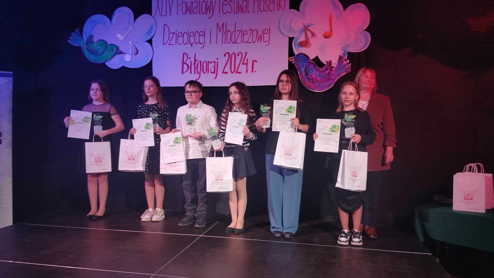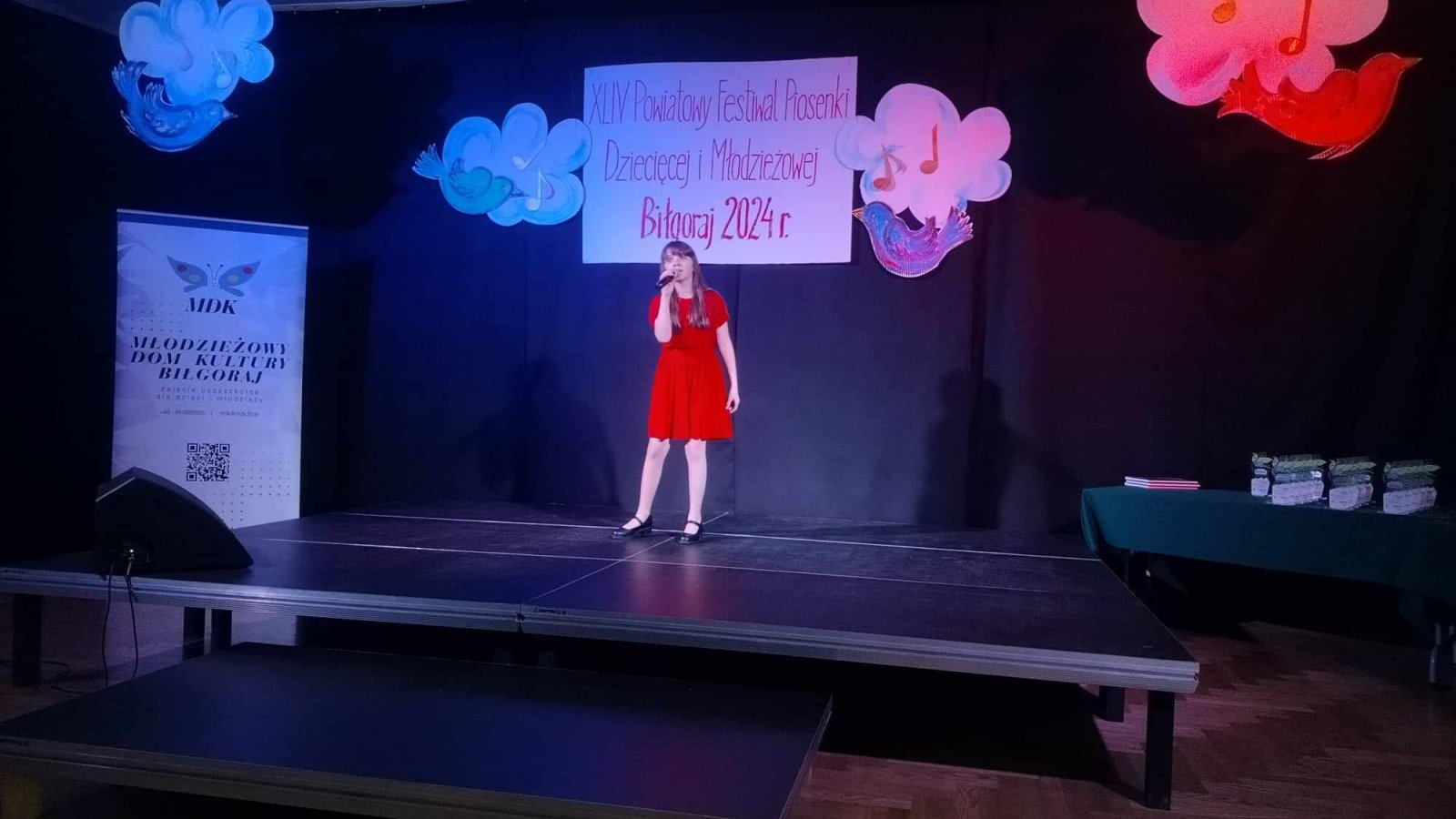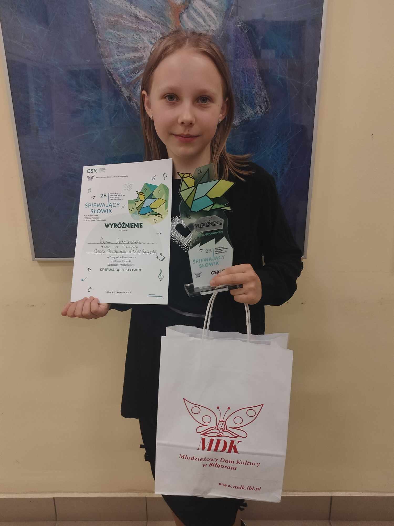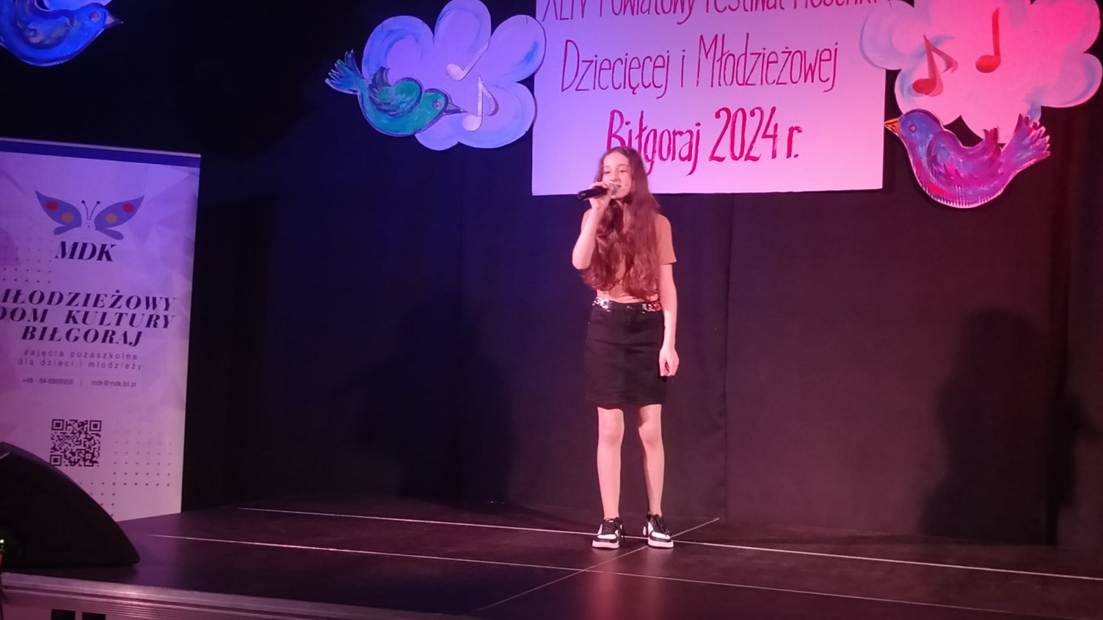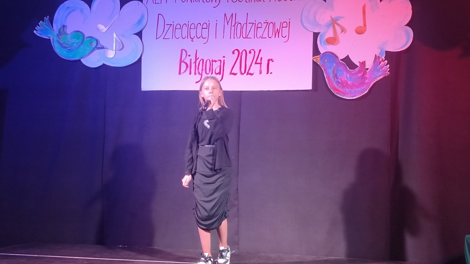Dziewczęta pięknie zaprezentowały na scenie przygotowane utwory rozrywkowe. Okazało się, że Lena Leśniewska znalazła się w gronie zwycięzców, zdobywając wyróżnienie w swojej kategorii wiekowej. Bardzo cieszy nas ten sukces, ponieważ poziom prezentacji wszystkich wokalistów był naprawdę wysoki.