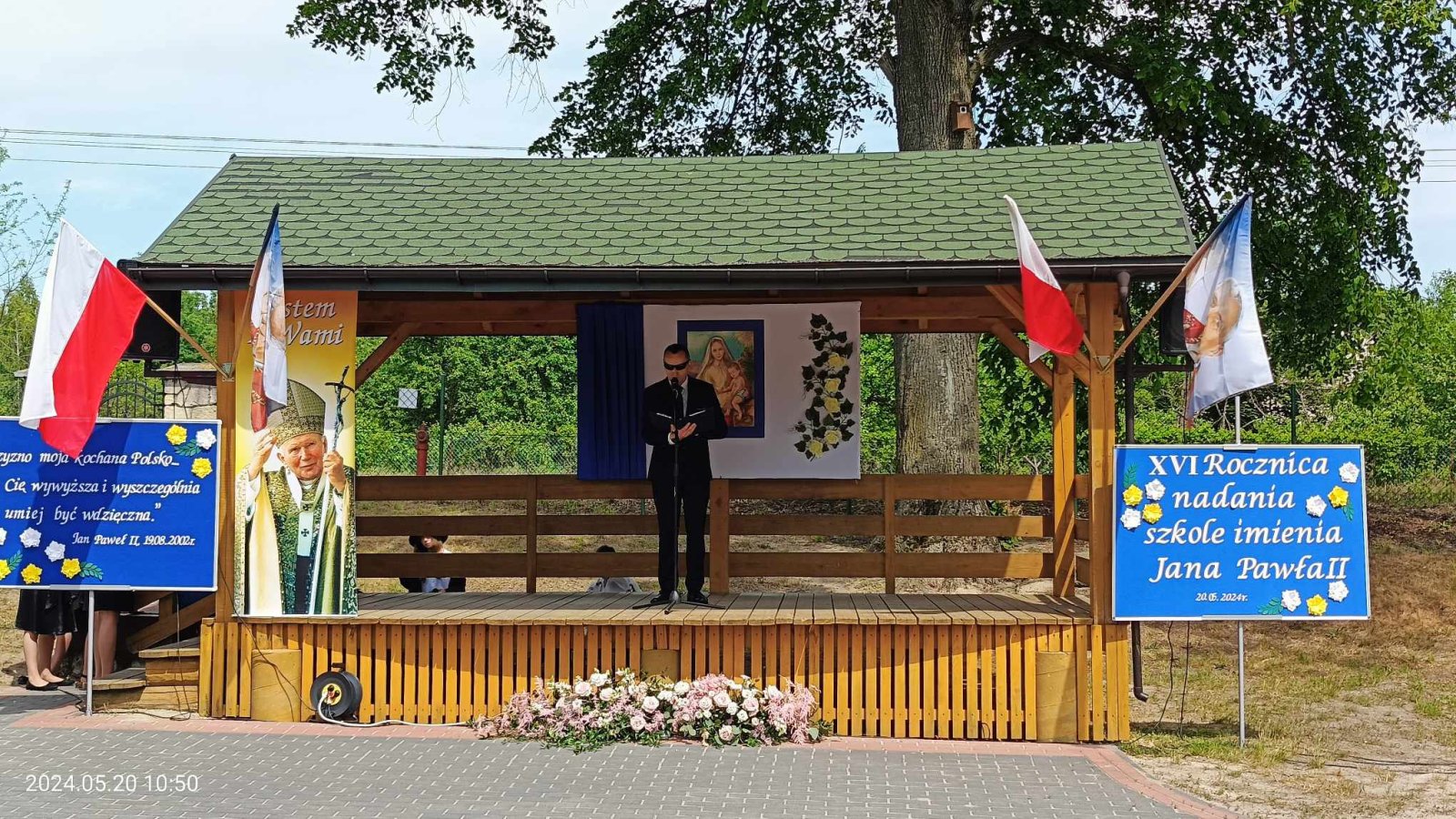 W poniedziałek 20 maja odbyły się uroczystości z okazji XVI rocznicy nadania naszej szkole imienia Jana Pawła II. Jak co roku swą obecnością zaszczycili nas zaproszeni goście: