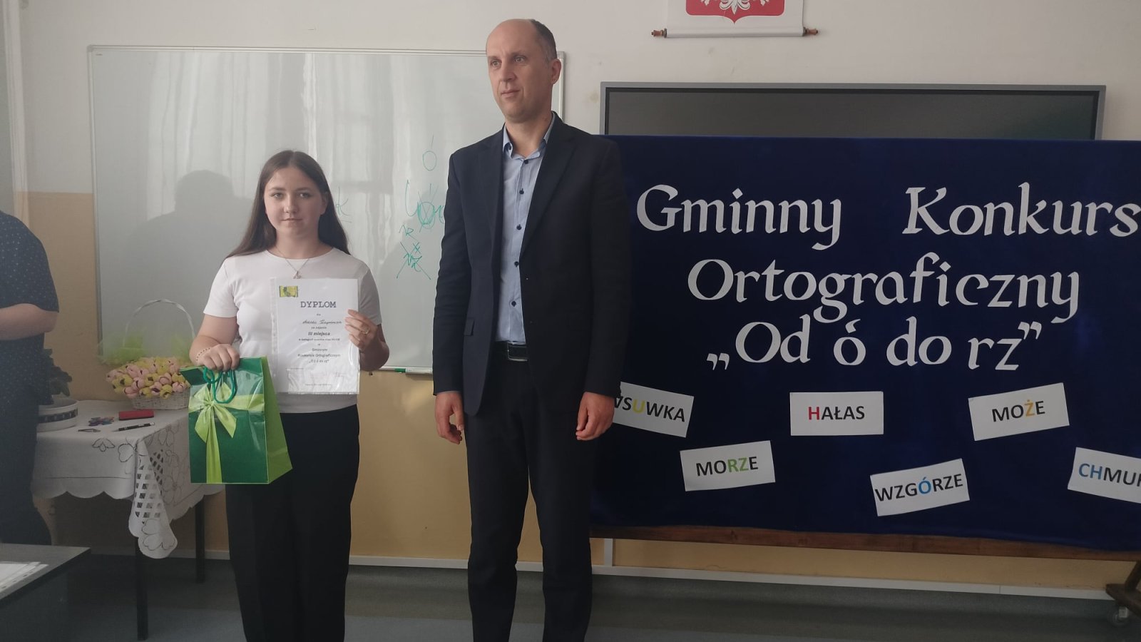 W środę 29 maja w Szkole Podstawowej im. Józefa Piłsudskiego we Frampolu odbył się I Gminny Konkurs Ortograficzny "Od ó do rz" adresowany do uczniów klas IV-VIII. Dzieci rywalizowały ze sobą w dwóch kategoriach wiekowych (klasy IV-VI oraz klasy VII-VIII). Naszą szkołę reprezentowali: Weronika Bielak (kl. IV), Marcelina Brzozowska (kl. V), Piotr Grzywna (kl. VI) i Natalia Kapuśniak (kl. VII). Uczestnicy musieli wykazać się bardzo dobrą znajomością zasad ortograficznych, a także umiejętnością bezbłędnego pisania ortograficznego i interpunkcyjnego. Po sprawdzeniu prac i podliczeniu punktów okazało się, że Natalia Kapuśniak zajęła III miejsce w swojej kategorii wiekowej. Podczas oficjalnego podsumowania wydarzenia laureaci otrzymali dyplomy oraz nagrody rzeczowe. Dziękujemy wszystkim za udział w konkursie. Gratulujemy Natalce sukcesu!