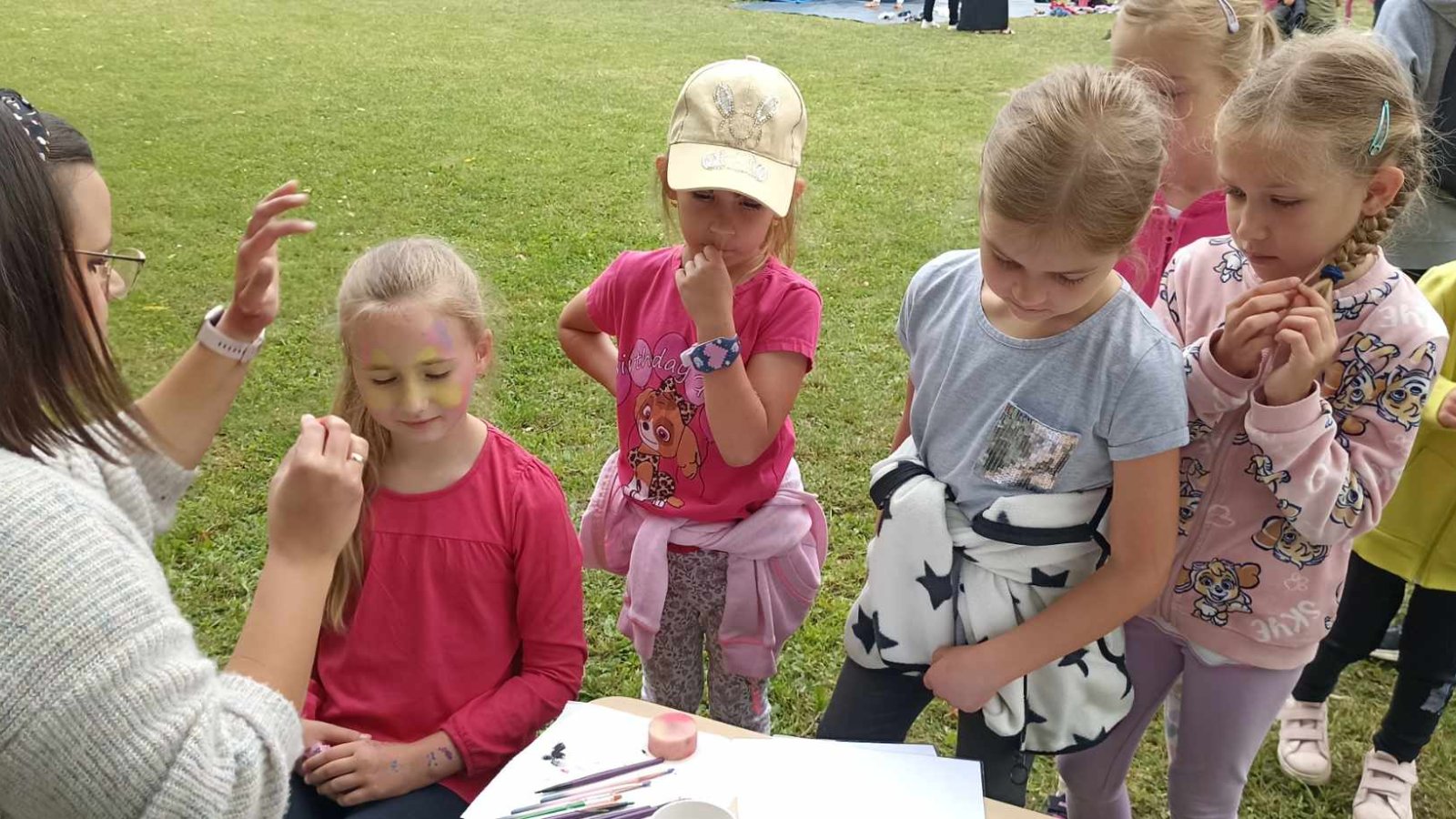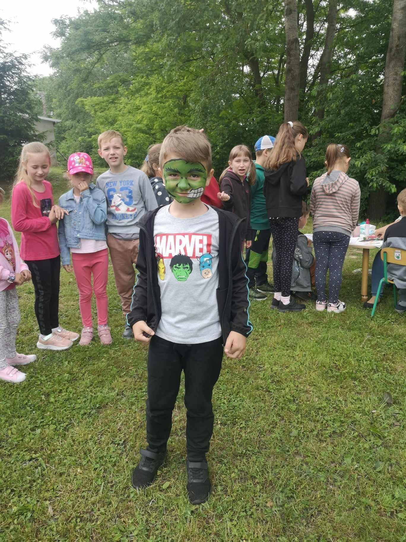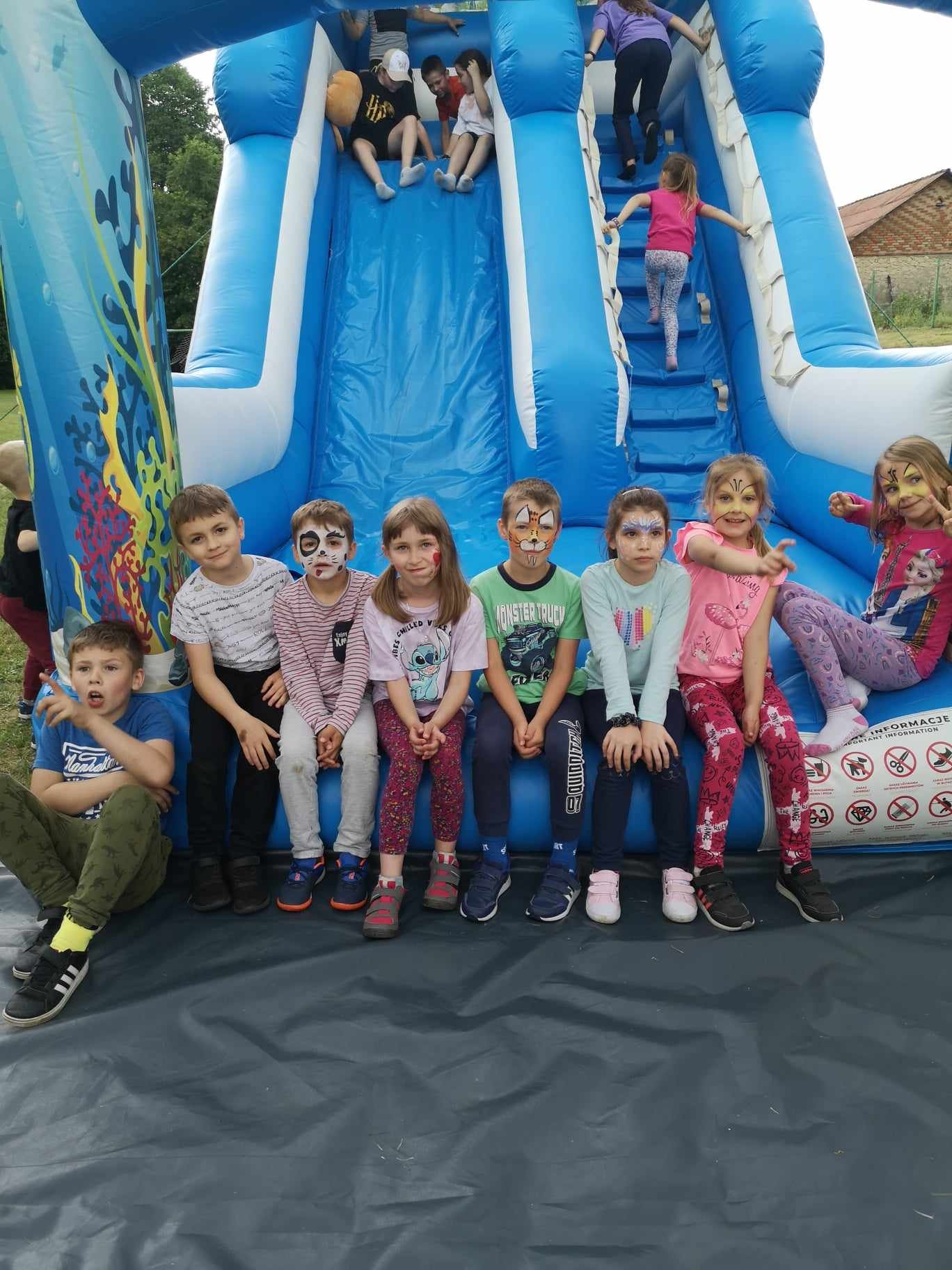 Obchody tego wyjątkowego święta rozpoczęły się od życzeń Pana Dyrektora skierowanych do naszych uczniów, począwszy od najmłodszych przedszkolaków, aż po najstarszych siódmoklasistów. Następnie wszyscy udali się wspólnie na boisko przy szkole, gdzie przygotowane było już mnóstwo atrakcji. Wspólna zabawa była znakomitą odskocznią od szkolnych obowiązków. Dmuchana zjeżdżalnia, zabawa przy muzyce, rozgrywki sportowe, kiełbaska z grilla, malowanie twarzy i piknik w cieniu drzew - to wszystko czekało na dzieci podczas ich święta.