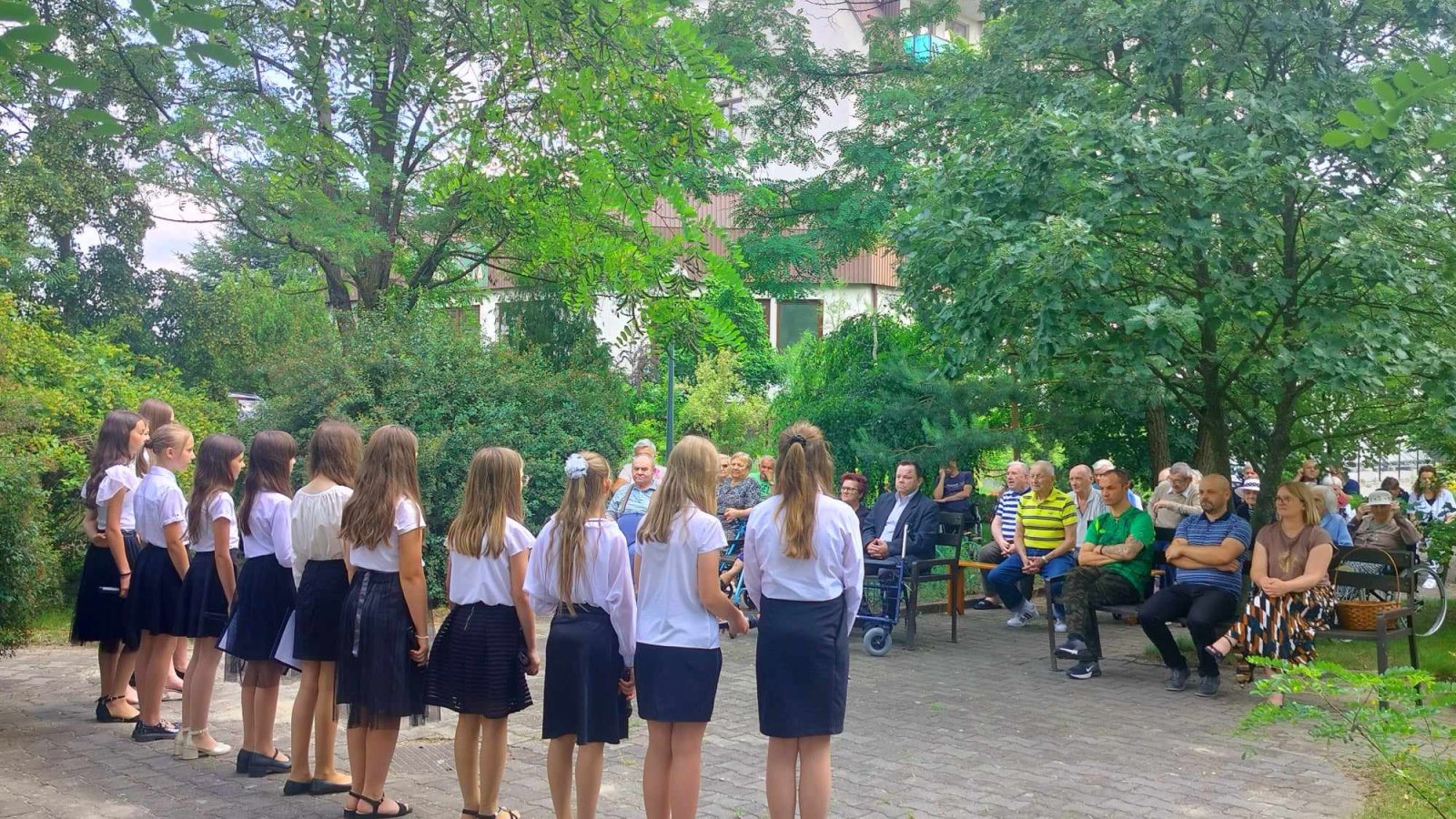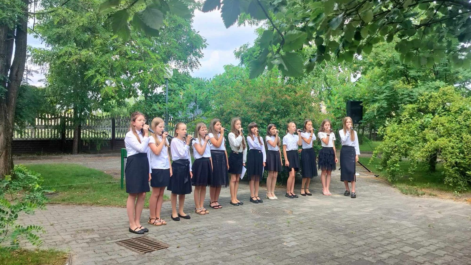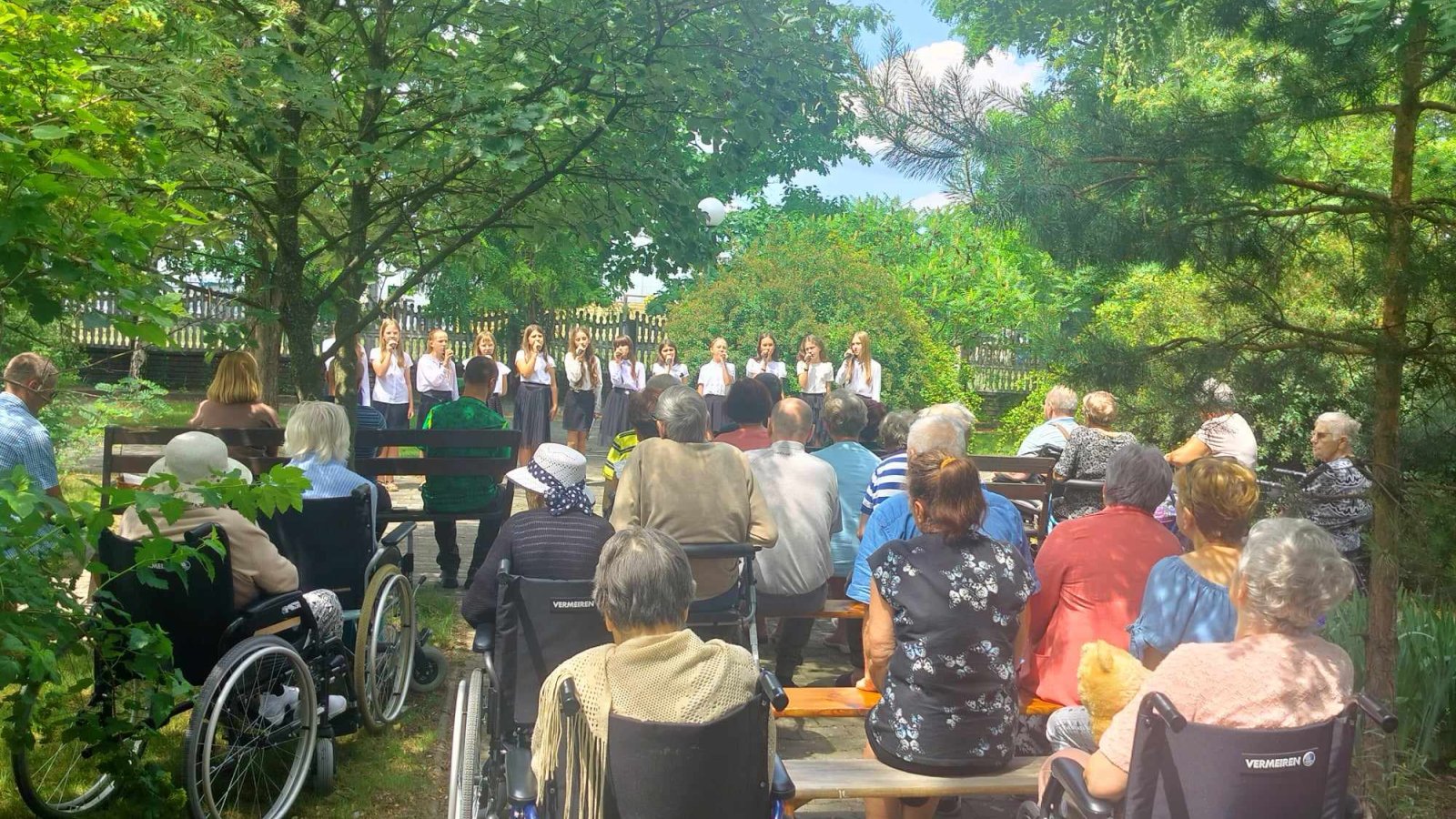 Nasz szkolny chórek udał się dziś (tj. we wtorek 11 czerwca) z wizytą do Domu Pomocy Społecznej dla Kombatantów w Biłgoraju. Dziewczęta zaprezentowały zgromadzonym na placu seniorom oraz dyrekcji i pracownikom placówki piosenki religijne związane z patronem naszej szkoły - Janem Pawłem II. Nie zabrakło m.in. znanego utworu "Moje miasto Wadowice" czy ukochanej przez Ojca Świętego "Barki". Oprócz tego uczennice skierowały do zebranych kilka słów na temat Papieża Polaka, zaznaczając, jak wielkim powodem do dumy jest mieć takiego patrona.
