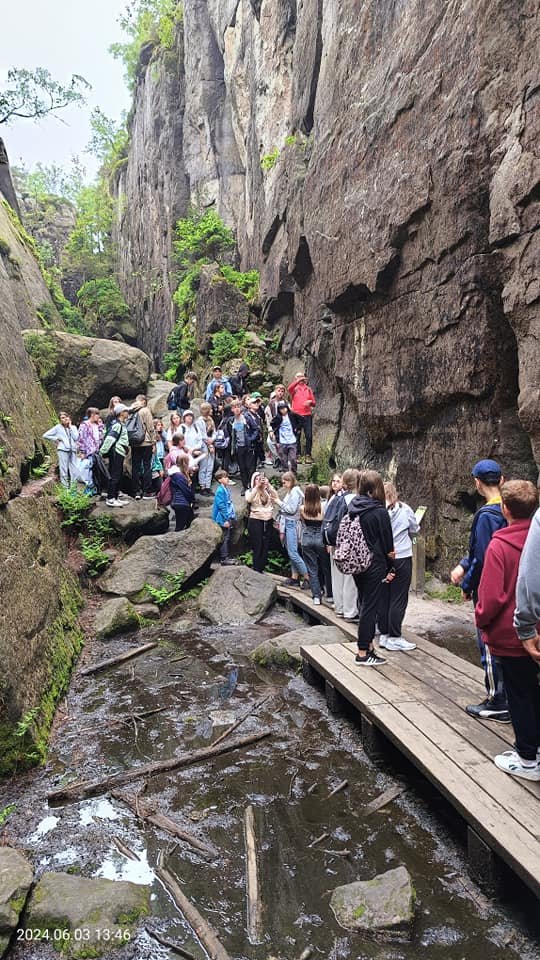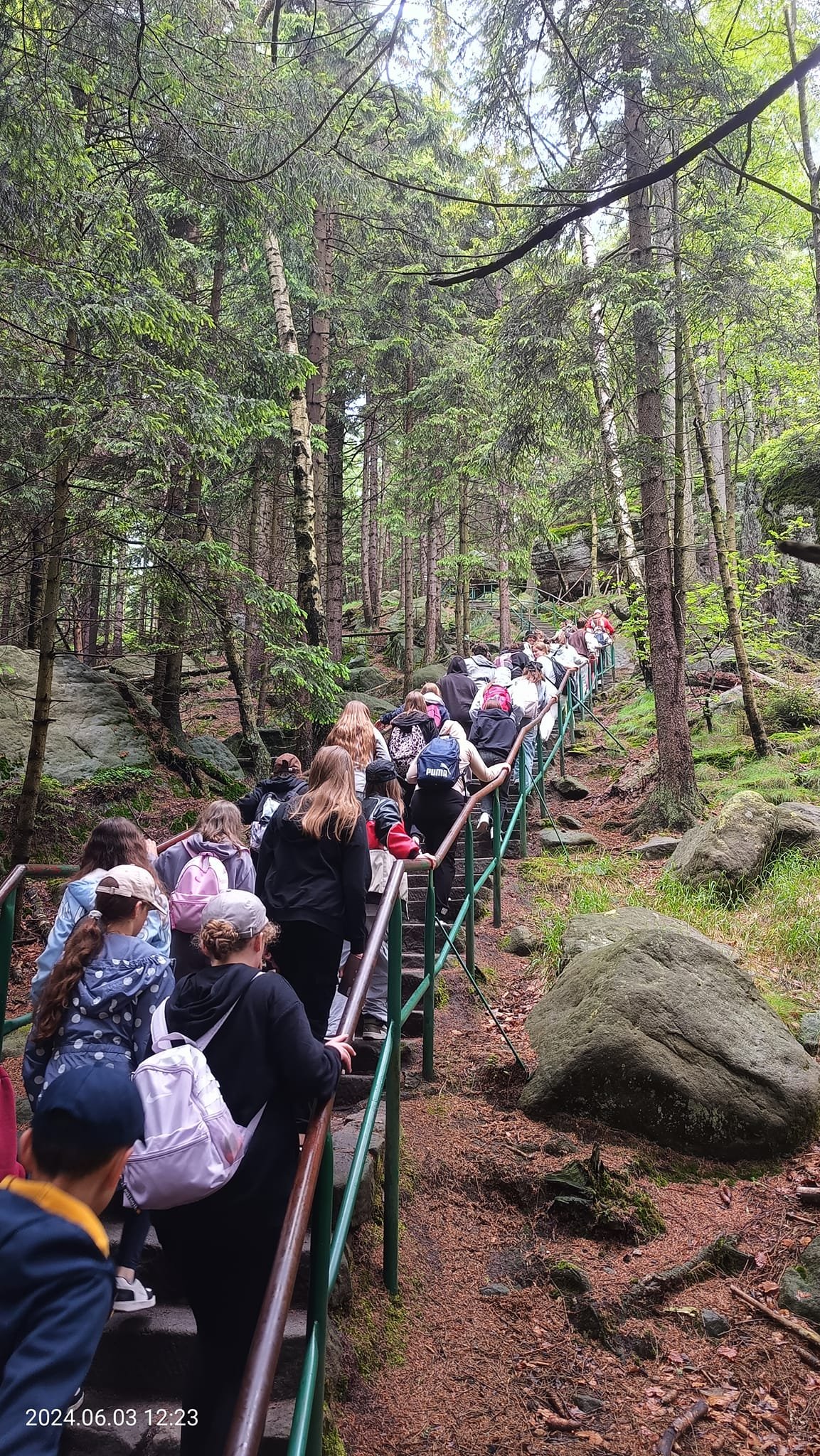 Po wielu dniach niecierpliwego oczekiwania w końcu nadszedł ten upragniony moment! W nocy z 2 na 3 czerwca wraz z kolegami i koleżankami ze Szkoły Podstawowej im. św. Stanisława Kostki w Teodorówce wyjechaliśmy (uczniowie klas IV-VII z opiekunami) na trzydniową wycieczkę. W programie zostały przewidziane przeróżne atrakcje, a także mnóstwo ciekawych miejsc do odwiedzenia. Jak upłynął nam pierwszy dzień wyprawy? O północy wszyscy zgromadziliśmy się przed budynkiem szkoły. Po kilku niezbędnych czynnościach organizacyjnych wyruszyliśmy w drogę. Czekała nas długa, niespełna dziewięciogodzinna podróż autokarem. Nie było jednak mowy o nudzie. Dzieci w bardzo twórczy sposób potrafiły zorganizować sobie czas. Przejazd pozwolił także na zapoznanie i integrację uczniów z różnych szkół. Wreszcie dotarliśmy do celu. W Parku Narodowym Gór Stołowych spotkaliśmy się z przewodnikiem, po czym rozpoczęliśmy niezapomnianą wędrówkę na Szczeliniec Wielki - najwyższy szczyt Gór Stołowych. Roztaczające się przed nami widoki były wzrost nie do opisania, a sprzyjająca pogoda tylko potęgowała radosny nastrój udzielający się uczestnikom wycieczki. Nasz pobyt w tym miejscu zakończył ekscytujący spacer po Błędnych Skałach przypominających malowniczy labirynt. Następnie udaliśmy się do Kaplicy Czaszek w Czermnej, a później do Parku Zdrojowego w Kudowie-Zdroju. Tam również z zaciekawieniem przyswajaliśmy nową wiedzę przekazywaną przez przewodnika oraz chętnie oglądaliśmy nieznane dotychczas miejsca. Pełni entuzjazmu, a jednocześnie nieco zmęczeni przez natłok wrażeń, pojechaliśmy do hotelu w Dusznikach-Zdroju. Po zakwaterowaniu oraz obiadokolacji przyszedł czas na odpoczynek. Mogliśmy zrelaksować się m.in. korzystając ze strefy relaksu Wellness & Spa WERONA. Do naszej dyspozycji były: sauna, basen czy jacuzzi.