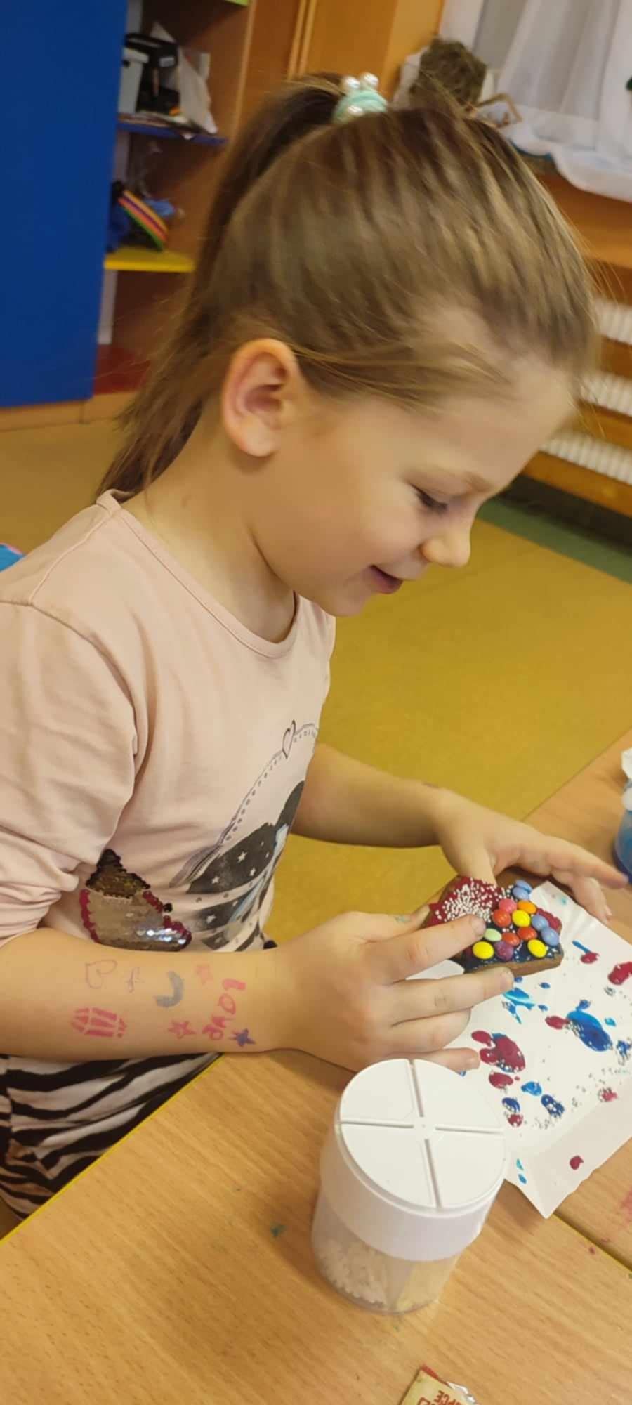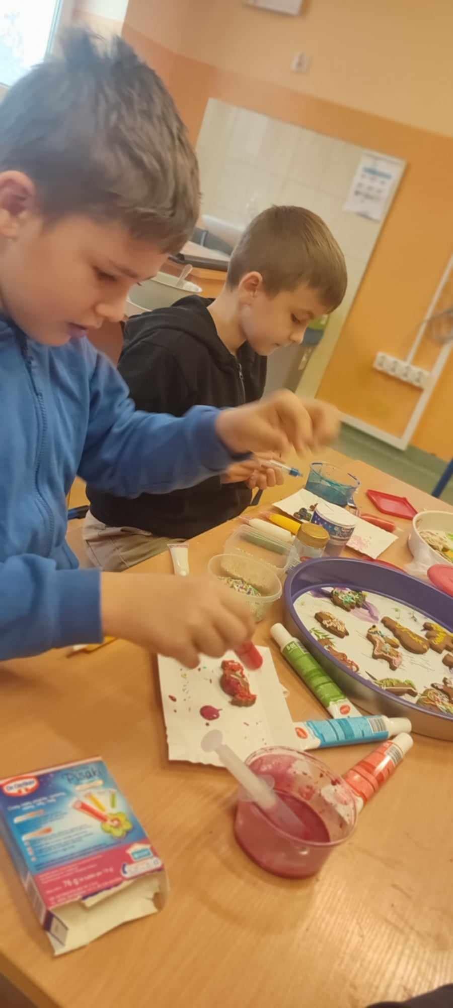 Zbliżające się Święta Bożego Narodzenia nastrajają nas wszystkich do różnorodnych przygotowań przedświątecznych. Z tej okazji 11 grudnia w klasie II odbyły się warsztaty kulinarne, na których dzieci dekorowały pierniczki. Zajęcia rozpoczęły się od zrobienia tradycyjnego lukru. Następnie wszyscy z radością zabrali się do dekorowania pierniczków, upieczonych przez mamy naszych drugoklasistów. Była to doskonała okazja, aby wykazać się inwencją twórczą i przyozdobić ciasteczko według własnego pomysłu. Warsztaty sprawiły uczniom wiele radości oraz wzmocniły koleżeńskie relacje.