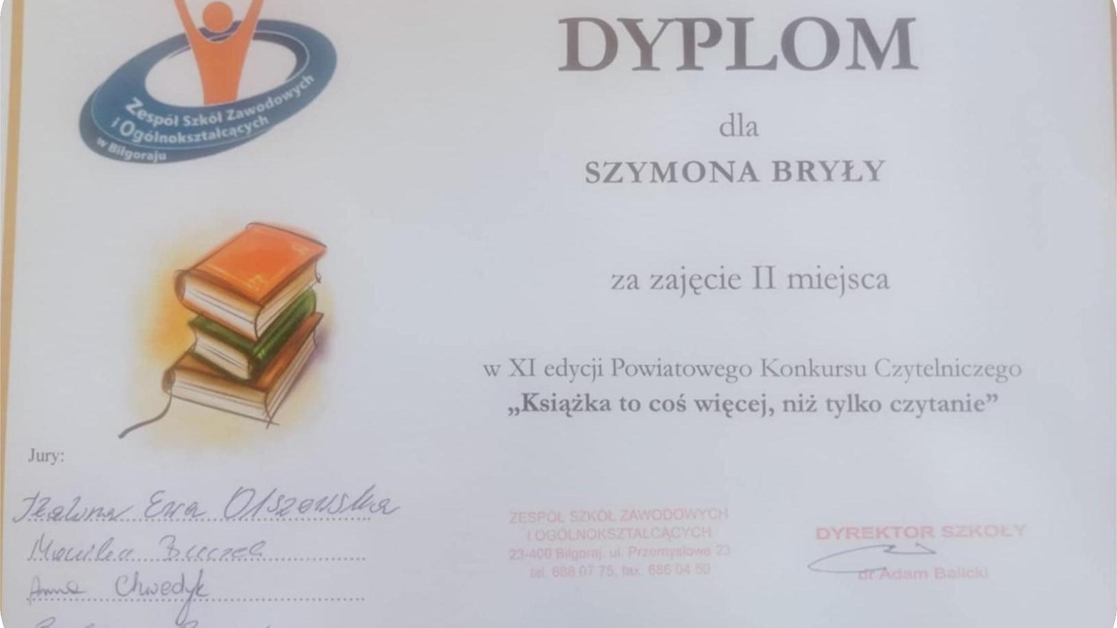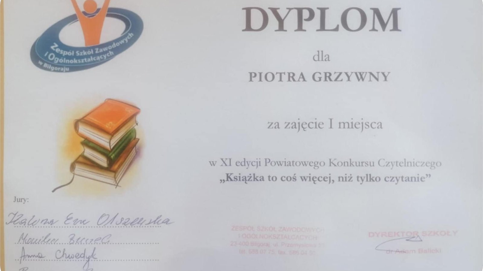 W piątek 13 grudnia w Zespole Szkół Zawodowych i Ogólnokształcących w Biłgoraju odbyło się uroczyste podsumowanie XI edycji Powiatowego Konkursu Czytelniczego "Książka to coś więcej, niż tylko czytanie", adresowanego do uczniów klas VII-VIII z powiatu biłgorajskiego. Głównym celem przedsięwzięcia stała się popularyzacja czytelnictwa, a także doskonalenie umiejętności autoprezentacji.