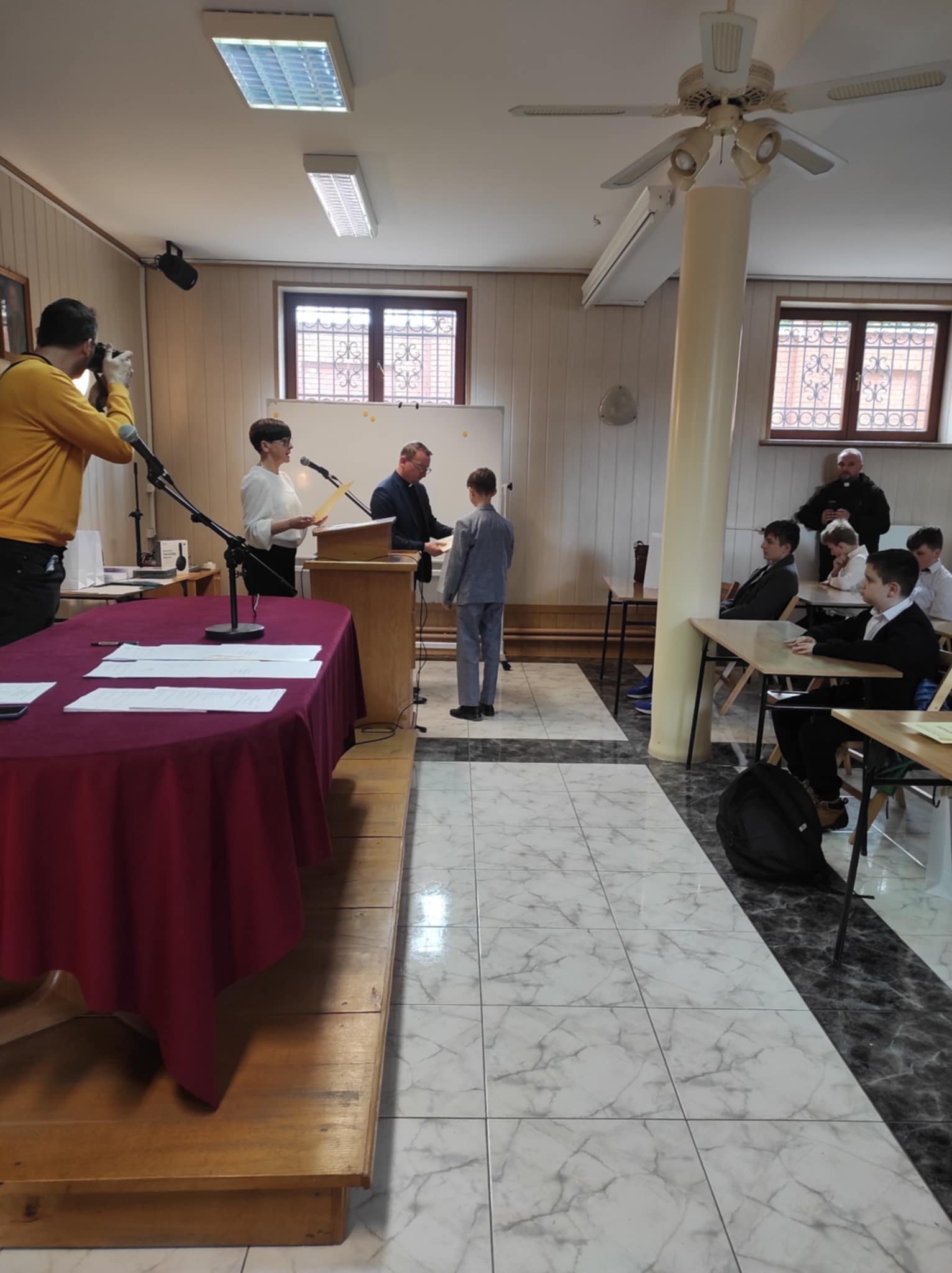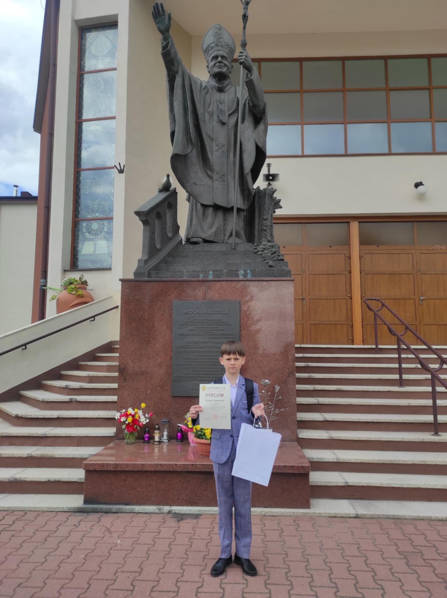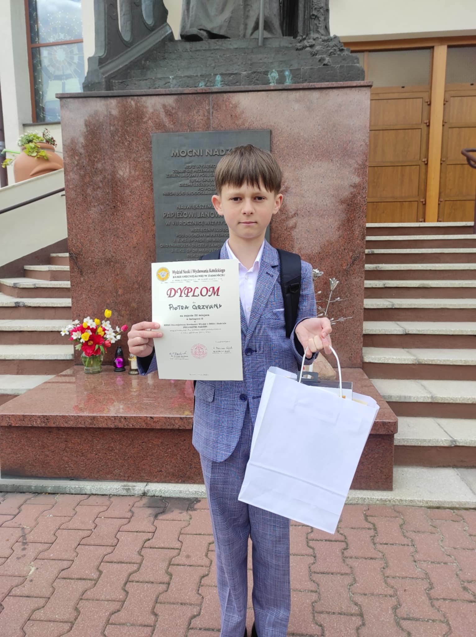 7 maja odbył się etap finałowy XXXII Diecezjalnego Konkursu Wiedzy o Biblii i Kościele. Do etapu diecezjalnego zakwalifikowało się 38 uczniów z dwóch kategorii wiekowych. Uczniowie przystąpili do testu wiedzy, który pozwolił wyłonić zwycięzców konkursu. W gronie laureatów w kategorii klas VII-VIII znalazł się uczeń naszej szkoły Piotr Grzywna z kl. VII, który wykazał się ogromną wiedzą zdobywając trzecie miejsce. Wszyscy finaliści oraz katecheci otrzymali podziękowania i upominki, a laureaci cenne nagrody rzeczowe.