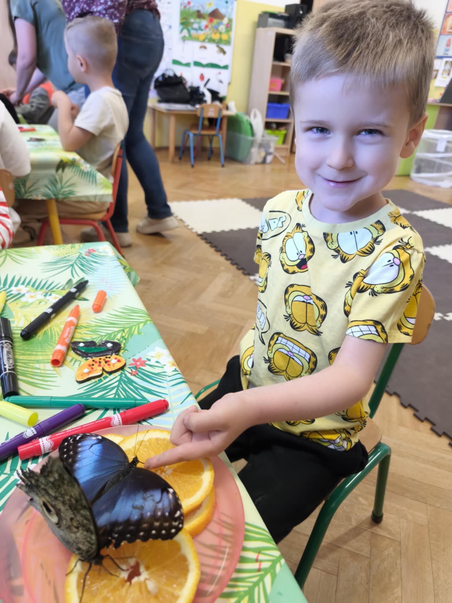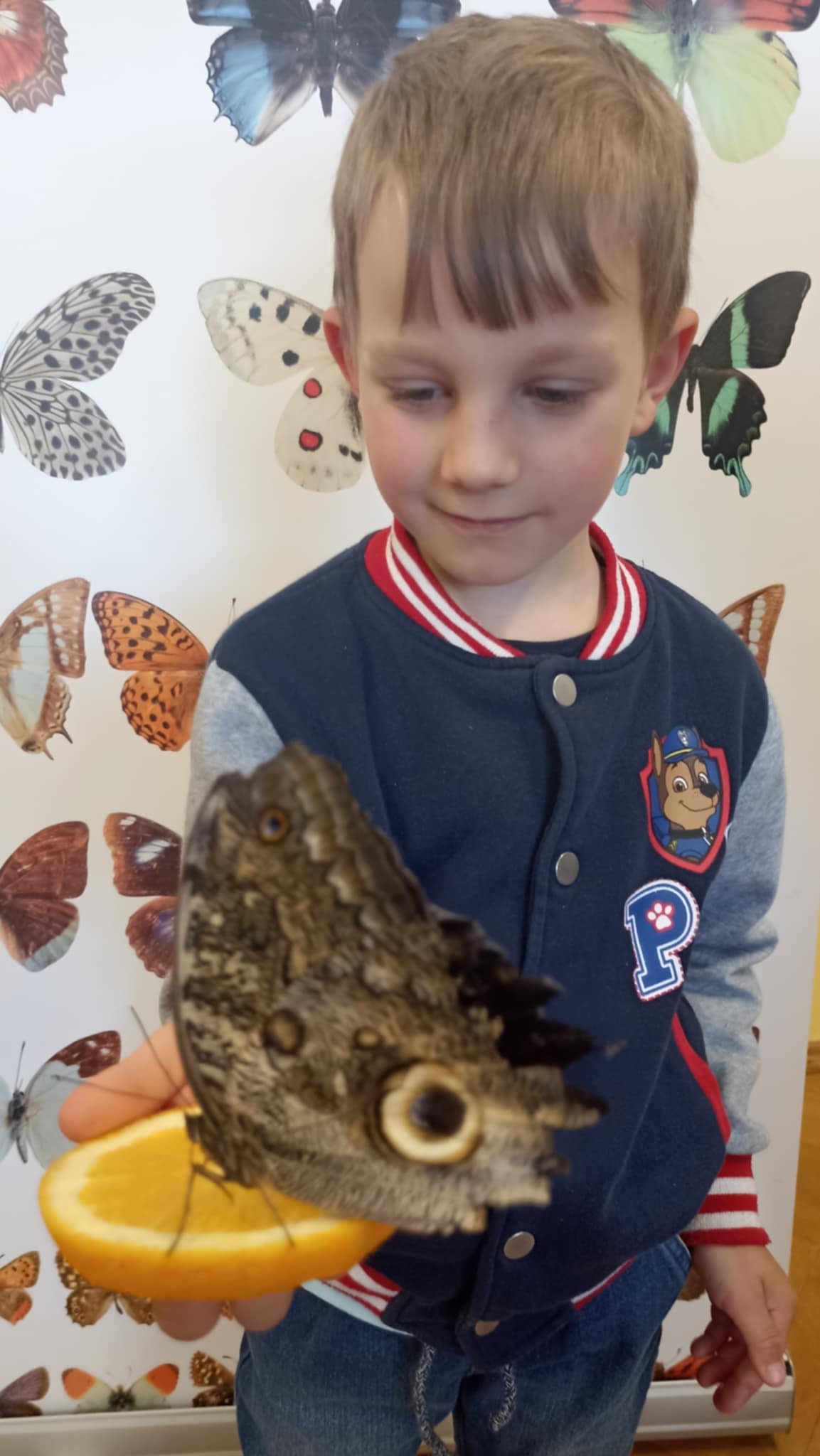 26 maja do naszej szkoły zawitały piękne, egzotyczne motyle z Motylarni w Lublinie. W warsztatach edukacyjno-przyrodniczych wzięły udział przedszkolaki oraz uczniowie klas I-III. Dzieci poznały wiele ciekawostek na temat życia motyli. Mogły dotykać poczwarek, czy kokonów, a także karmić motyle ulubionymi przysmakami. Największą atrakcją były żywe okazy, które latały wokół dzieci. Na koniec warsztatów każdy uczestnik wykonał swojego drewnianego motyla.