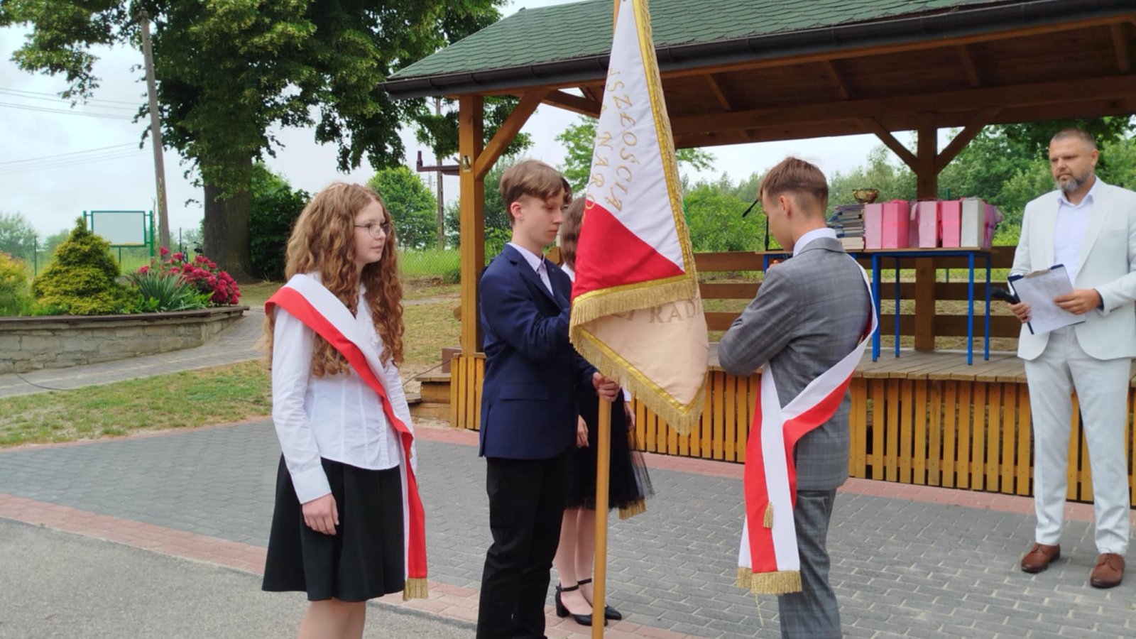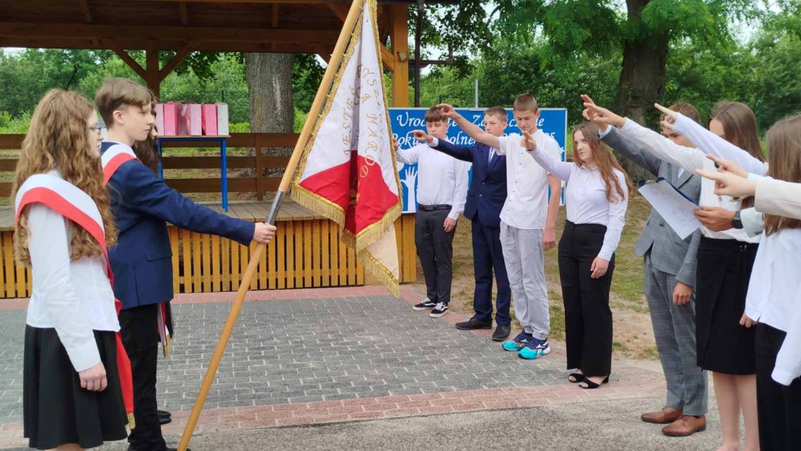 Kolejnym punktem uroczystości było przekazanie sztandaru szkoły pocztowi sztandarowemu z klasy VII oraz ślubowanie uczniów klasy VIII.