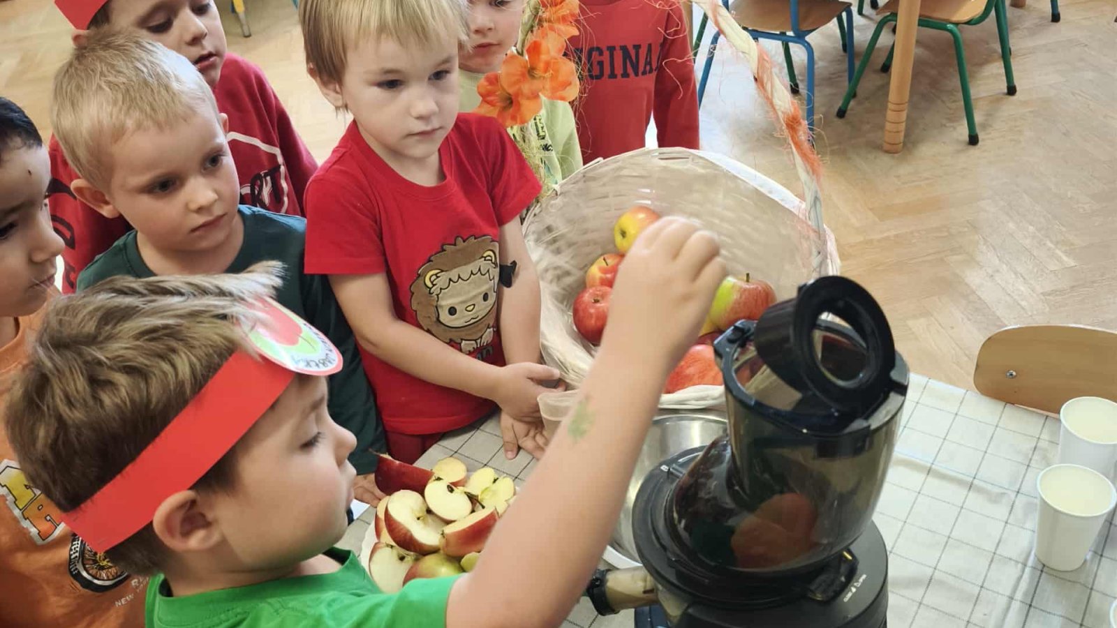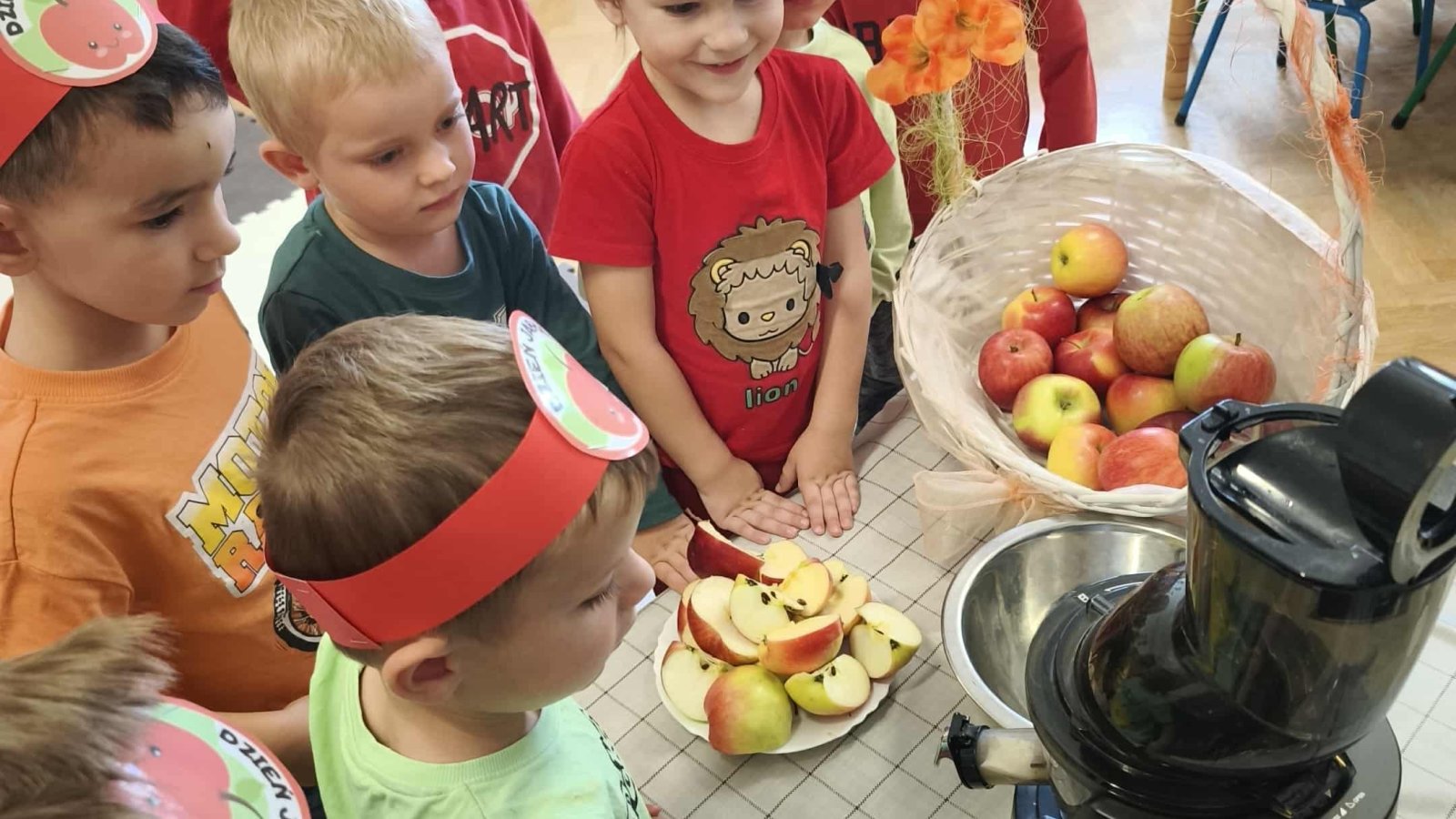 W ubiegłym tygodniu grupa 3-4-latków obchodziła Dzień Jabłka. Dzieci zamieniły świeże, pachnące jabłka w pyszny, zdrowy sok. Było dużo radości, nauki i… witamin!