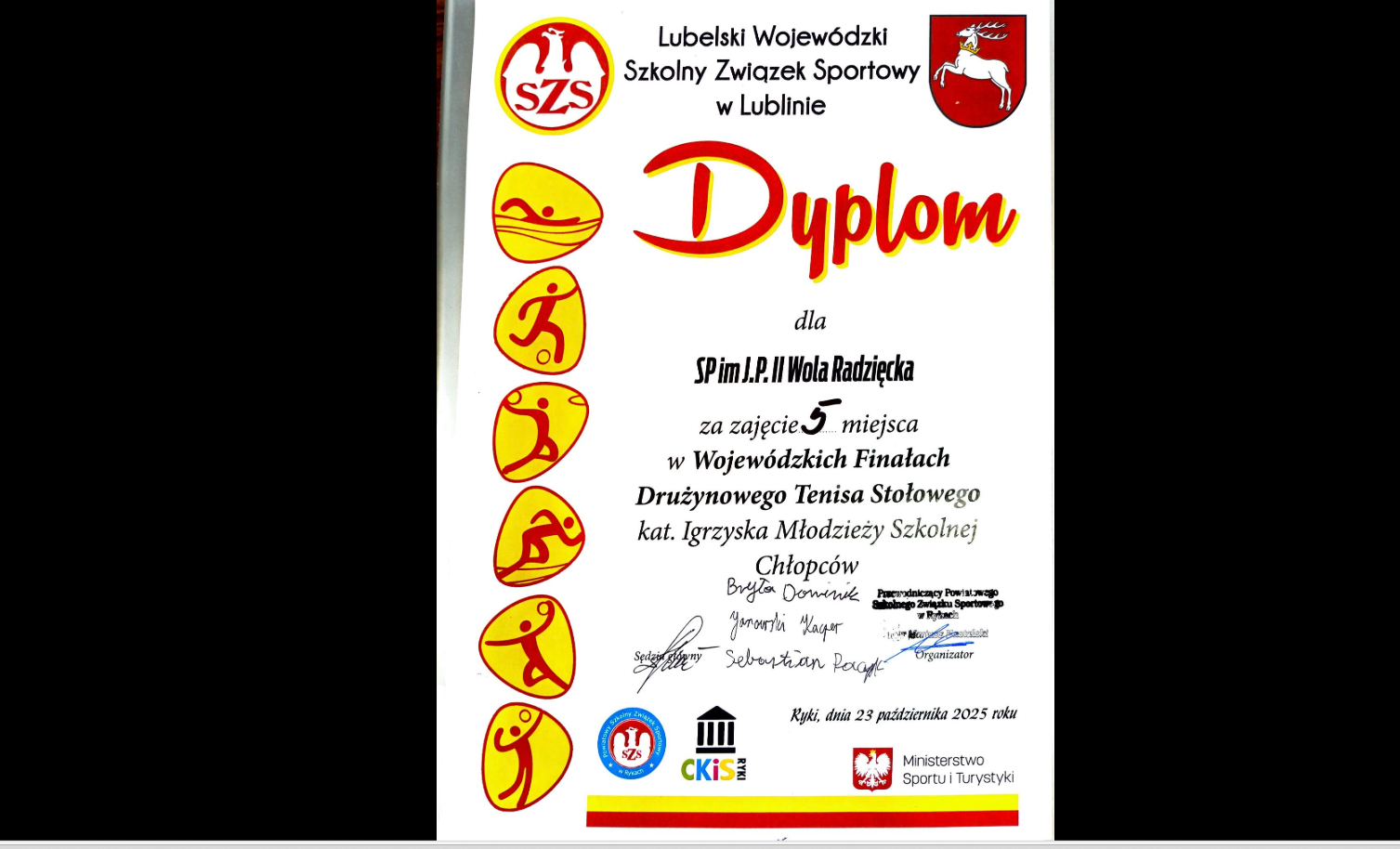 Tylko cztery szkoły w całym województwie okazały się lepsze od naszych zawodników w finałach wojewódzkich drużynowego tenisa stołowego chłopców z klas 7–8, które odbyły się 22 października 2025 r. w Rykach.