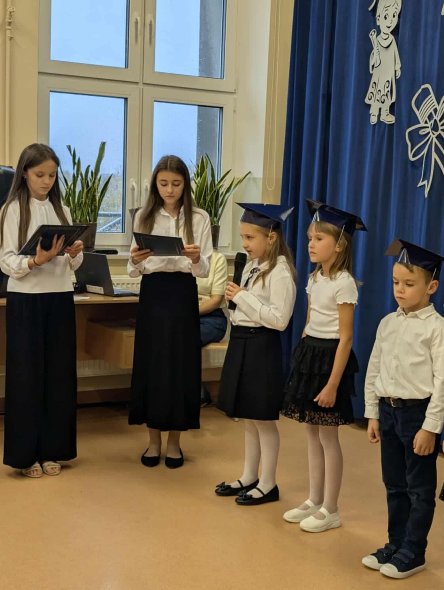 Uroczystość rozpoczęła się od przygotowanej przez pierwszoklasistów części artystycznej. Wiersze, piosenki i tańce w ich wykonaniu wprowadziły wszystkich w wyjątkowy, uroczysty nastrój. Dzieci z ogromnym zaangażowaniem i odwagą udowodniły, że są gotowe, by stać się pełnoprawnymi uczniami naszej szkoły.