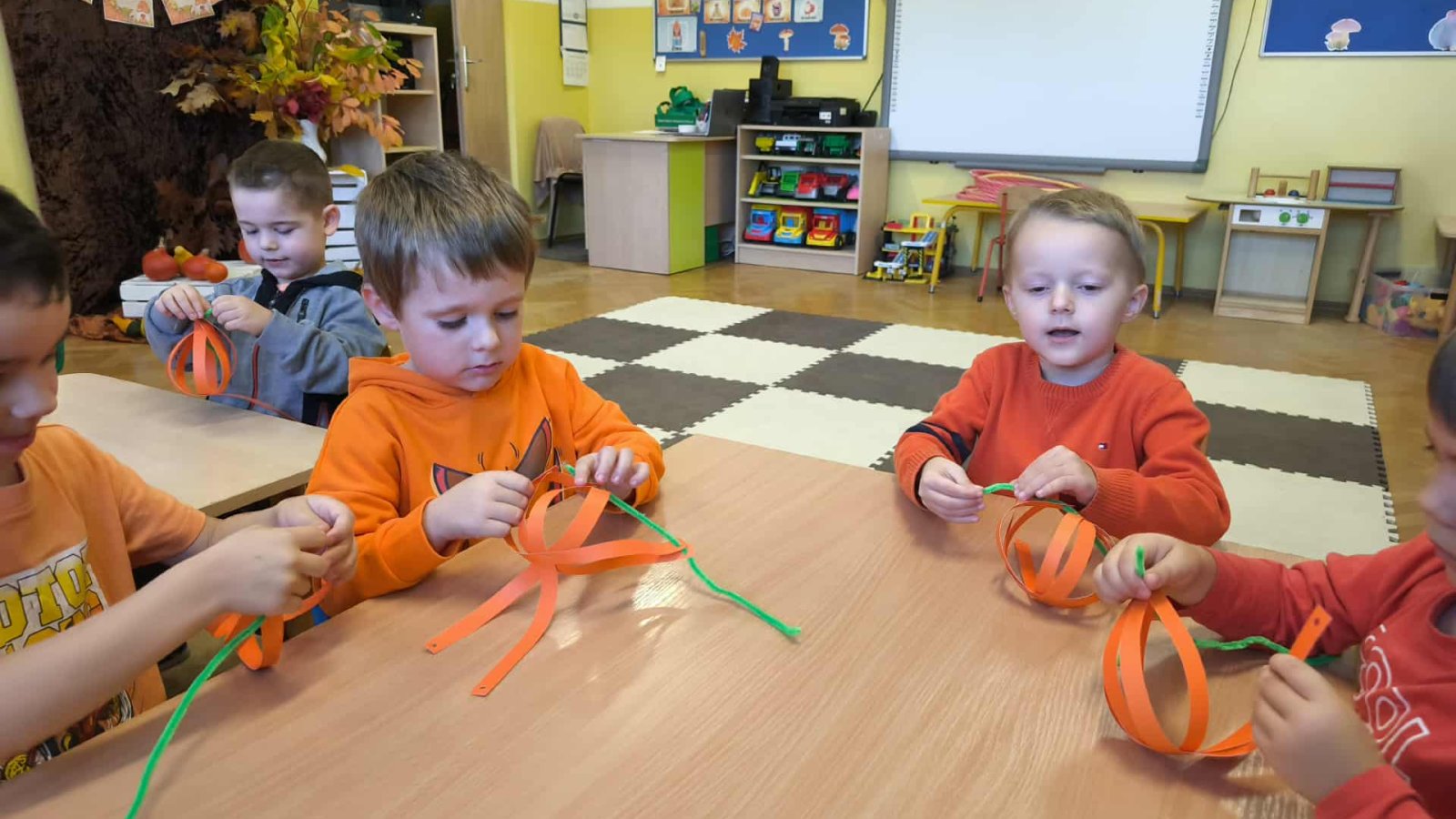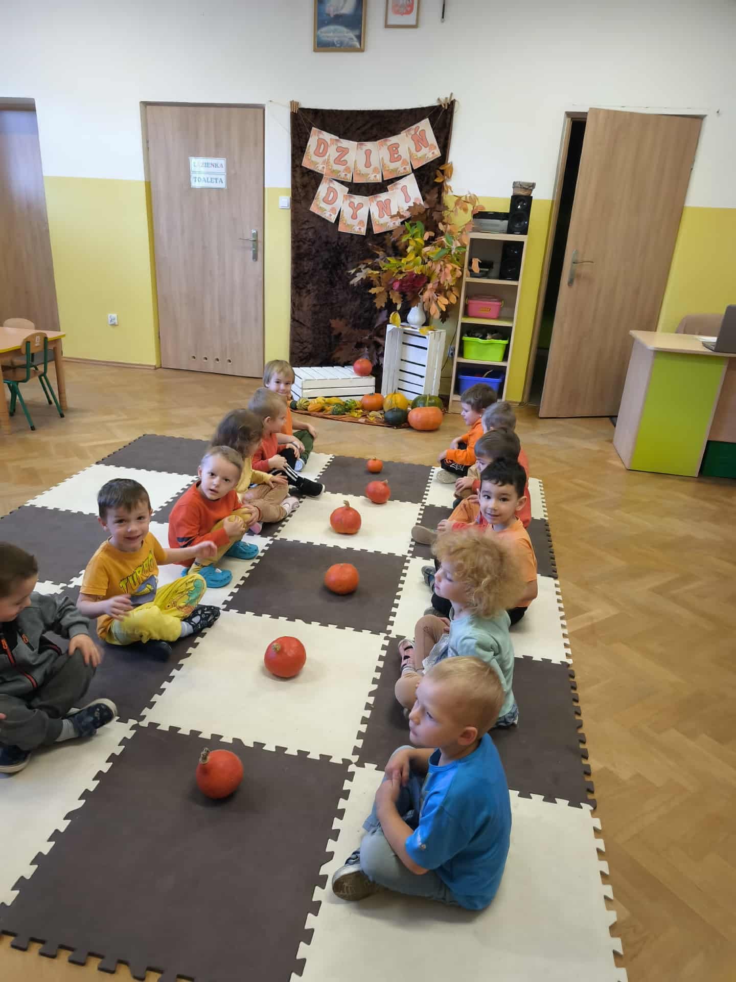 31 października w grupie 3-4-latków obchodziliśmy Dzień Dyni. Tego dnia królowała dyniowa kolorystyka – cała sala wypełniła się odcieniami pomarańczu i żółci.