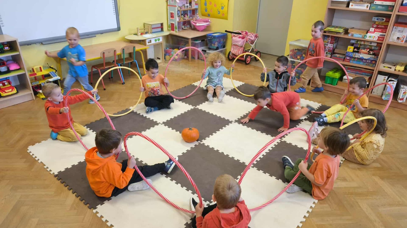 Podczas zajęć przedszkolaki uczestniczyły w wielu zabawach i aktywnościach związanych z dynią. Z dużym zainteresowaniem dzieci ważyły różne gatunki dyń używając do tego tradycyjnej wagi szalkowej, porównywały również wielkość i kształt dyń. Odkrywały, co znajduje się w ich wnętrzu. Przedszkolaki poznały jak dużo potraw i przysmaków można wykonać z dyni. Nie zabrakło też zabaw ruchowych – z dynią w roli głównej, które dostarczyły wszystkim mnóstwo śmiechu i pozytywnej energii.