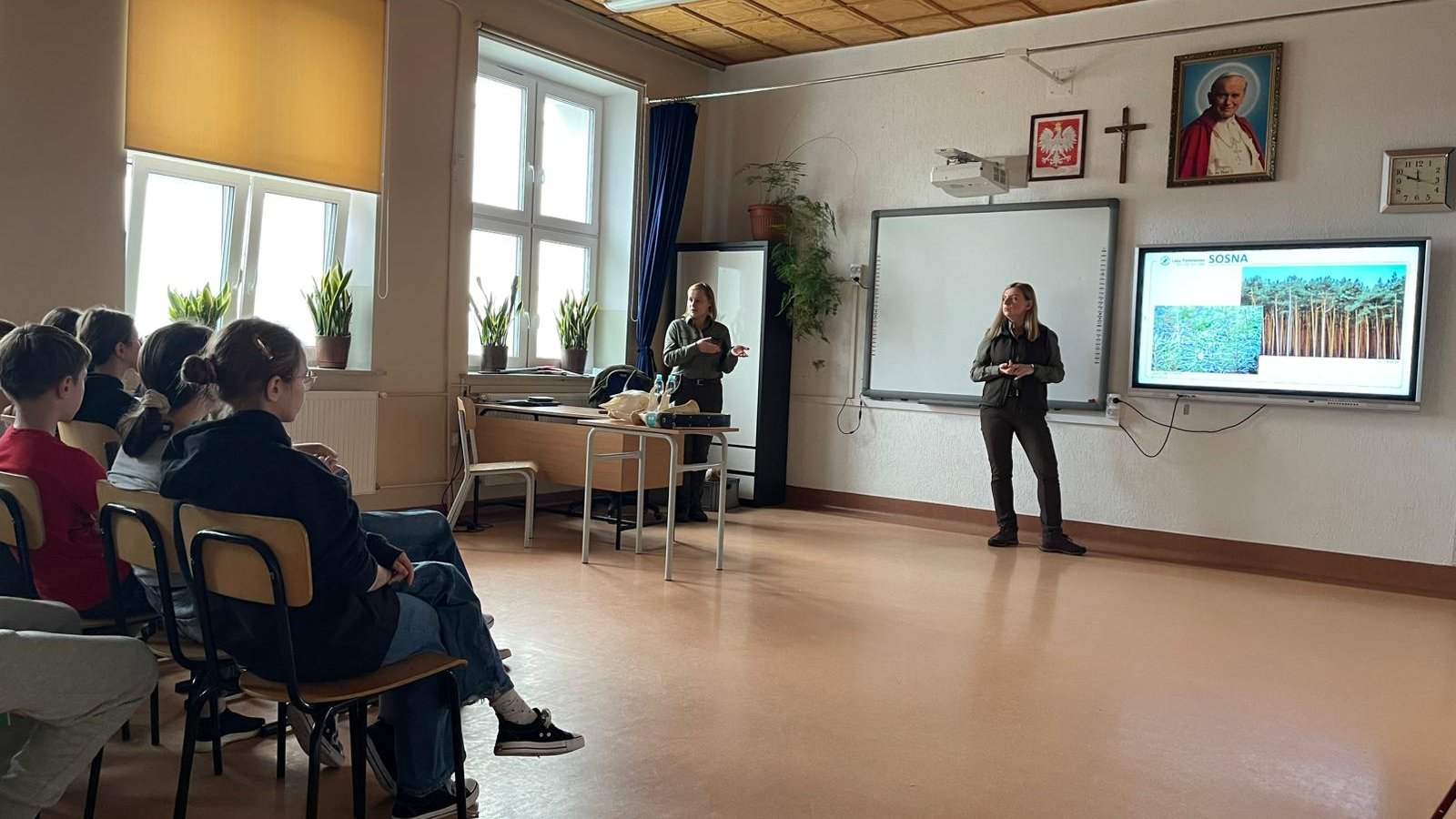 W naszej szkole odbyło się spotkanie z przedstawicielkami Lasów Janowskich, które przybliżyły uczniom tajniki pracy w leśnictwie. Panie opowiedziały o codziennych obowiązkach leśnika, jego roli w ochronie przyrody oraz o ścieżkach kariery w tym zawodzie.