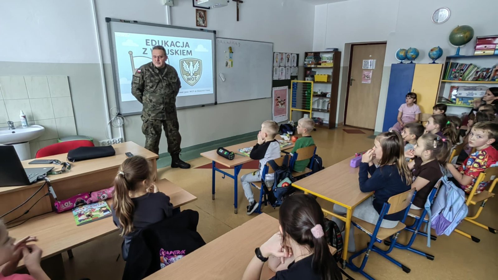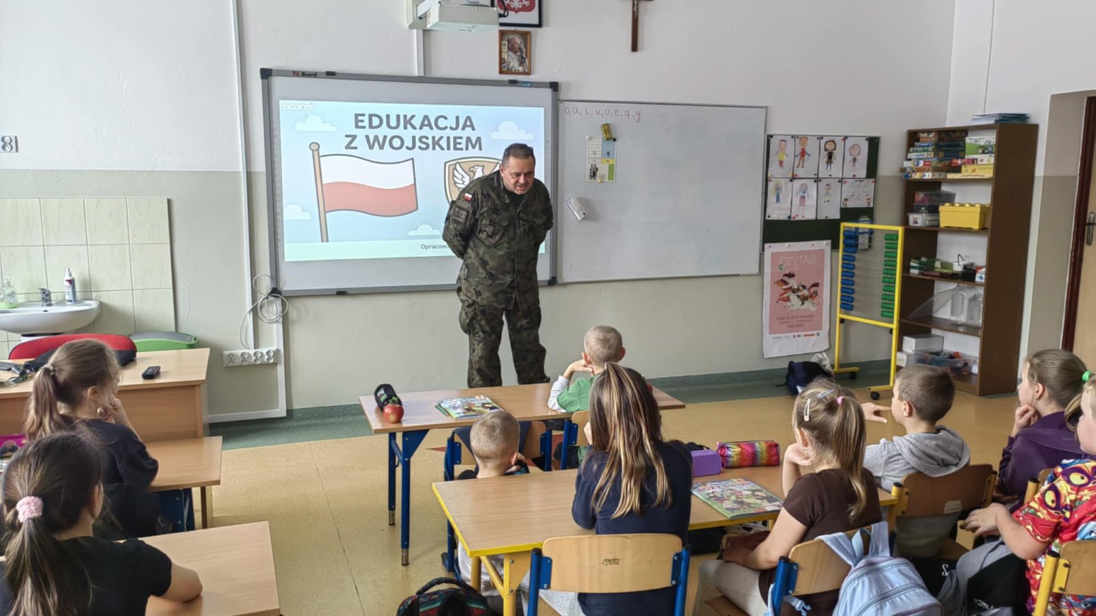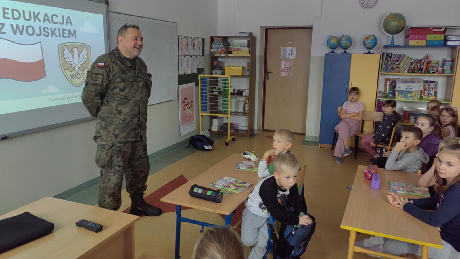 25 listopada 2025 r. odbył się wykład dla uczniów klas I–IV, który poprowadził ppor. dr Sławomir Franc, żołnierz Wojsk Obrony Terytorialnej. Spotkanie zostało zorganizowane w ramach programu „Edukacja z wojskiem”, mającego na celu wzmacnianie świadomości i bezpieczeństwa wśród najmłodszych.
