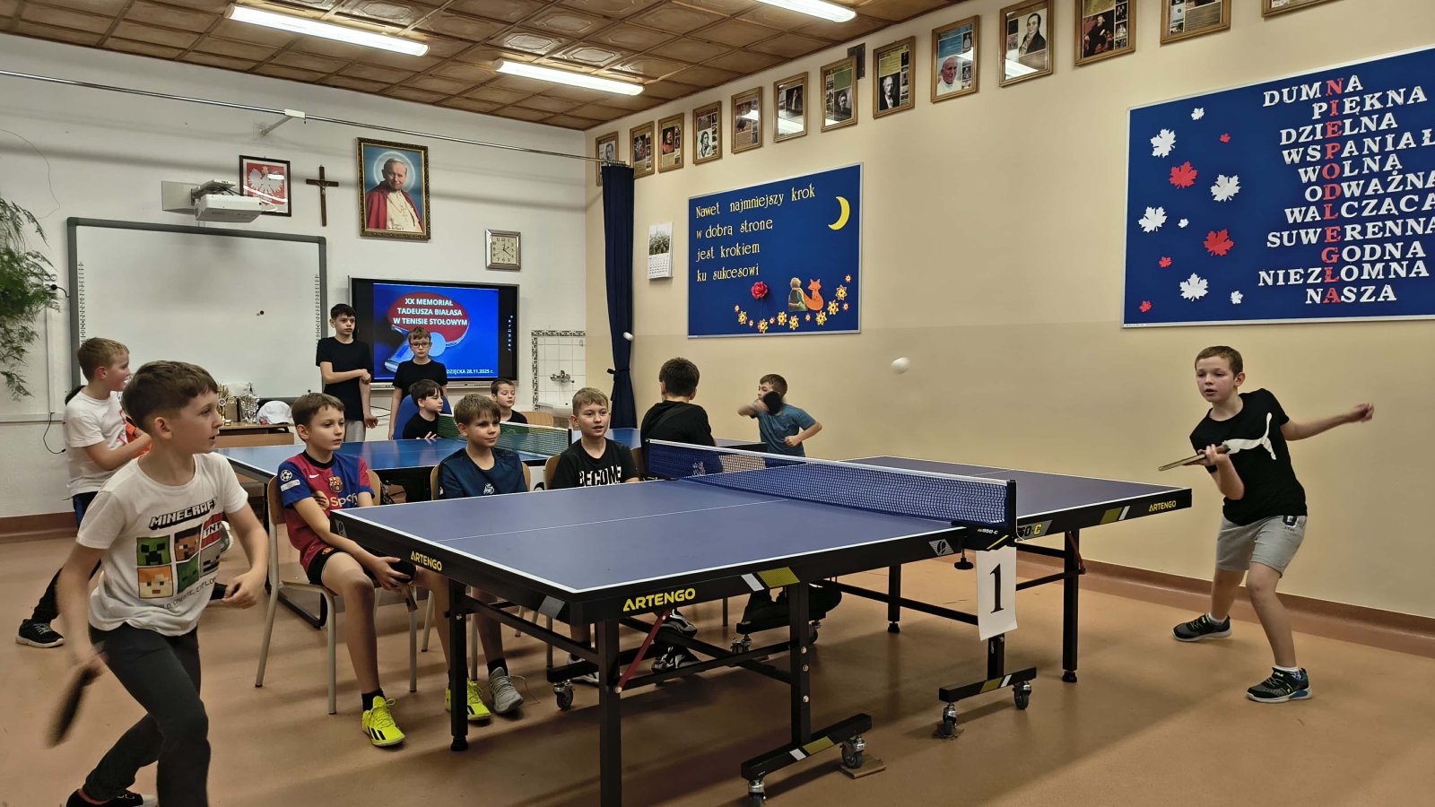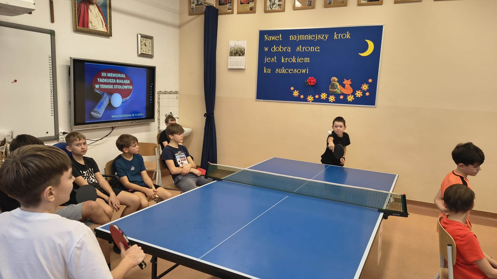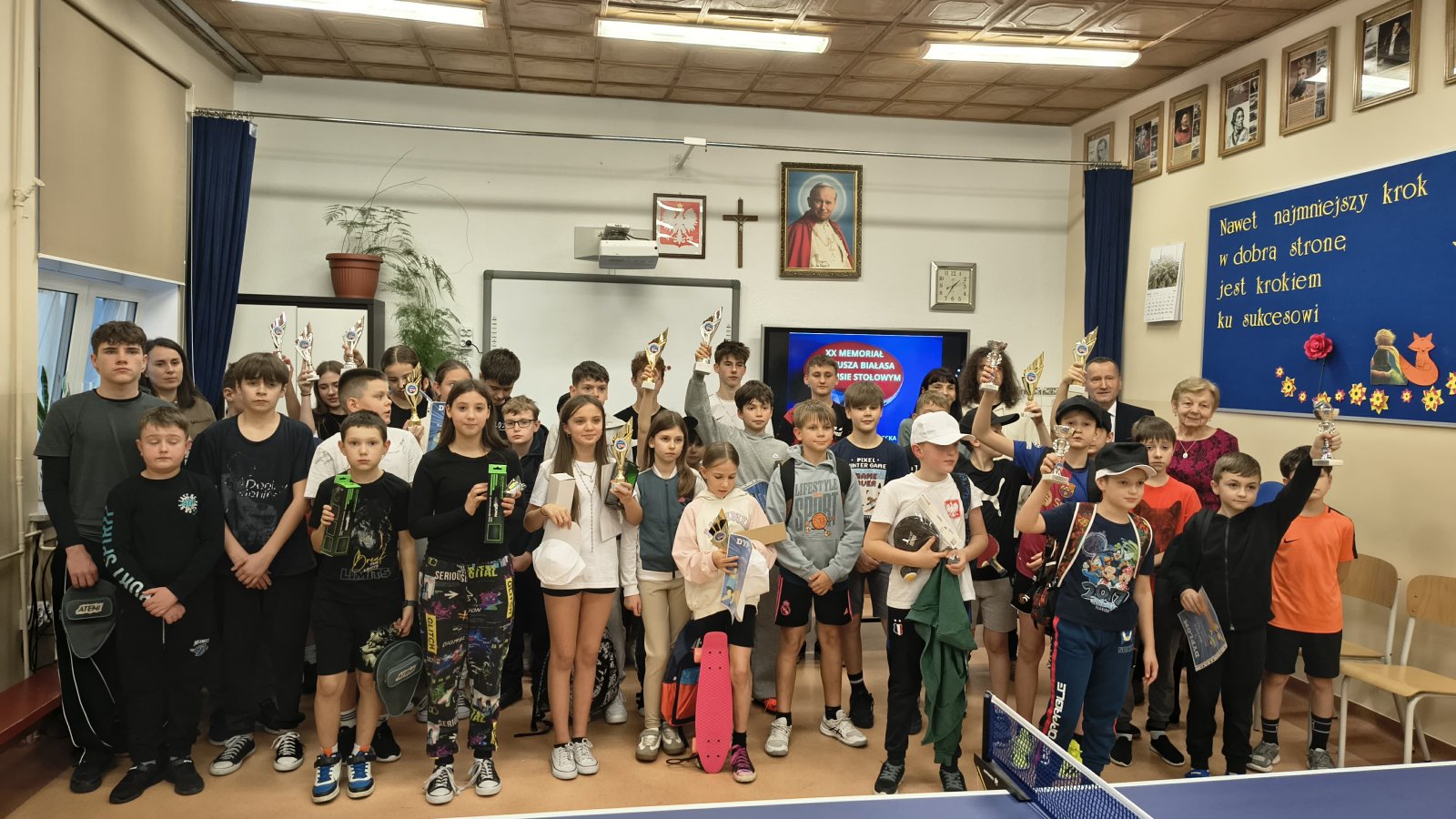 W ostatni piątek listopada odbyła się jubileuszowa, XX edycja Memoriału Tadeusza Białasa w tenisie stołowym. W turnieju uczestniczyli uczniowie szkół z terenu gminy Frampol, rywalizując w kilku kategoriach wiekowych. W tym roku po raz pierwszy rozegrano także kategorię klas I–III. W uroczystym rozpoczęciu udział wzięła rodzina śp. Tadeusza Białasa, oraz Pani Anna Ruszczak – Sekretarz Gminy Frampol. Dyrektor szkoły, Pan Stanisław Saj, powitał gości oraz zawodników, po czym – po krótkich przemówieniach – rozpoczęły się sportowe zmagania. Rywalizacja przebiegała w przyjaznej atmosferze i zgodnie z zasadami fair play. Po rozegraniu ponad 70 meczów wyłoniono zwycięzców poszczególnych kategorii.