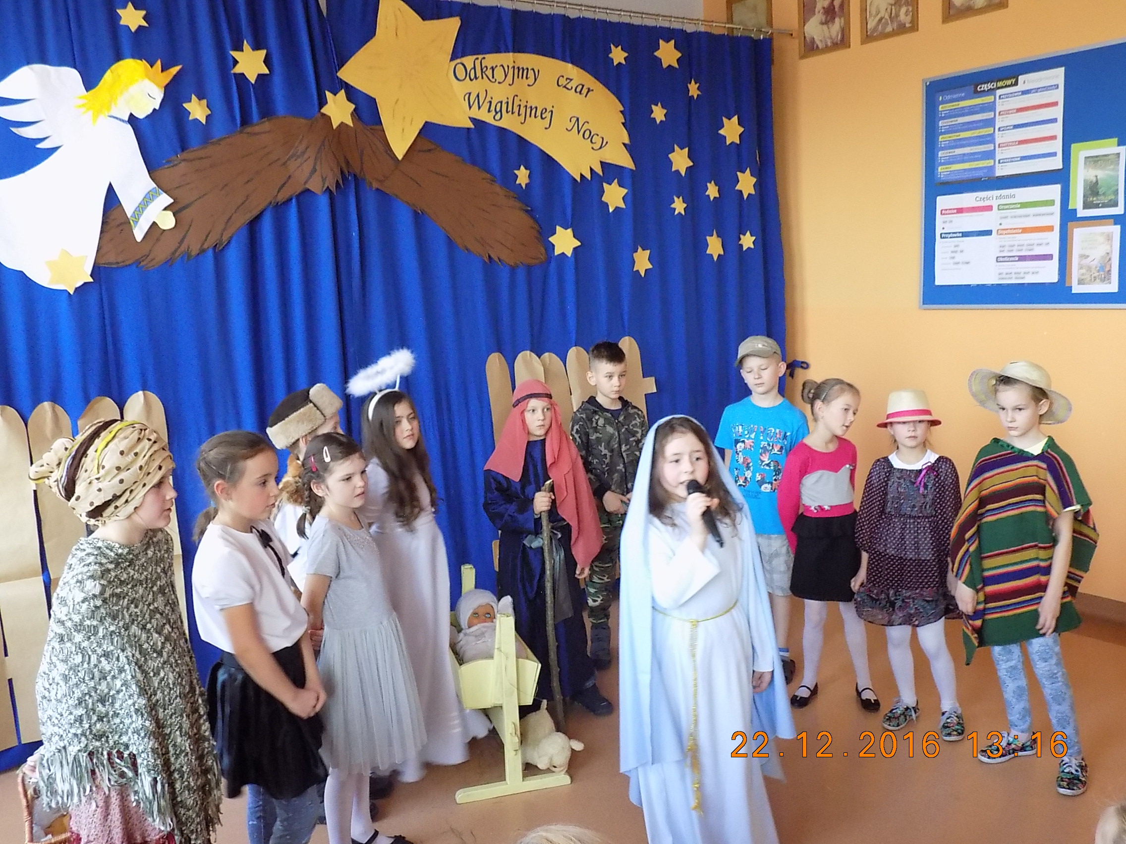 Święta Bożego Narodzenia to nie tylko czas spotkań rodzinnych przy suto zastawionym stole, to także okazja do kultywowania tradycji bożonarodzeniowych jasełek oraz wspólnego śpiewu kolęd. Również w naszej szkole 22 grudnia miały miejsce jasełka w wykonaniu uczniów klasy III oraz koncert kolęd naszego chórku szkolnego i jego solistów.