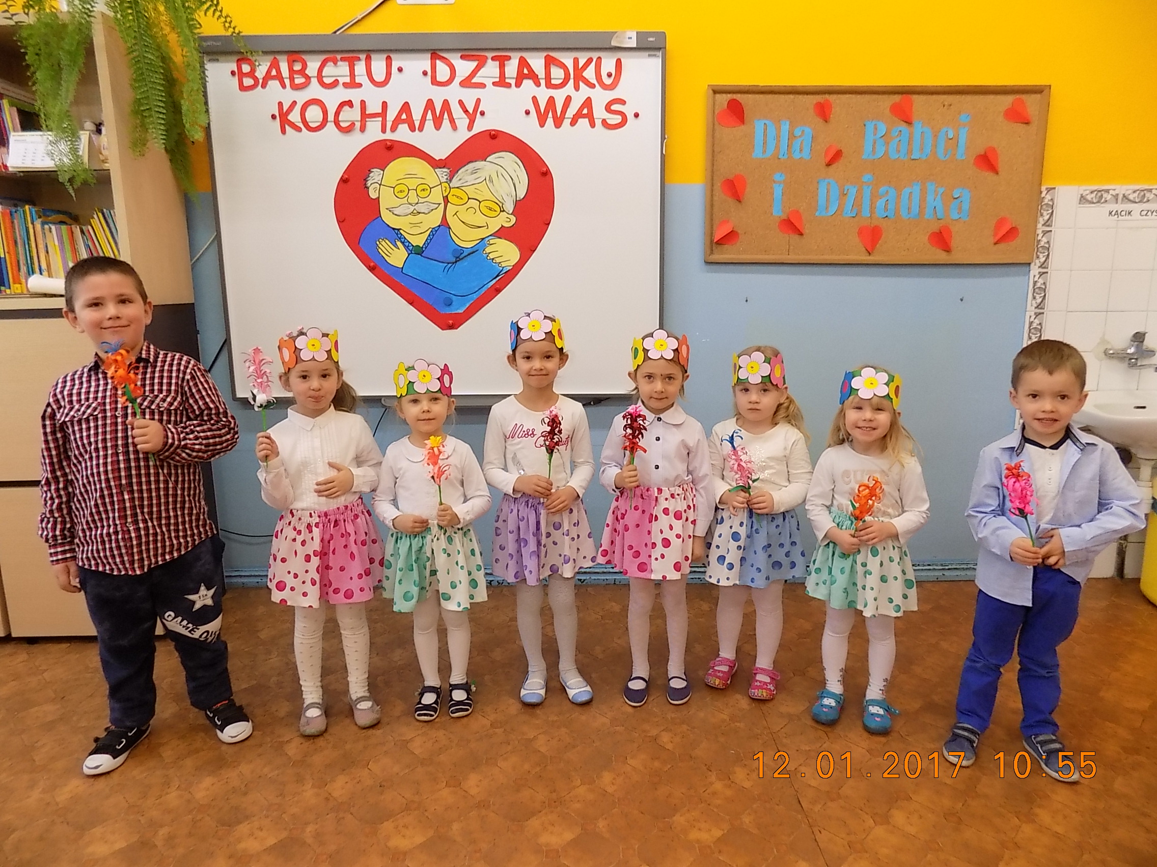 Dzień Babci i Dziadka jest 21 i 22 stycznia, lecz z powodu ferii zimowych przypadających w tym terminie święto to obchodziliśmy w naszym przedszkolu 12 stycznia.