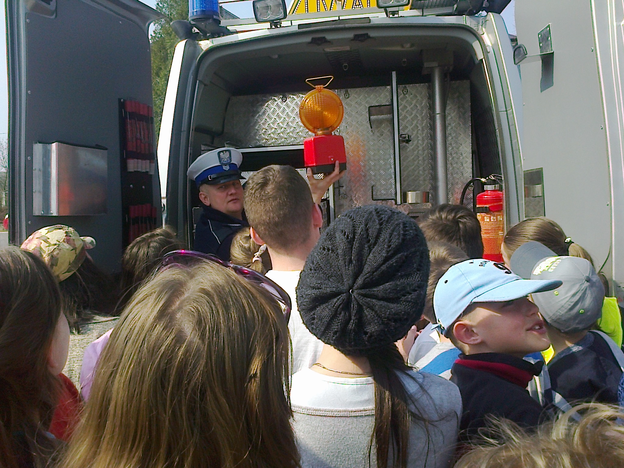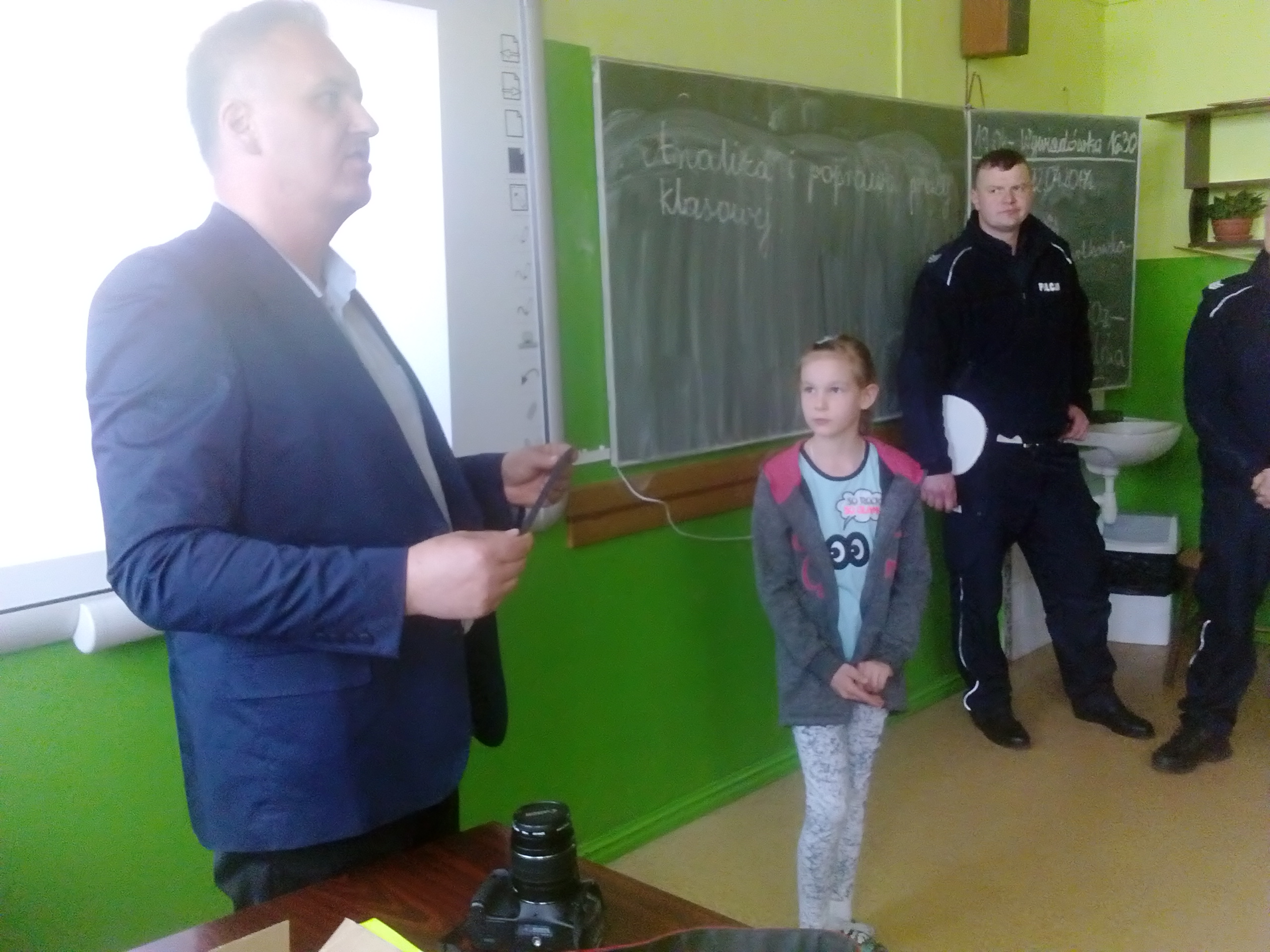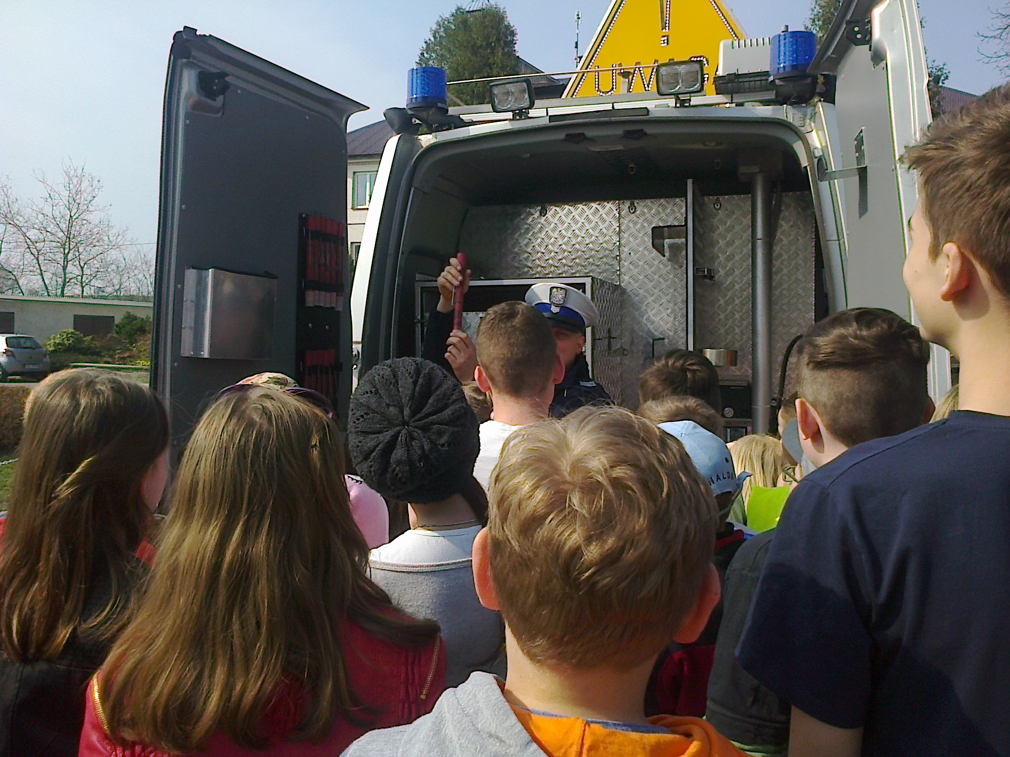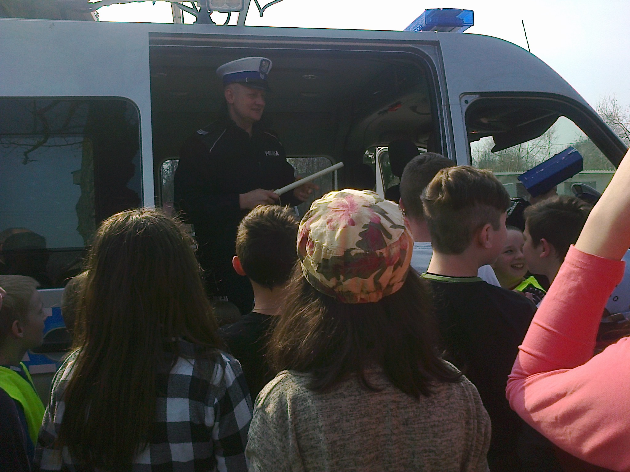 Dzieciaki obejrzały najpierw film dotyczący bezpieczeństwa na drodze, następnie wysłuchały pogadanki oraz odpowiadały na pytania przybyłych gości. Najlepsi otrzymali w nagrodę plecaki. Wszystkie dzieci zostały obdarowane ponadto opaskami - odblaskami. Na zakończenie uczniowie wraz z nauczycielami udali się na plac przed szkołą, gdzie policjanci zaprezentowali zgromadzonym wyposażenie radiowozu oraz wyjaśnili jego przeznaczenie.