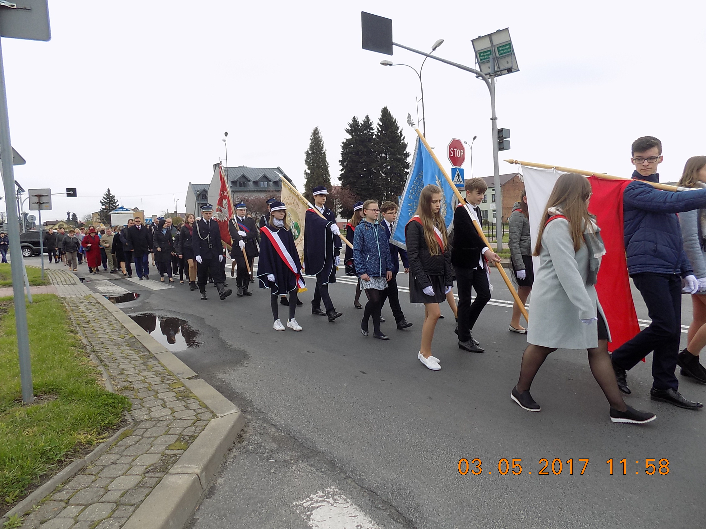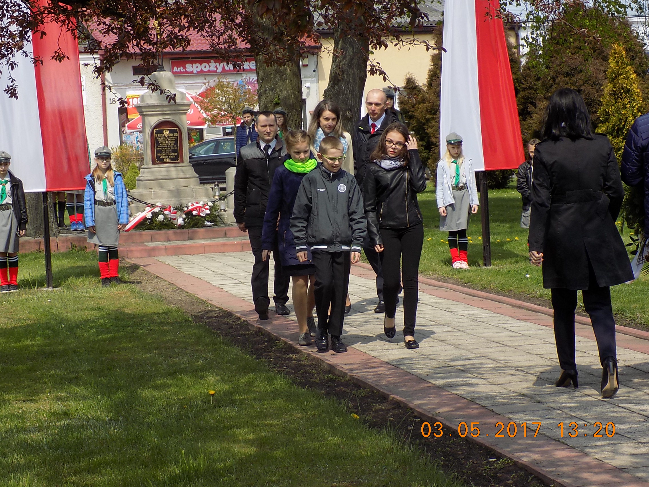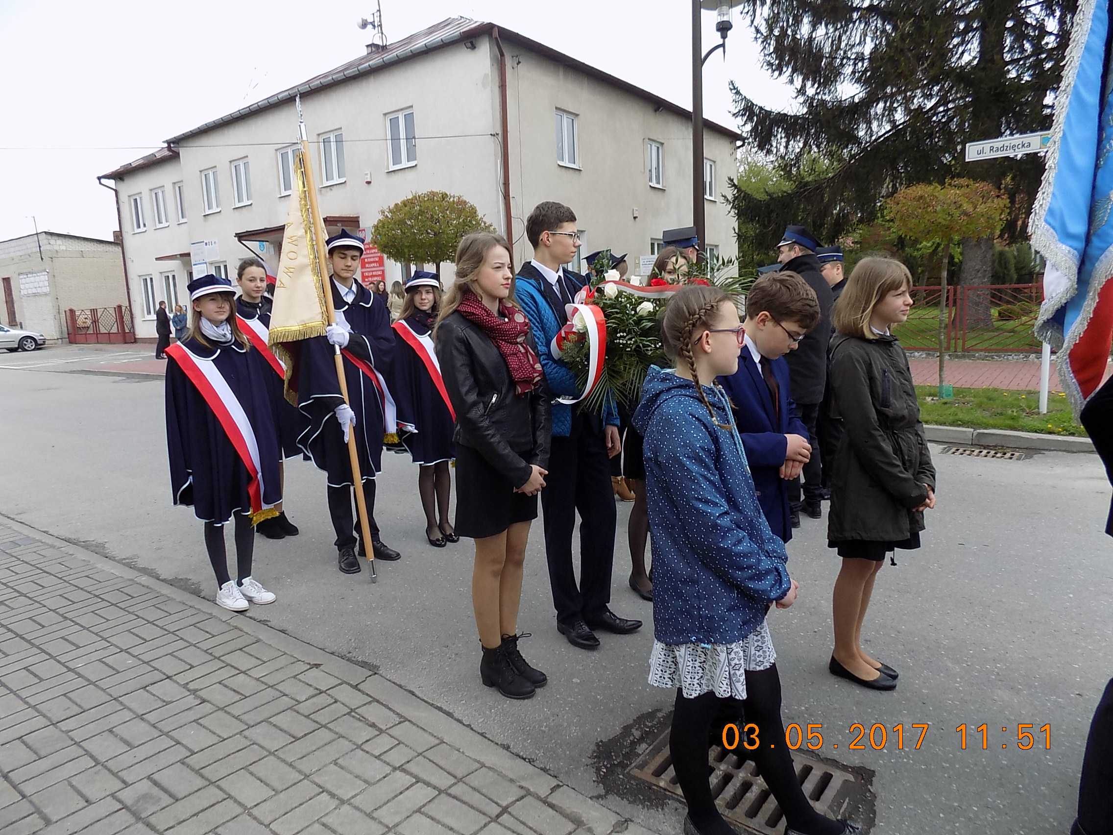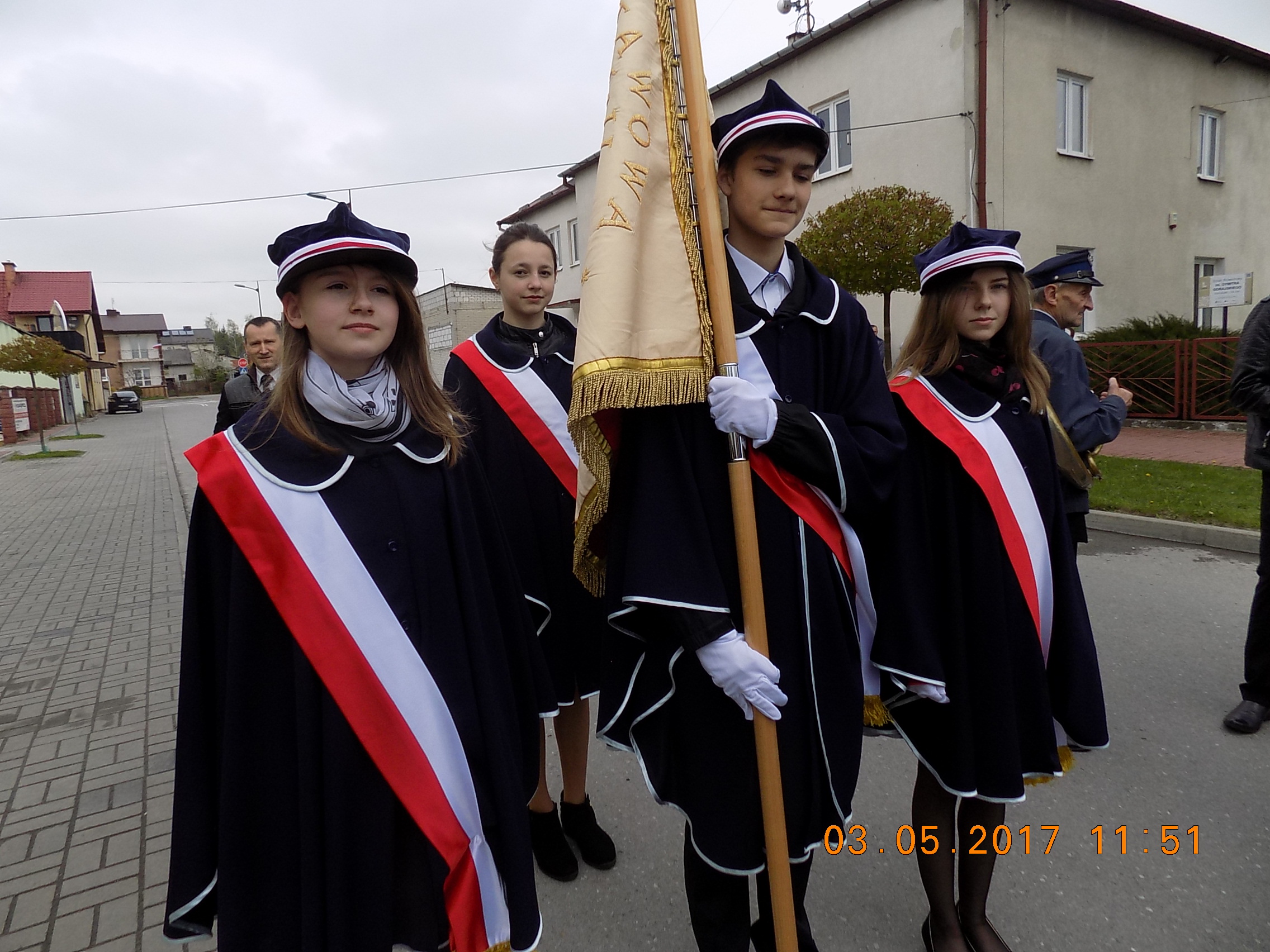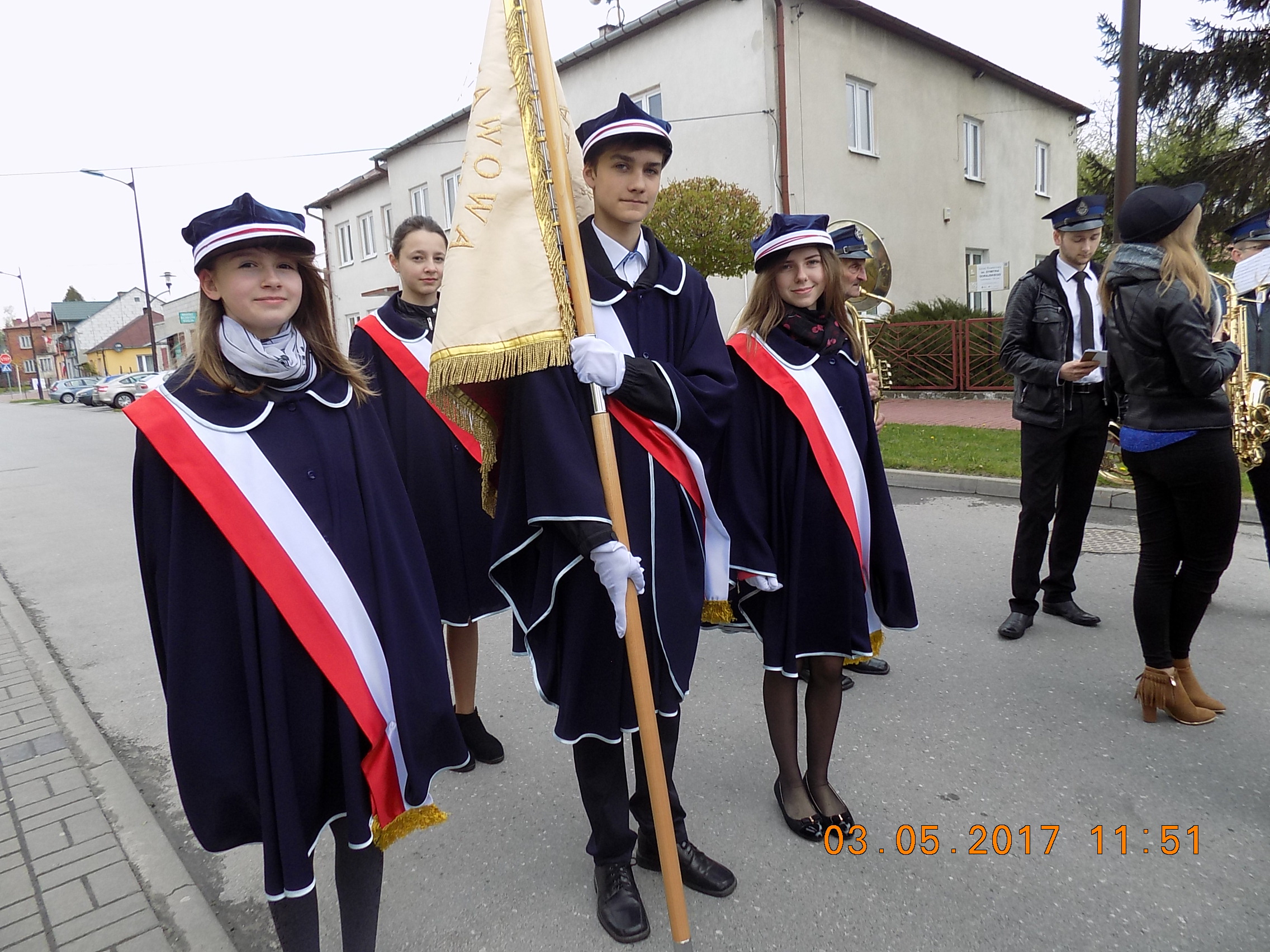 3 maja poczet sztandarowy naszej szkoły wziął udział w gminnych obchodach Święta Konstytucji 3 Maja we Frampolu. Uroczystość ta rozpoczęła się przemarszem uczestników ulicami miasta - sprzed Urzędu Miejskiego do kościoła.