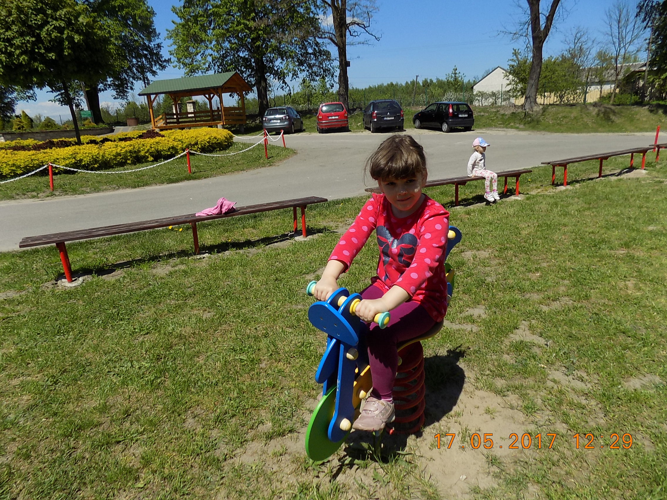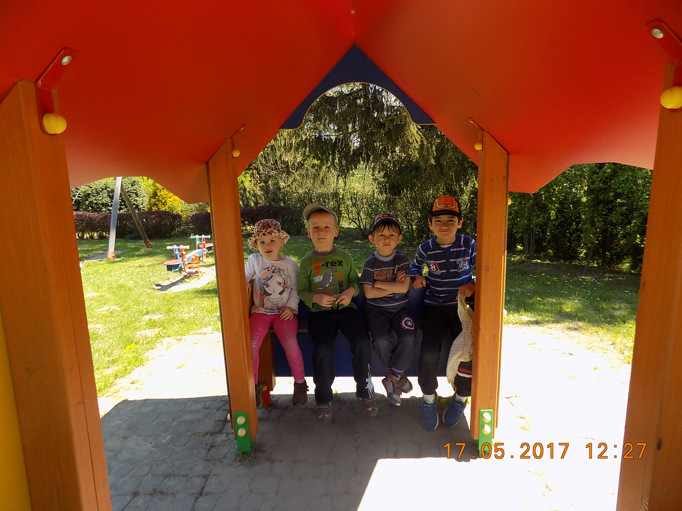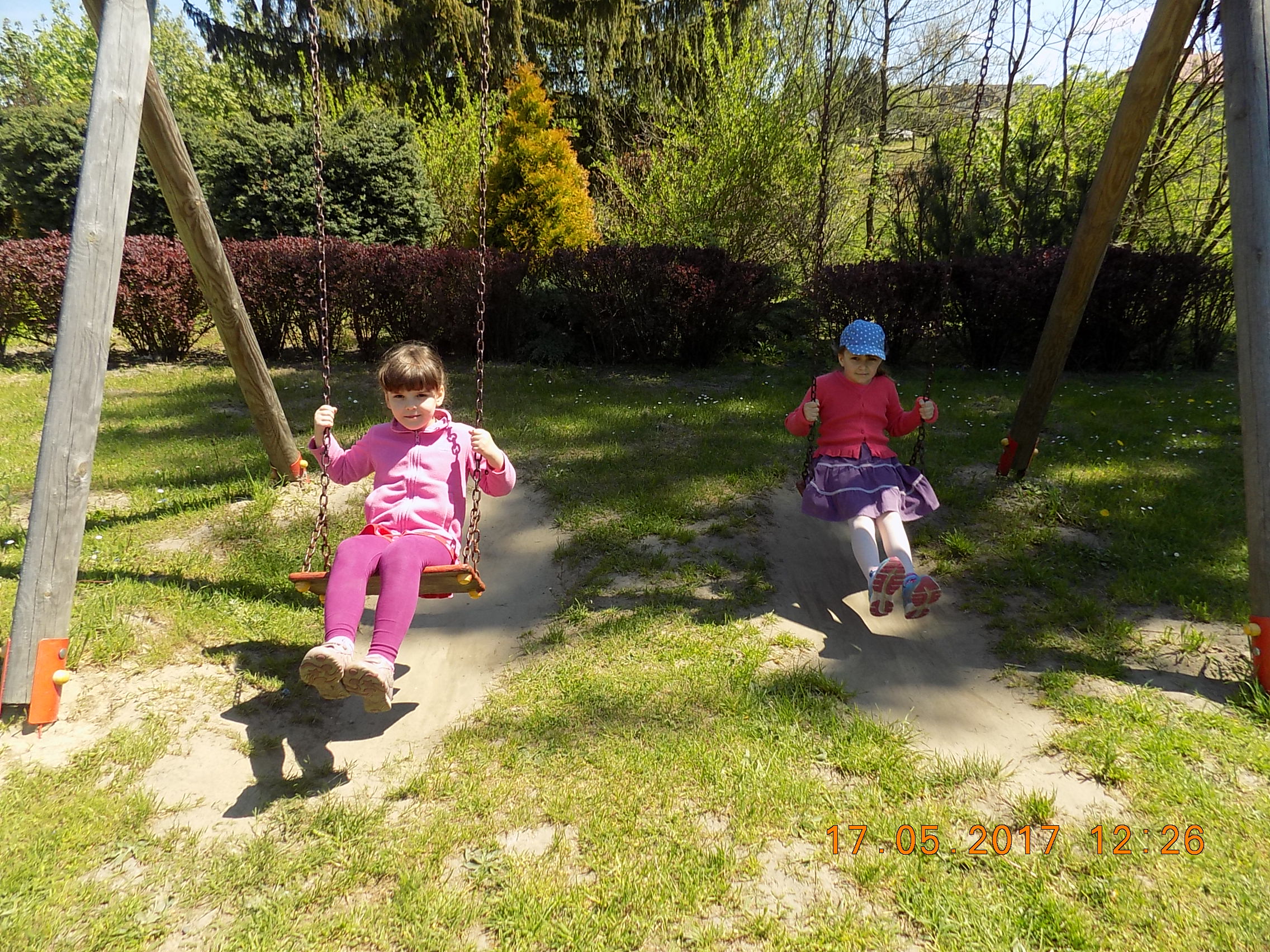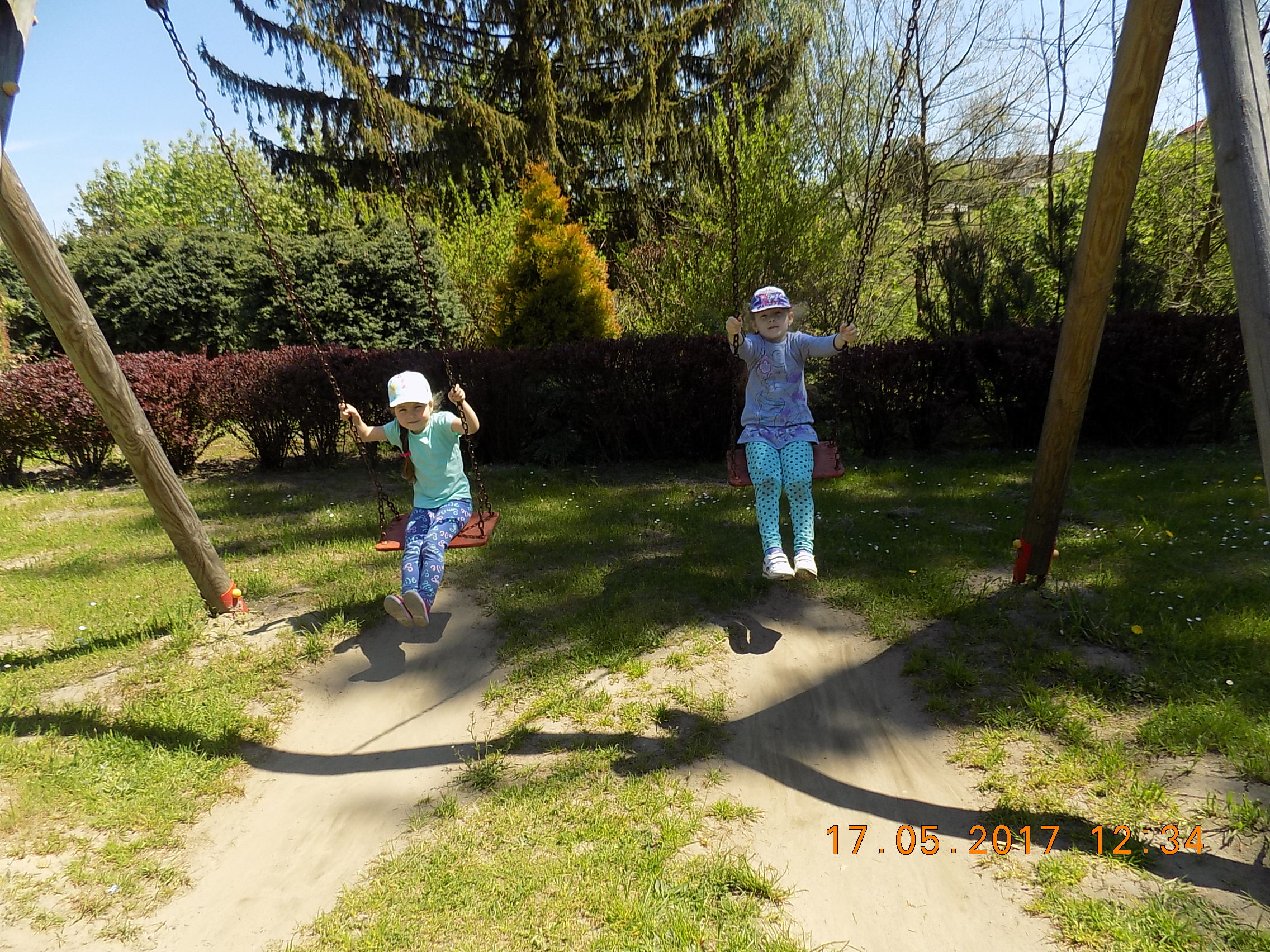 W czasie wesołych harców na placu zabaw dzieci kształtują swoją zwinność, zręczność, siłę i wytrzymałość. Mają też okazję pograć w piłkę, pobiegać sobie oraz poobserwować i podziwiać piękno przyrody na wiosnę.