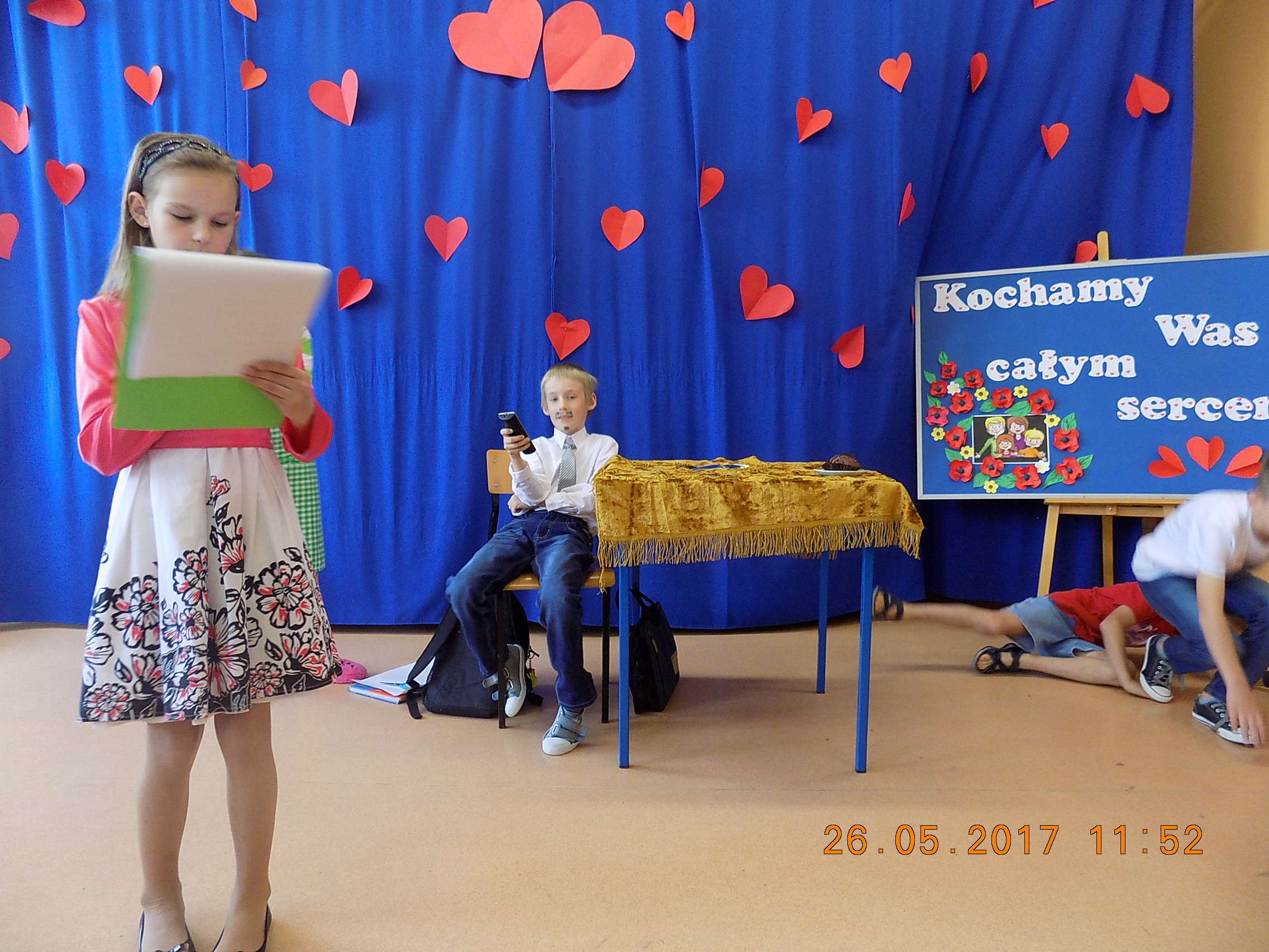 Uroczystość Dnia Mamy i Taty to szczególna okazja, aby podziękować swoim rodzicom za miłość i opiekę. Taka uroczystość odbyła się w naszej szkole 26 maja. Na tę okoliczność dzieci przygotowały część artystyczną, na którą złożyły się piosenki, inscenizacje, tańce i życzenia.
