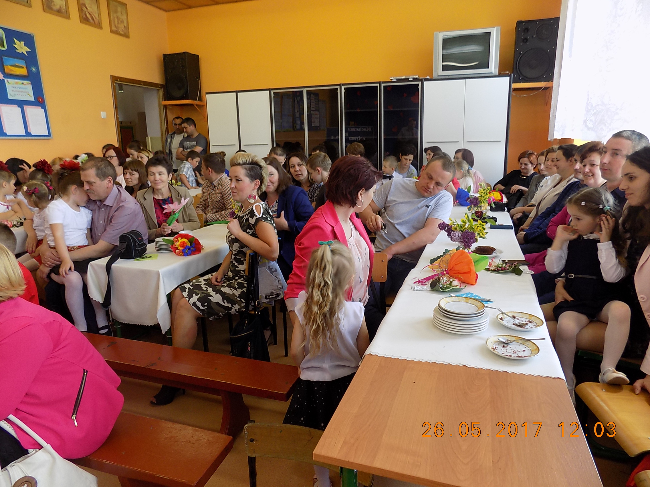 Po części oficjalnej dzieci wręczyły swoim rodzicom upominki, a następnie wszyscy zostali zaproszeni na słodki poczęstunek. Takie uroczystości w gronie rodzinnym pozwalają umacniać rodzinne więzi, uczą miłości, szacunku, przywiązania, a dzieciom pozwalają zaprezentować swoje umiejętności.
