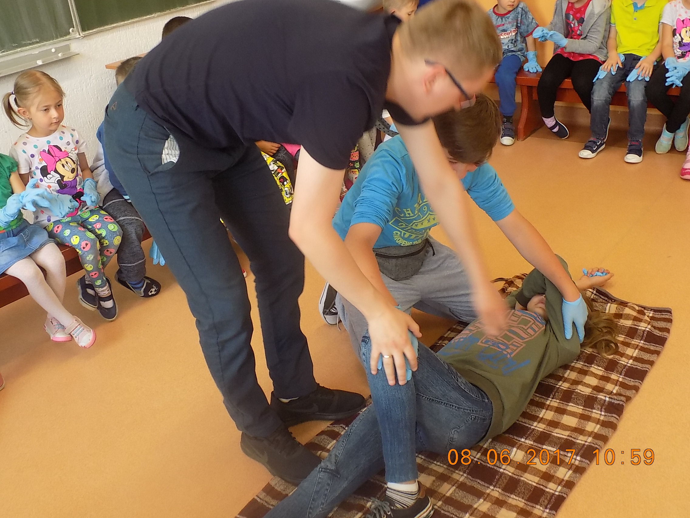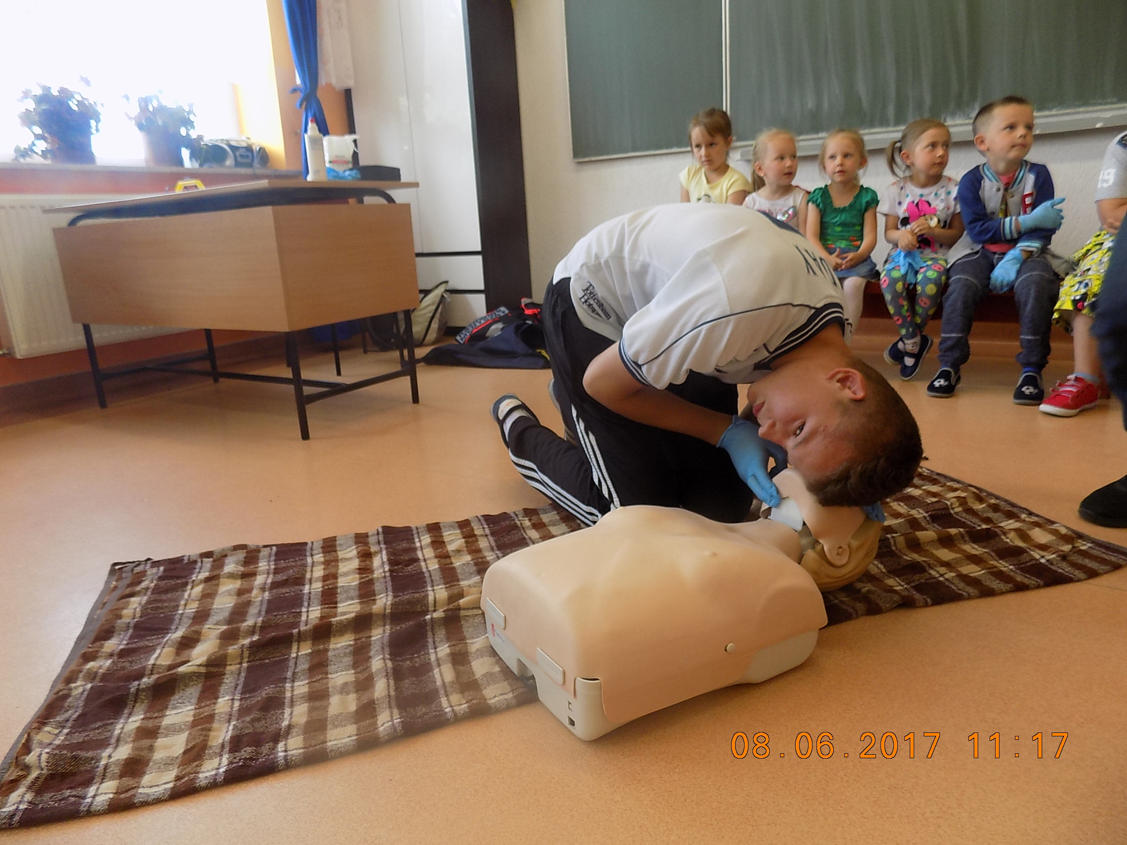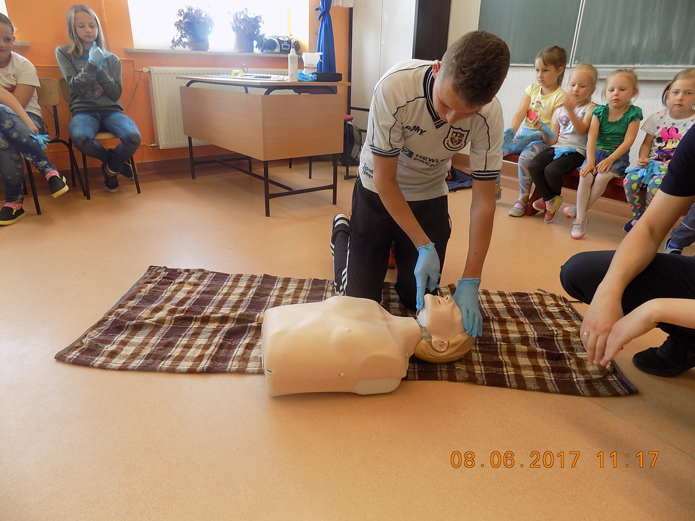 W czwartek 8 czerwca w naszej szkole odbyło się spotkanie z ratownikiem medycznym Panem Patrykiem Chmielem. Podczas lekcji pokazowej zostały omówione podstawowe zasady udzielania pierwszej pomocy.