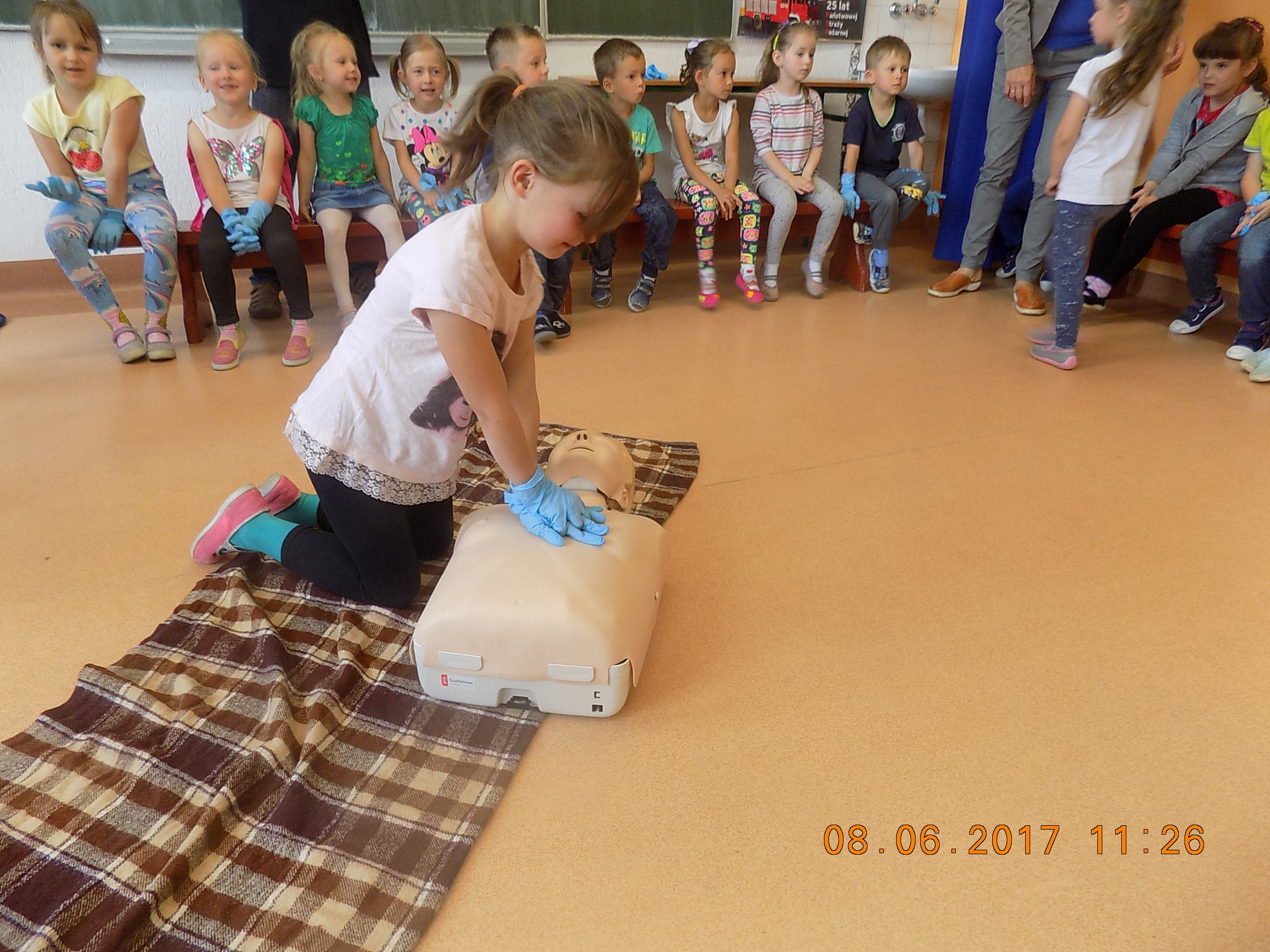 Każdy uczeń miał okazję przećwiczyć RKO (resuscytację krążeniowo-oddechową) oraz dowiedzieć się, co należy zrobić w sytuacji, gdy komuś potrzebna jest pomoc. Dzieci chętnie brały udział w zajęciach, zdobywając tym samym cenną wiedzę i umiejętności. Serdecznie dziękujemy Panu Patrykowi i już myślimy o kolejnych tego typu spotkaniach!