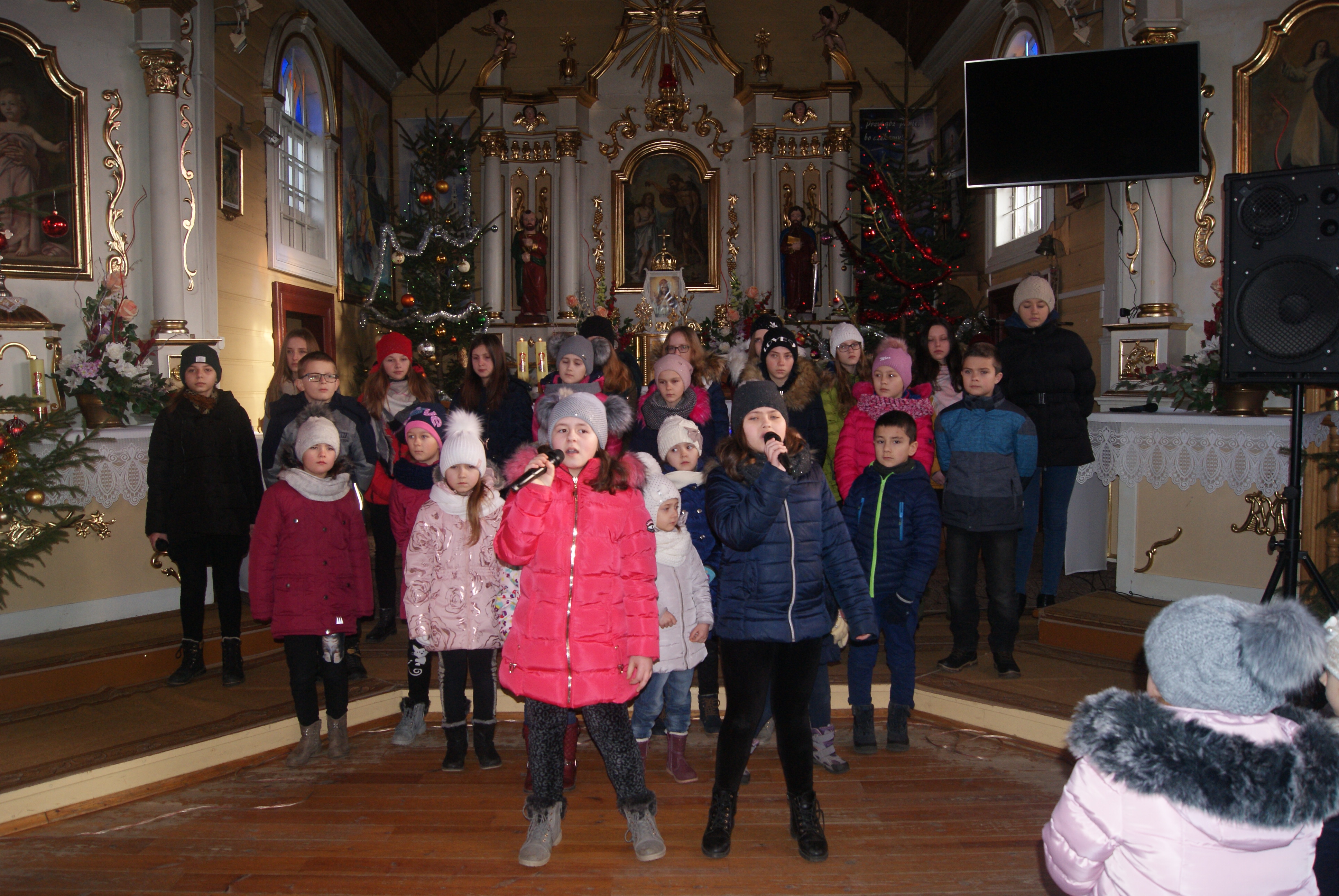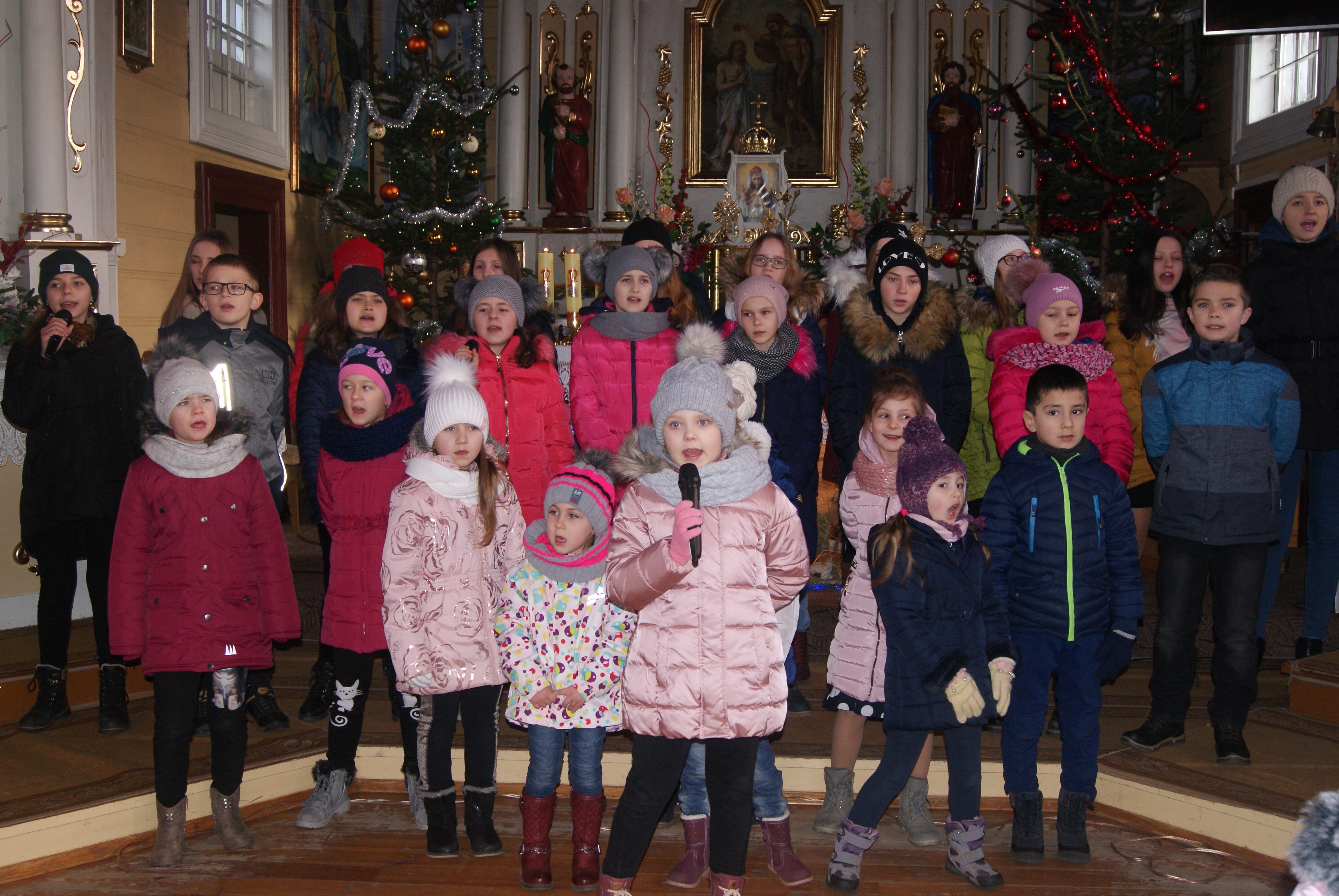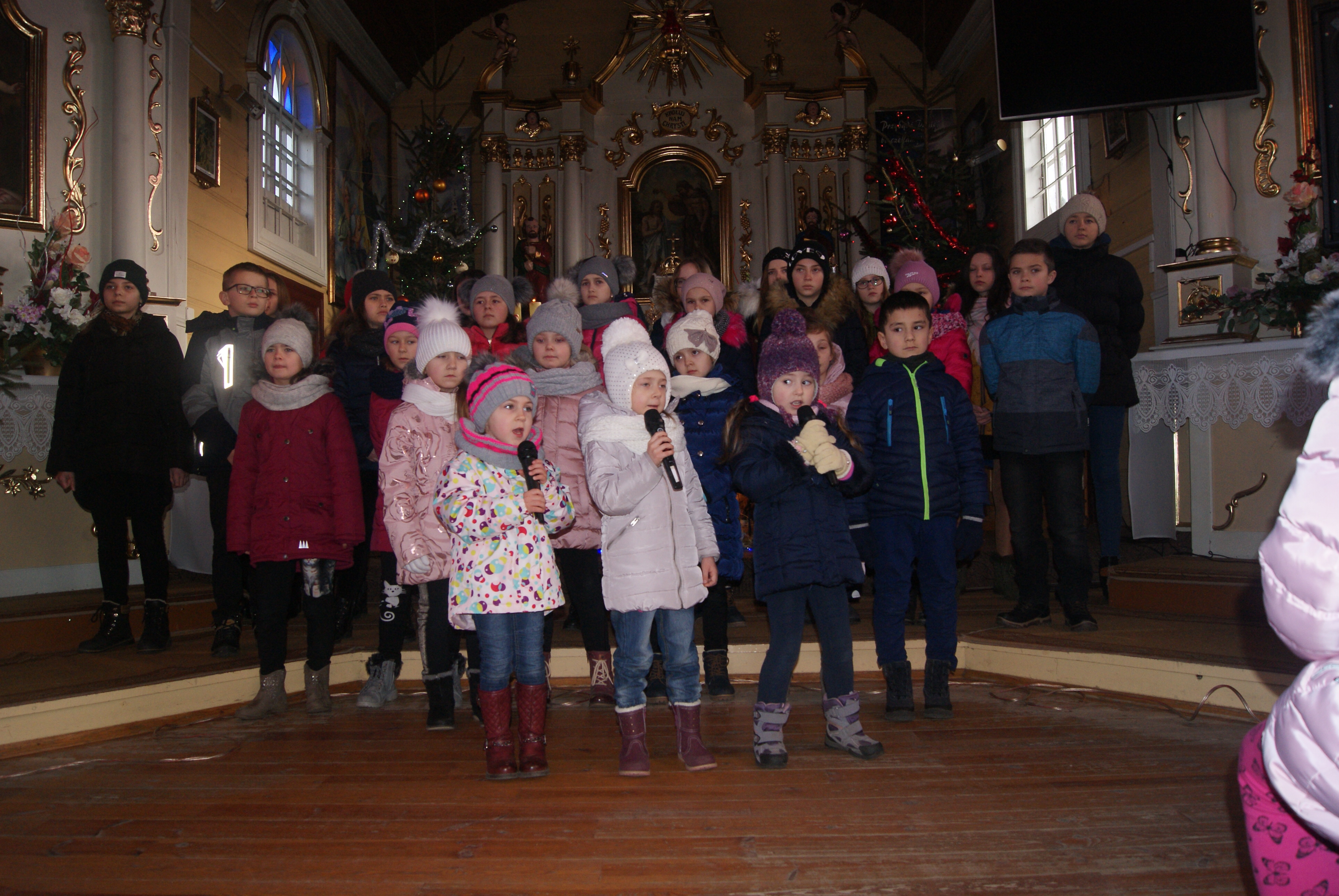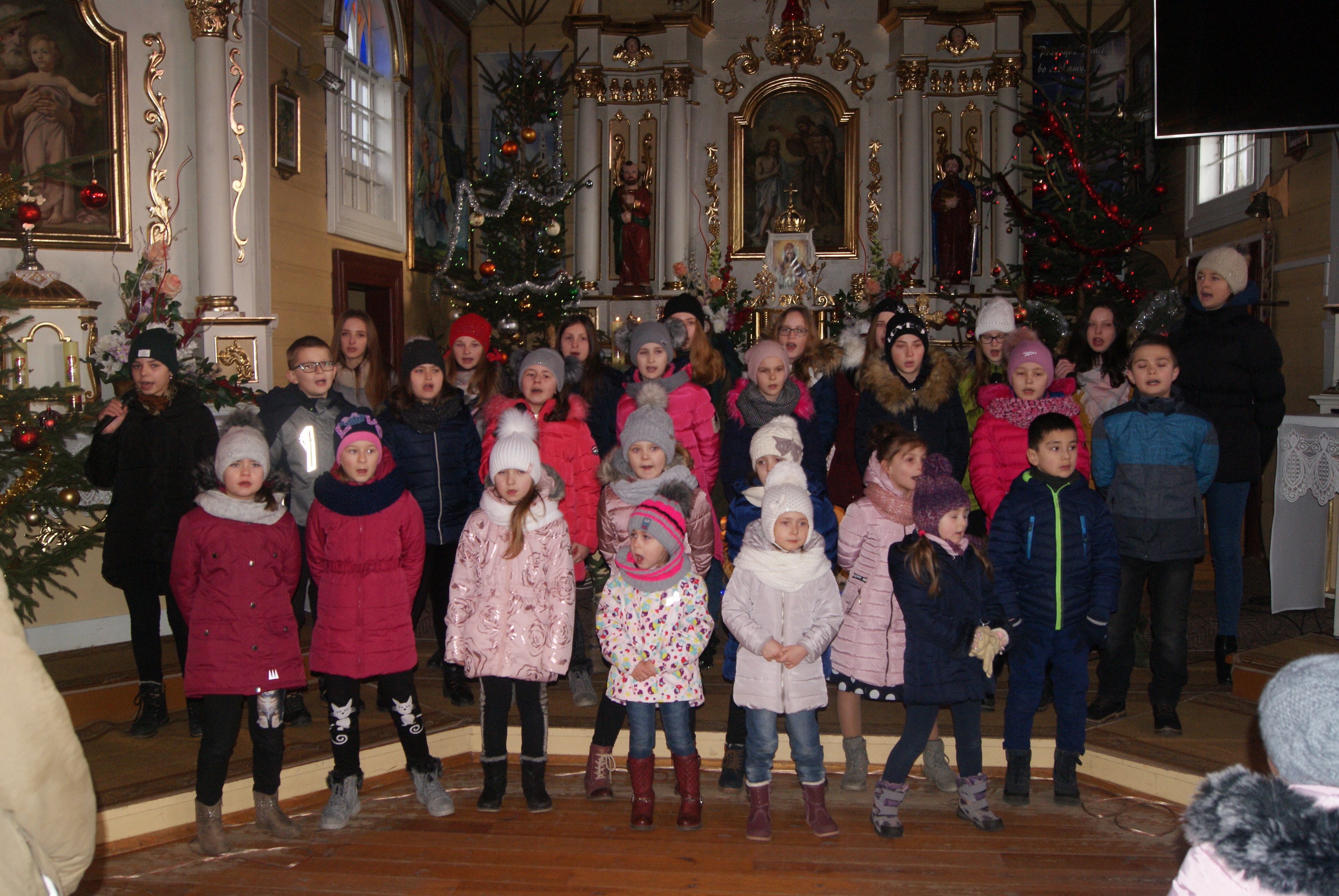 Chórek mógł więc zaprezentować cały repertuar. Złożyło się nań 12 kolęd, z tego 7 kolęd wykonanych zostało po raz pierwszy, pozostałe zaś 5 w nowych wykonaniach. Chórek spotkał się - jak zwykle w Trzęsinach - z życzliwym przyjęciem, w czym zasługa Księdza Proboszcza Juliana Brzezickiego. Zaprosił on również chórek na kolejny koncert.