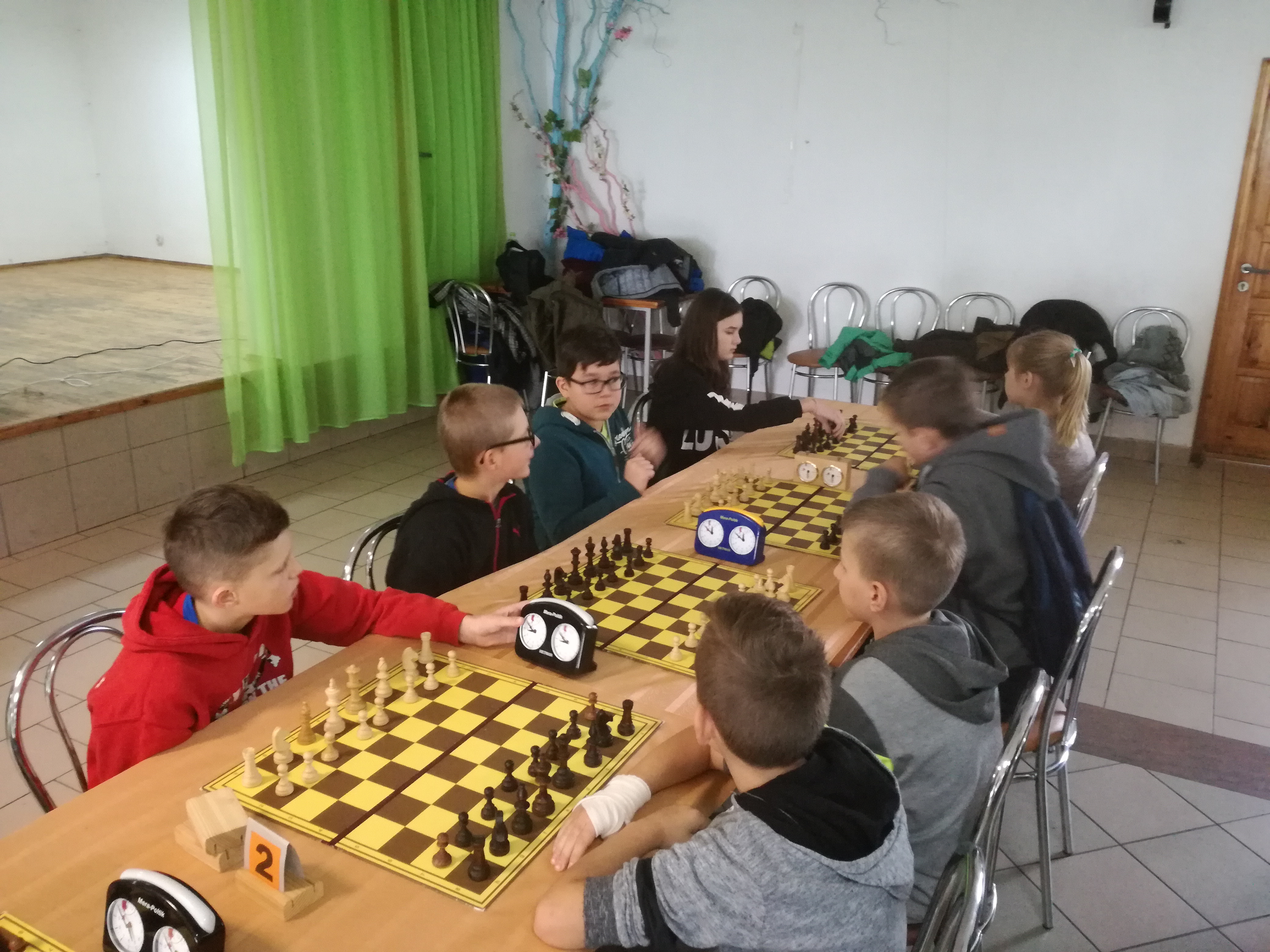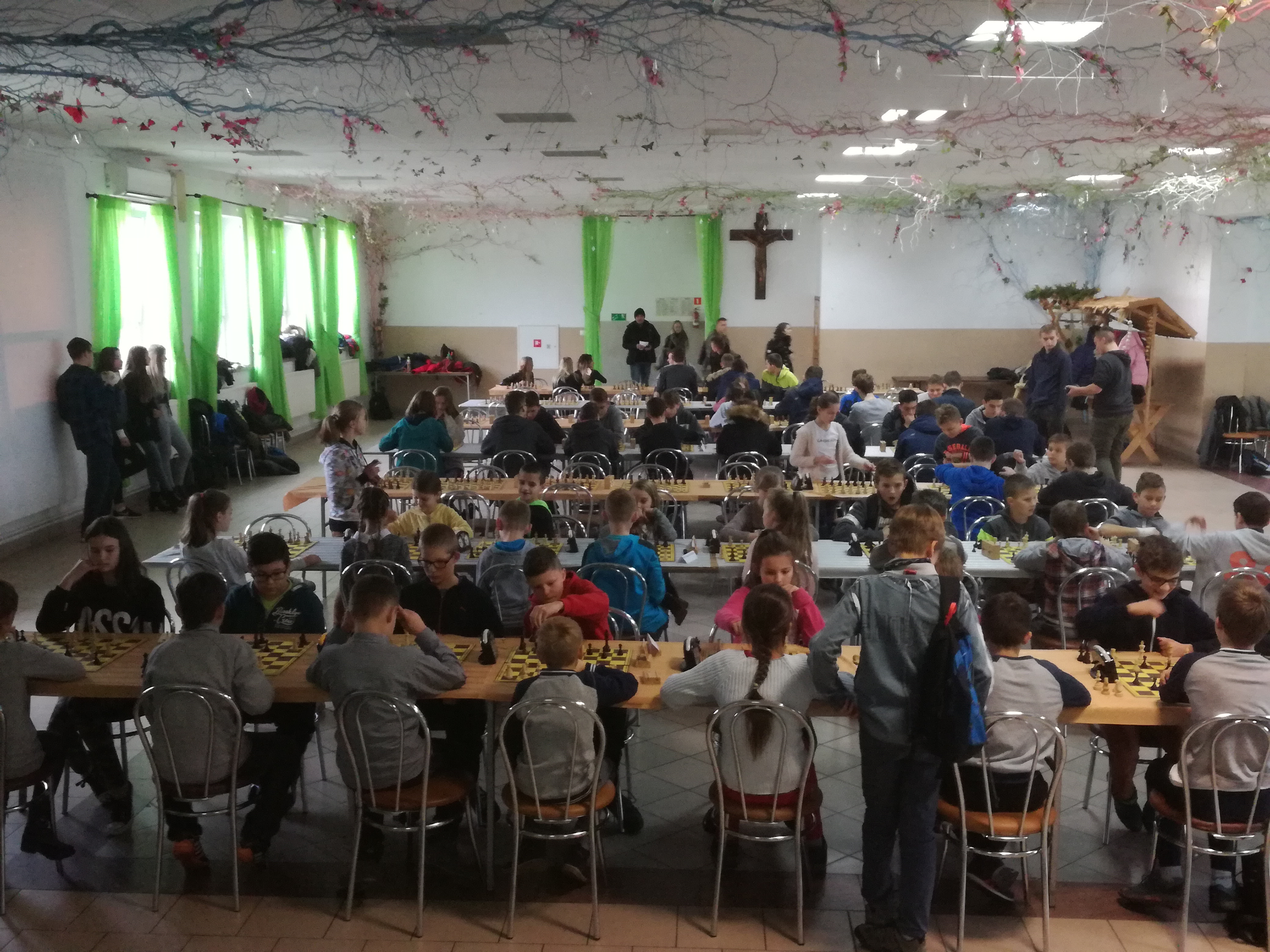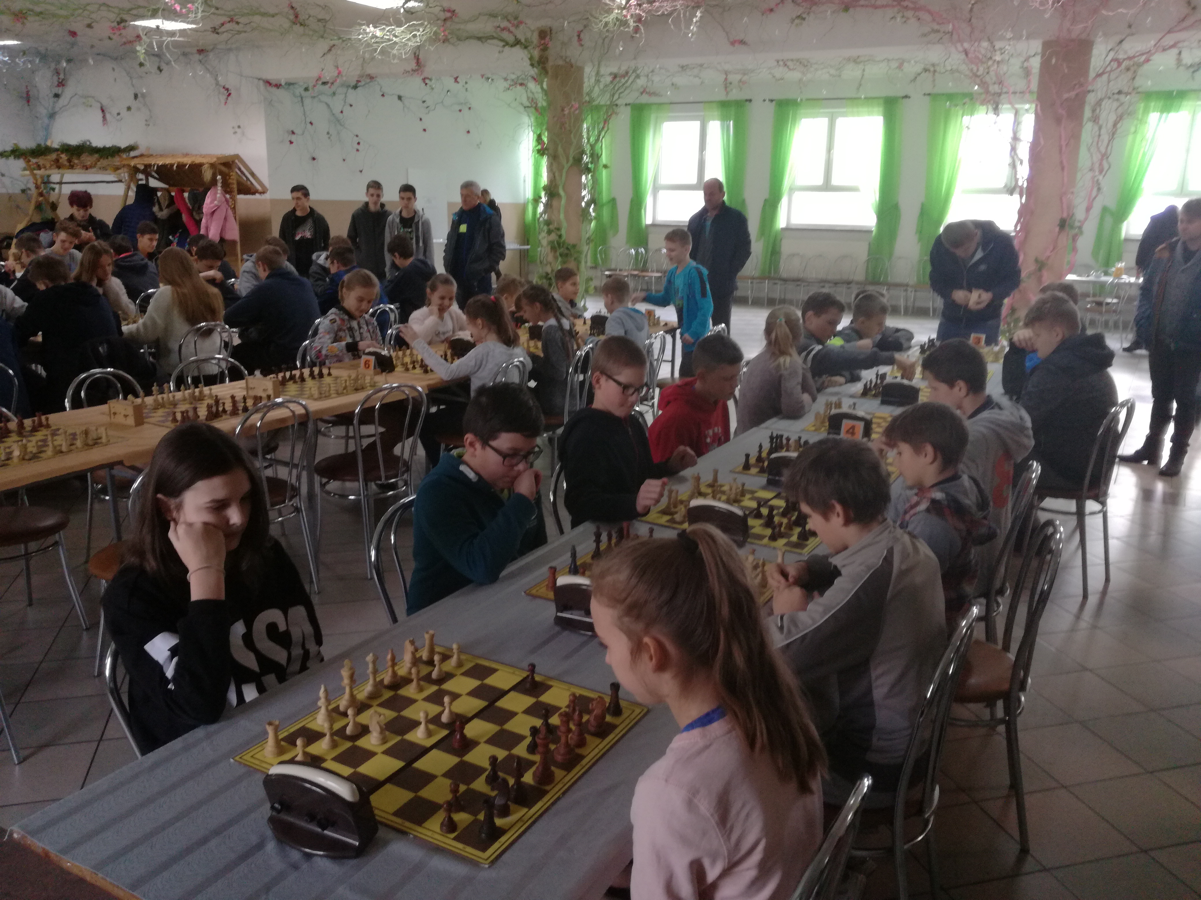 Drużyny składały się z czterech zawodników w tym przynajmniej jednej dziewczyny. Naszą reprezentację tworzyli: Rafał Czajka kl. VI, Kacper Dubaj kl. V, Jakub Kozak kl. VI i Amelia Socha kl. VI. W zmaganiach wzięło udział 10 zespołów z terenu powiatu biłgorajskiego. Gra toczyła się na dystansie siedmiu rund a przeciwnicy byli dobierani losowo przez komputer. Ostatecznie z 4 wygranymi, 1 remisem i 2 porażkami zajęli czwarte miejsce a do podium zabrakło remisu w jednym spotkaniu. Mimo to uczniowie udowodnili, że gra w szachy nie jest im obca. Serdecznie gratulujemy Rafałowi, Kacprowi, Kubie i Amelce za walkę i reprezentowanie naszej szkoły.