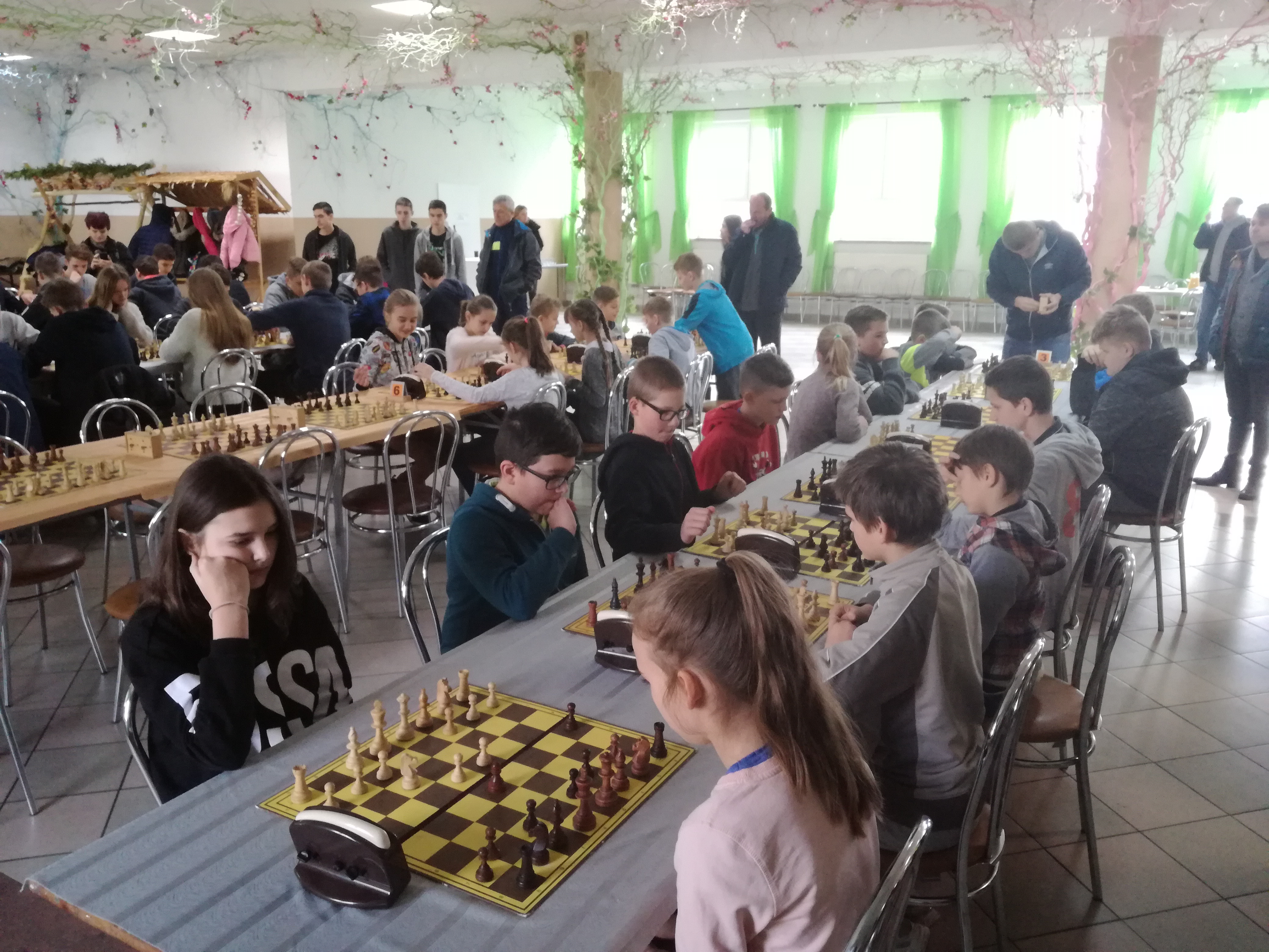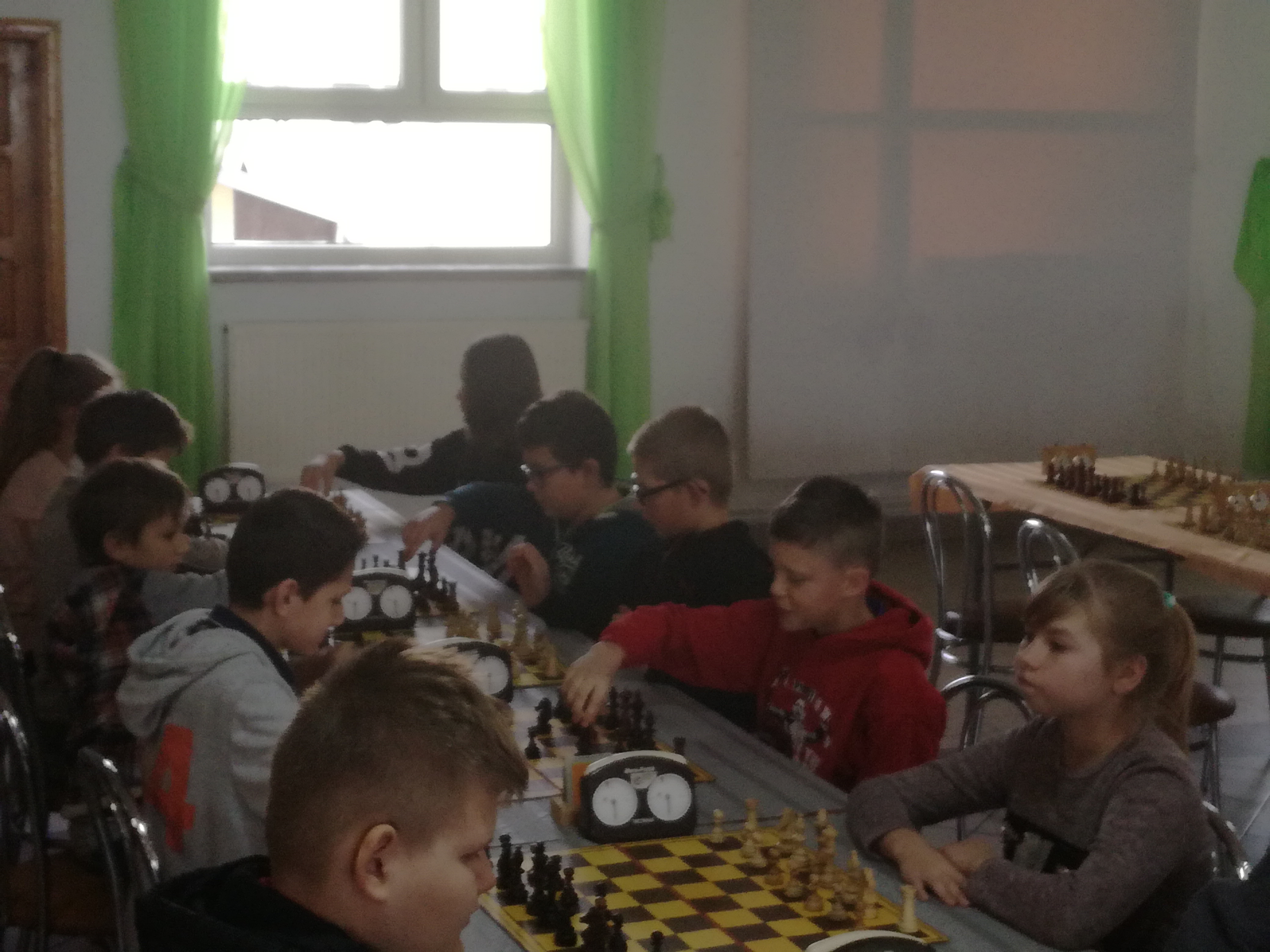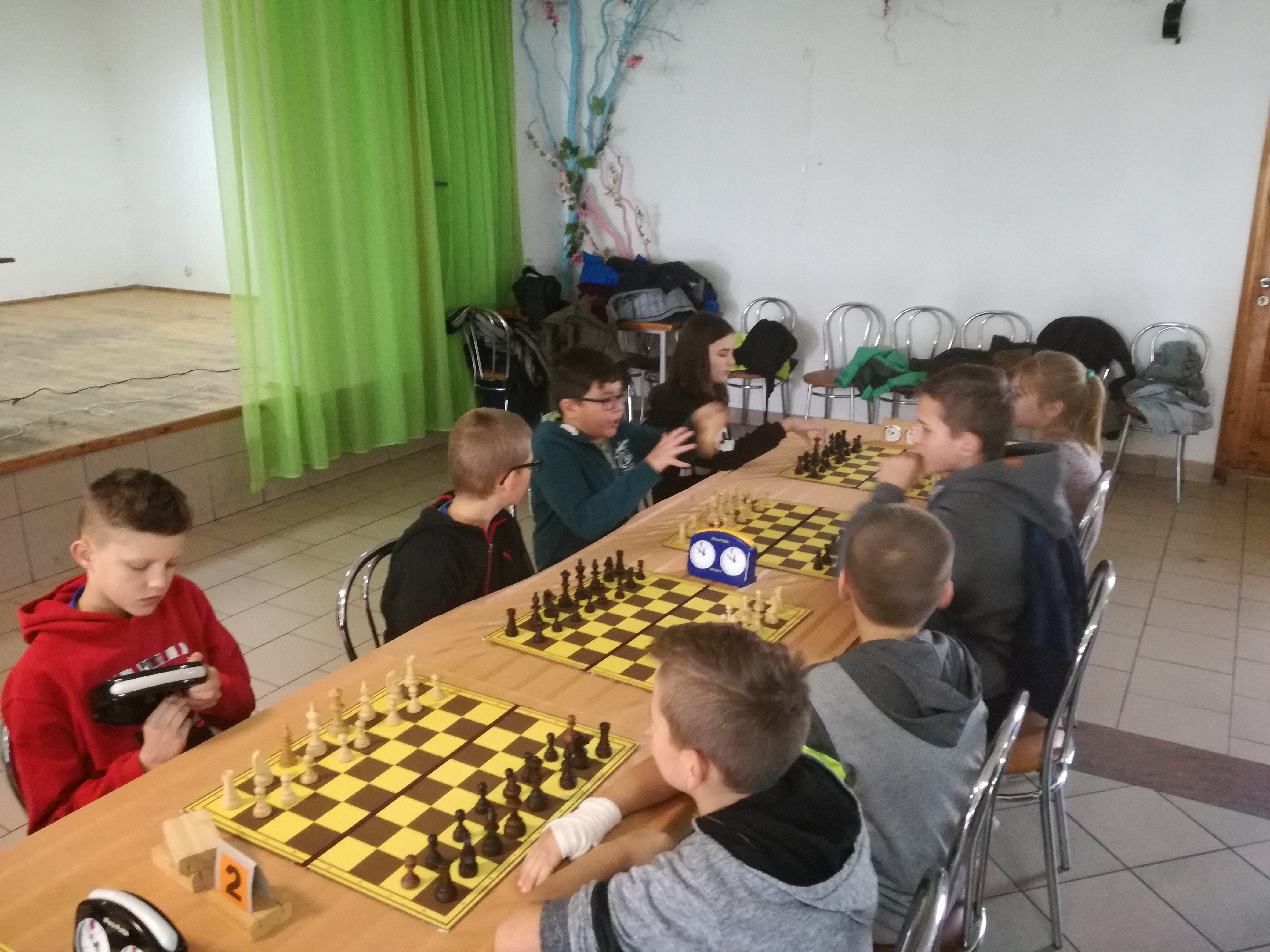 Drużyny składały się z czterech zawodników w tym przynajmniej jednej dziewczyny. Naszą reprezentację tworzyli: Rafał Czajka kl. VI, Kacper Dubaj kl. V, Jakub Kozak kl. VI i Amelia Socha kl. VI. W zmaganiach wzięło udział 10 zespołów z terenu powiatu biłgorajskiego. Gra toczyła się na dystansie siedmiu rund a przeciwnicy byli dobierani losowo przez komputer. Ostatecznie z 4 wygranymi, 1 remisem i 2 porażkami zajęli czwarte miejsce a do podium zabrakło remisu w jednym spotkaniu. Mimo to uczniowie udowodnili, że gra w szachy nie jest im obca. Serdecznie gratulujemy Rafałowi, Kacprowi, Kubie i Amelce za walkę i reprezentowanie naszej szkoły.