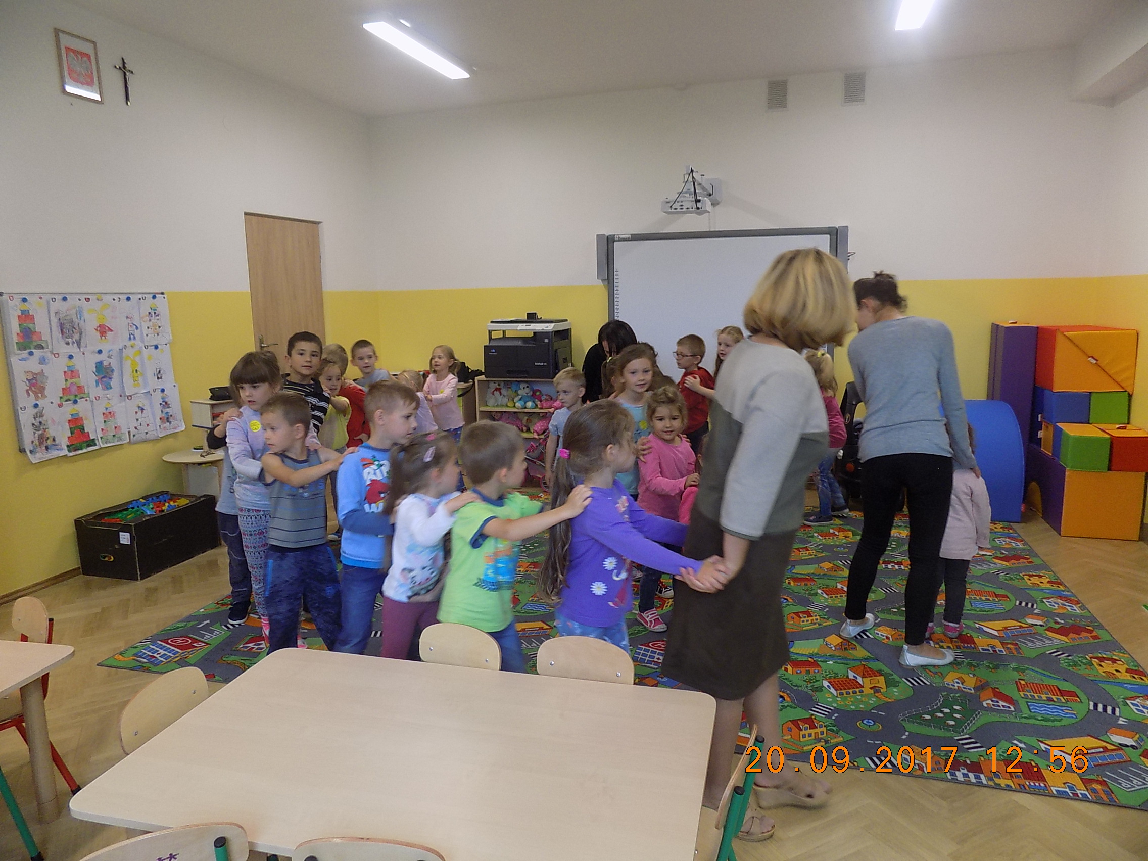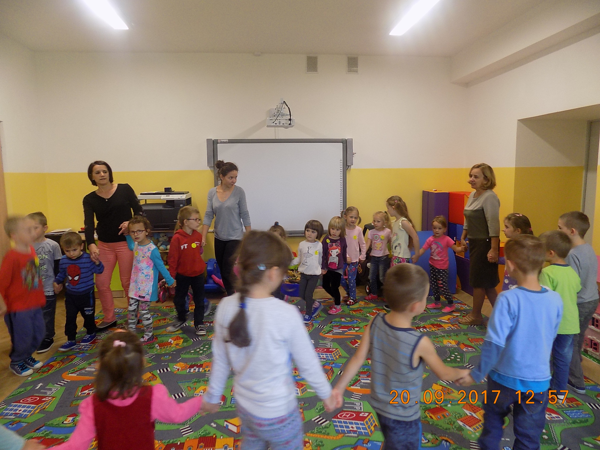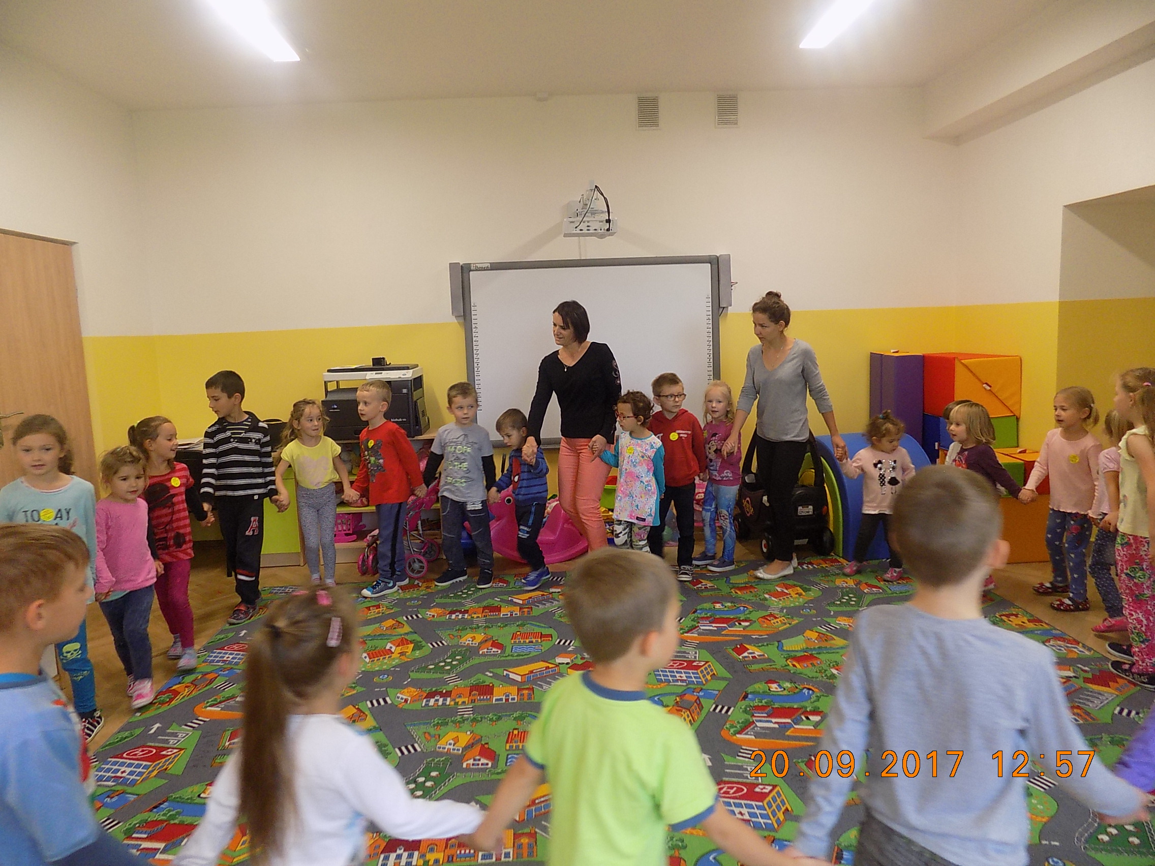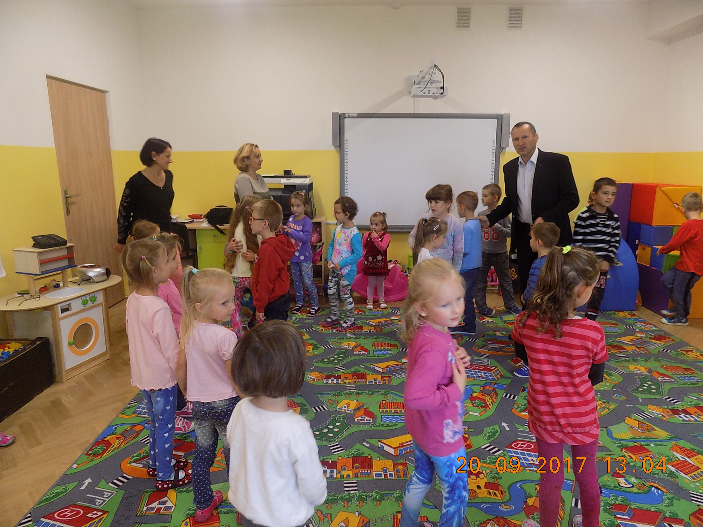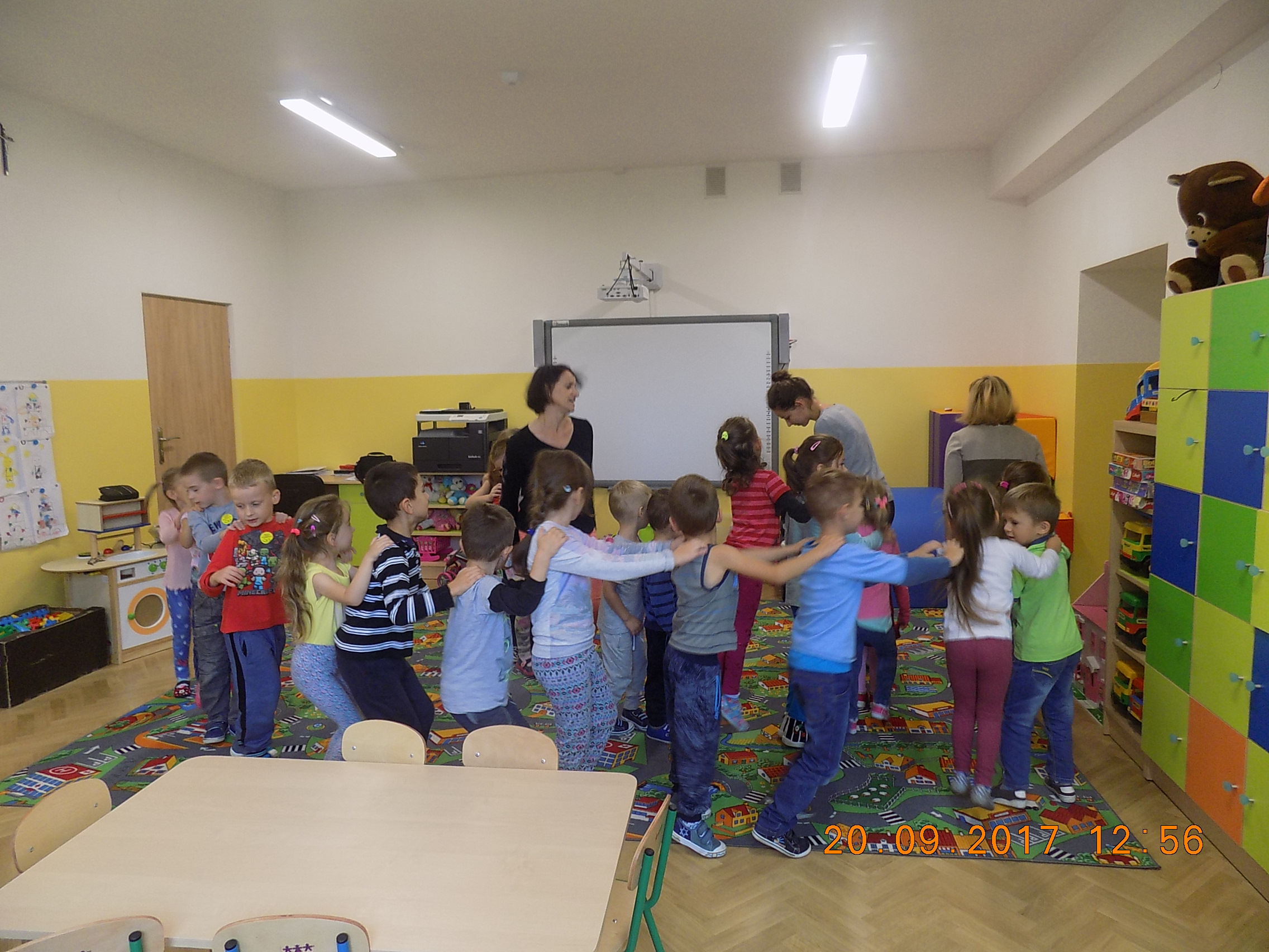 W związku z tym świętem dzieci ze starszej grupy (5 i 6 – letnie) odwiedziły dzieci młodsze w ich sali. Zaproszone zostały do wspólnych zabaw przy muzyce, podczas których miały okazję lepiej poznać się i zintegrować ze sobą. Przedszkolaków odwiedził w tym dniu również Pan Dyrektor Stanisław Saj, który złożył im życzenia i wręczył pamiątkowe dyplomiki. Każde dziecko otrzymało też odznakę ,,super przedszkolaka”.